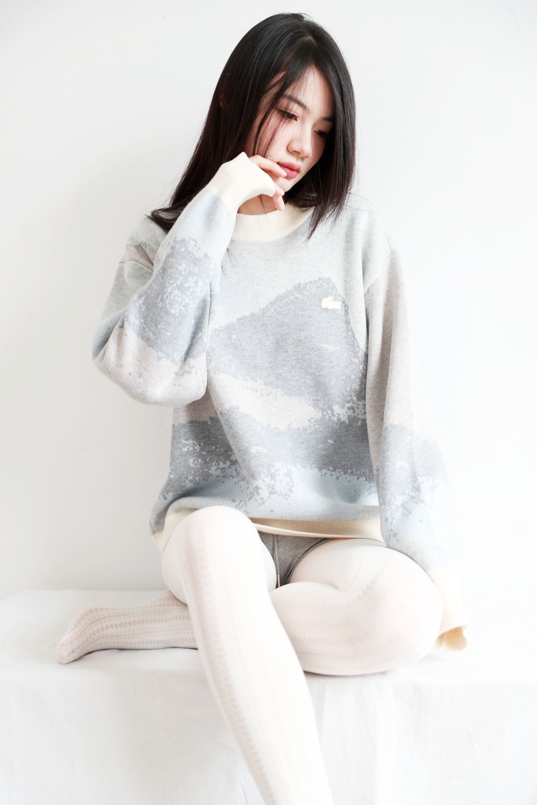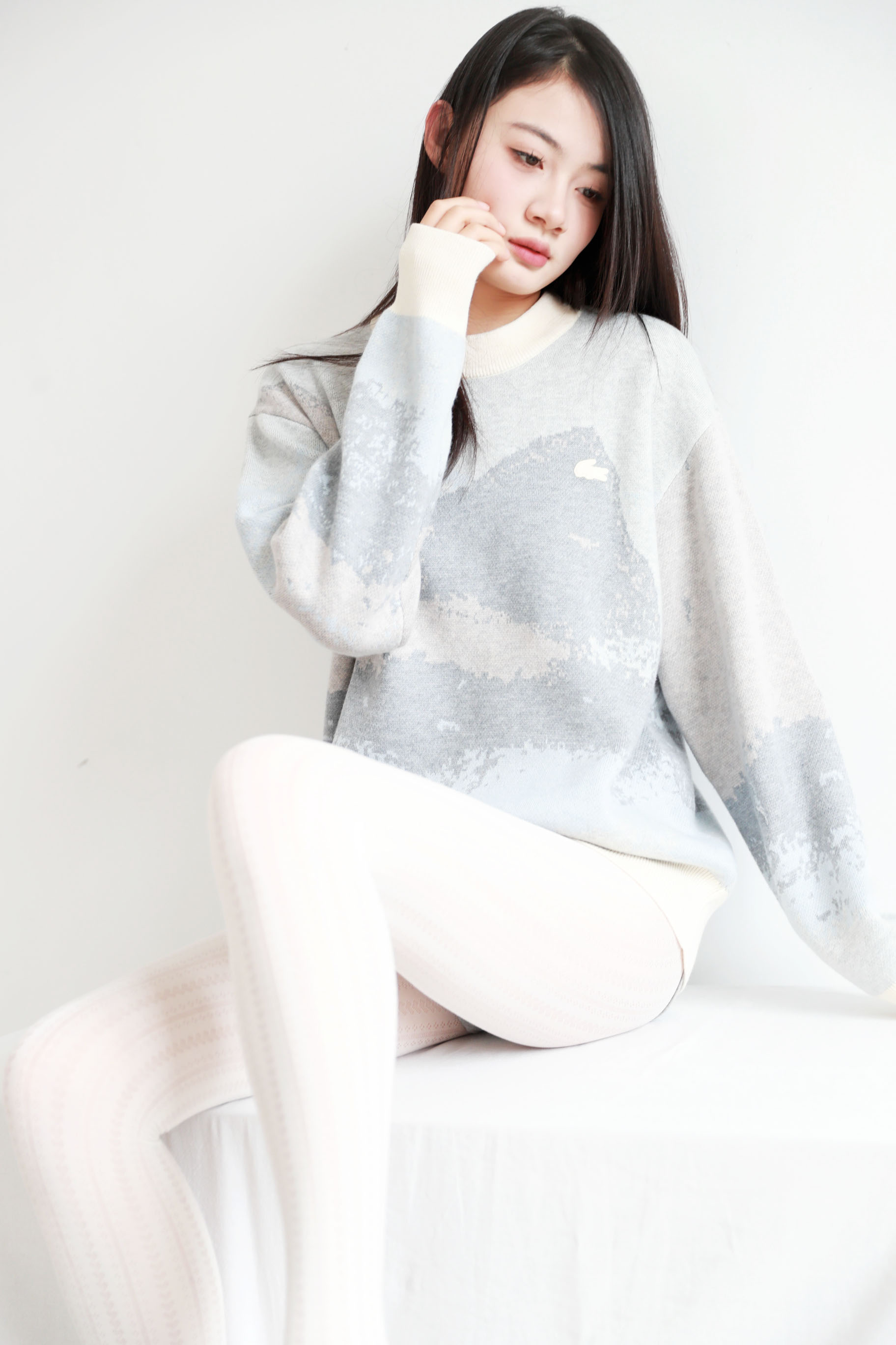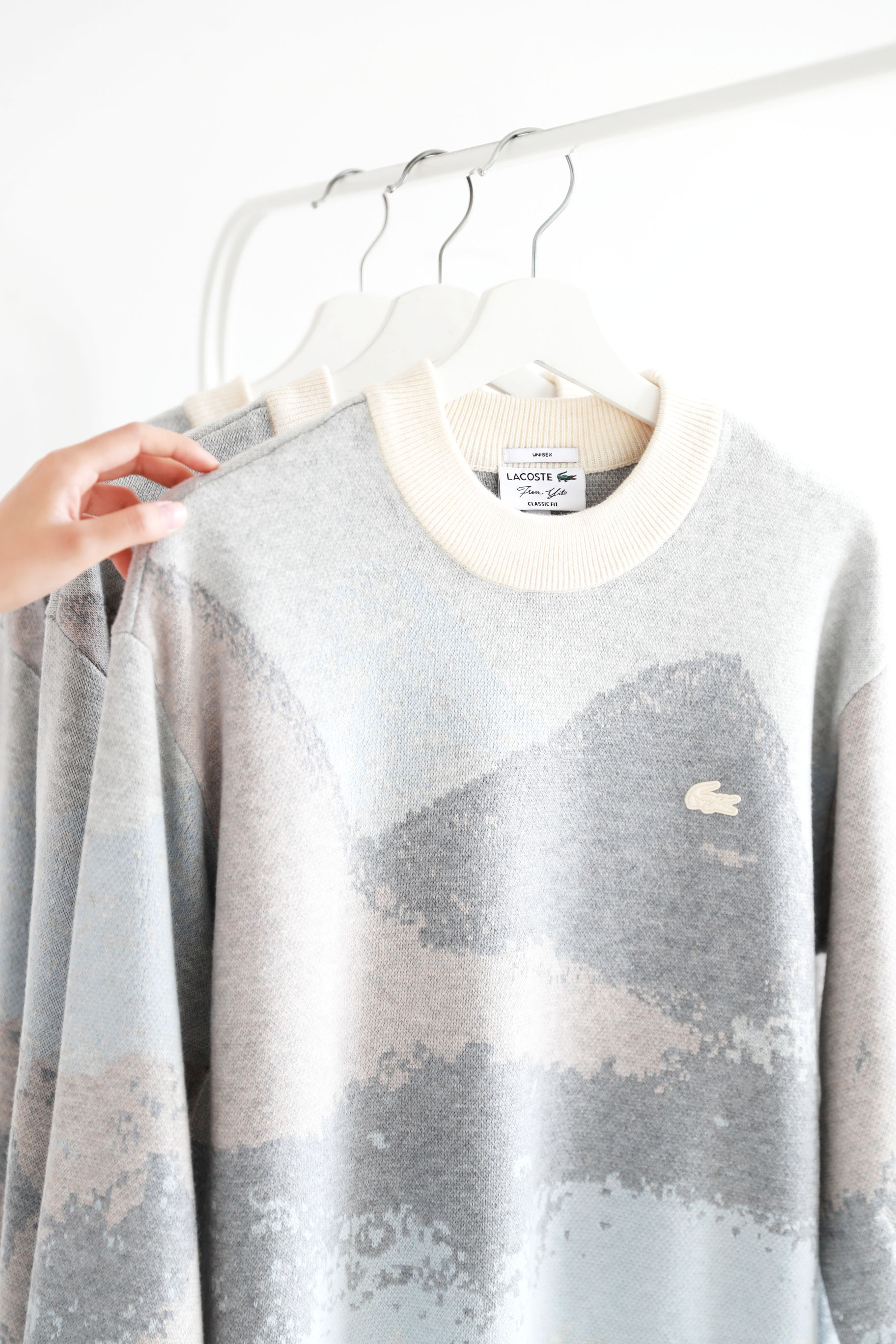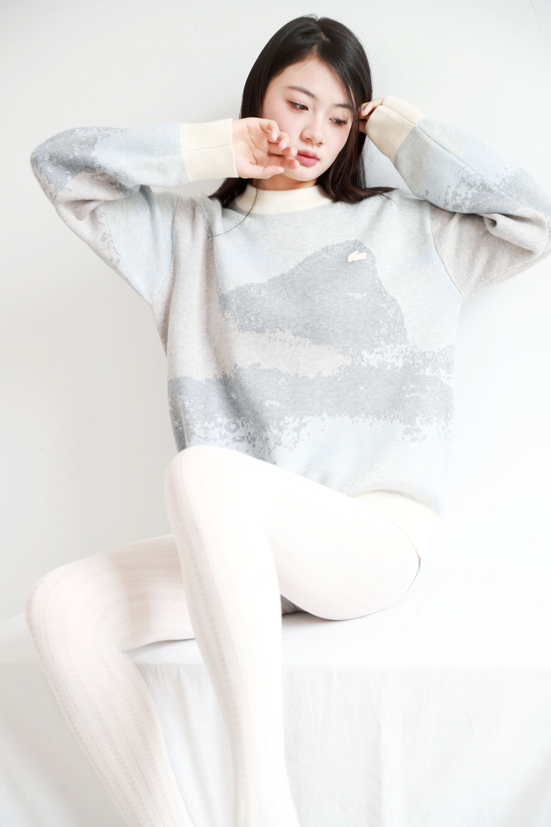 10%山羊绒+90%羊毛,签名款刺绣羊毛衣。山系提花圆领外套C122568