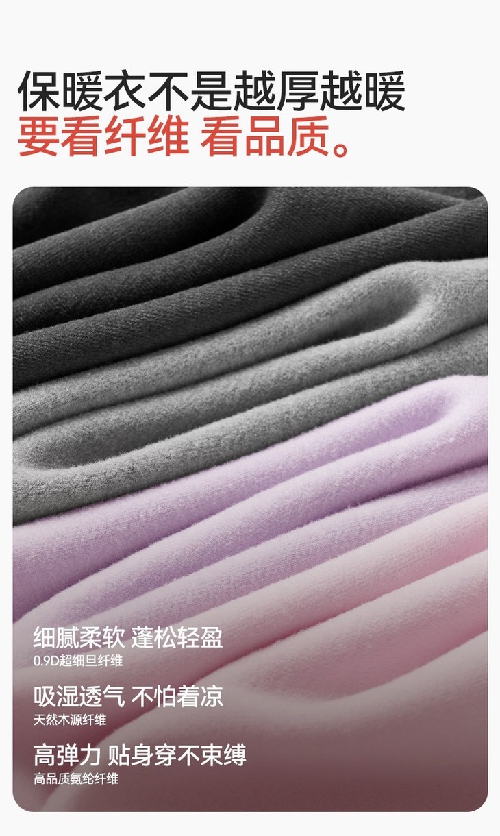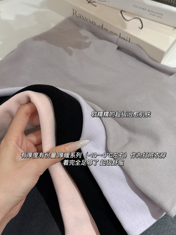 内外磨毛像陷进云朵被窝 它要比普通保暖衣柔软温暖三倍不止 敏感肌也不闷不痒 !舒适度直接拉满~