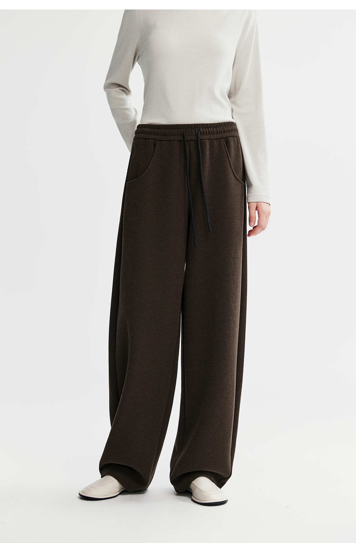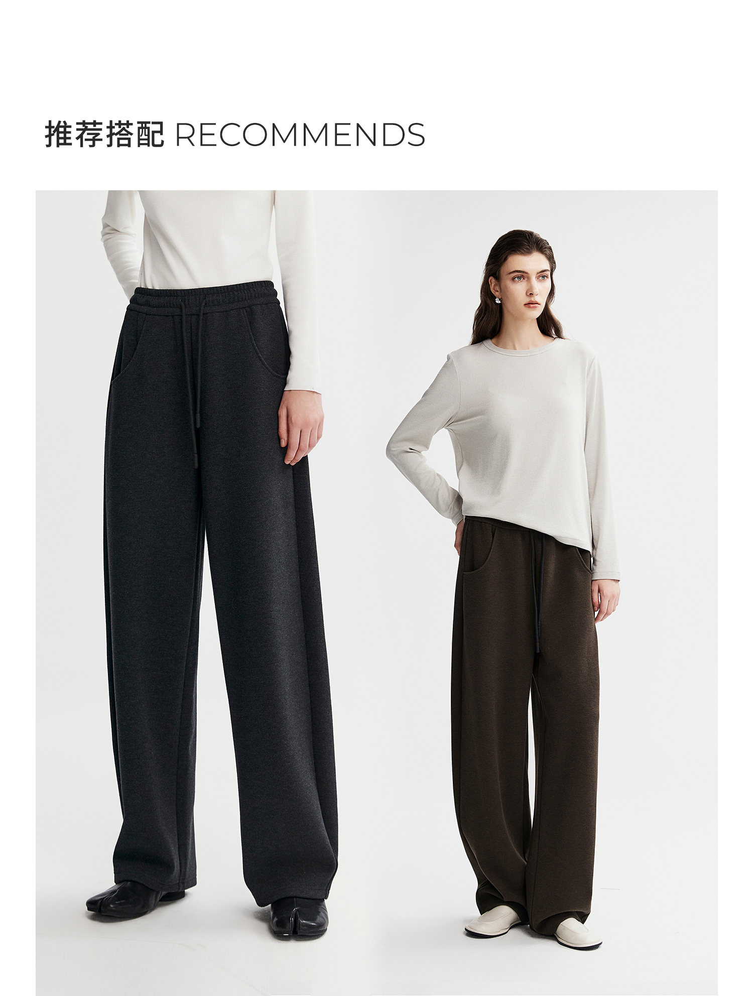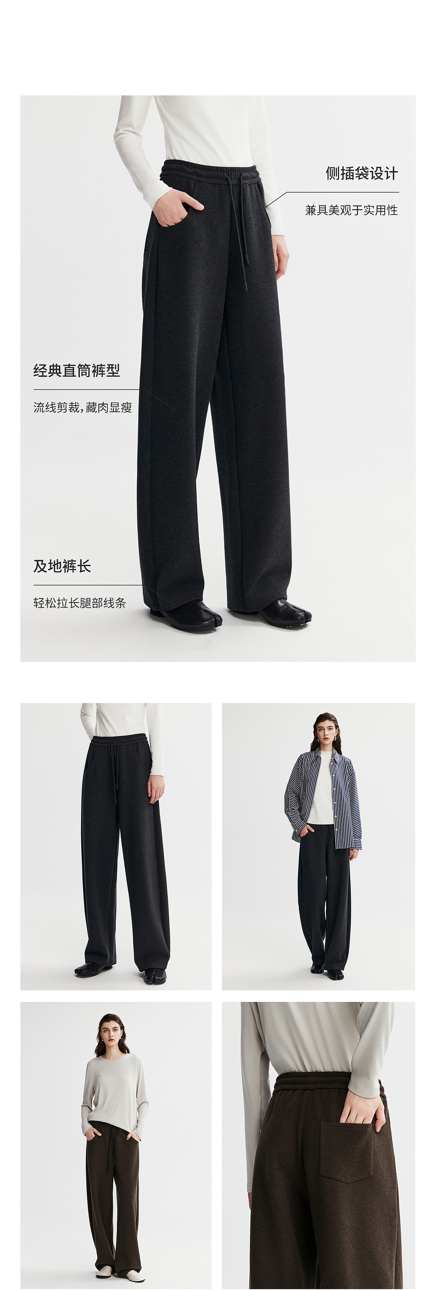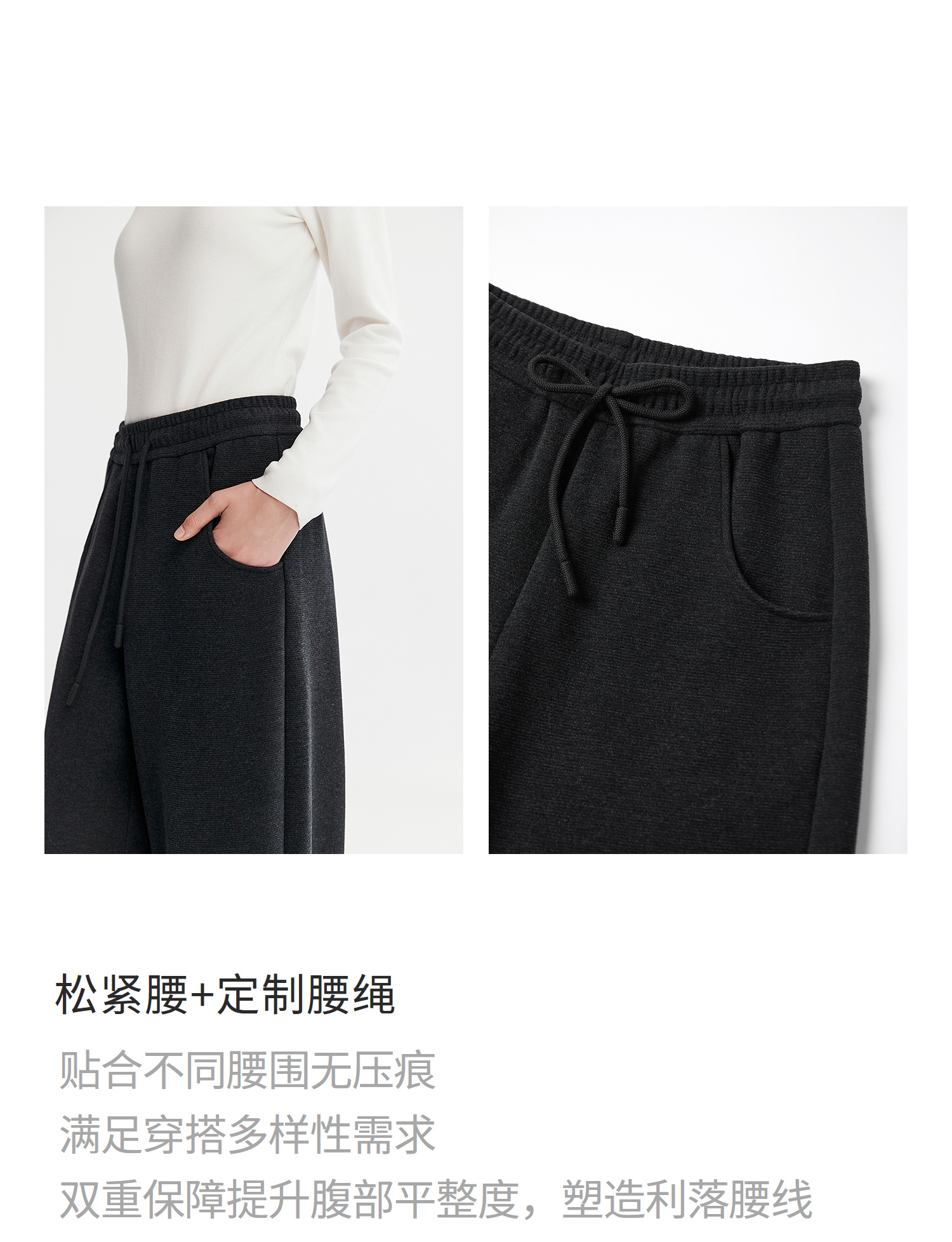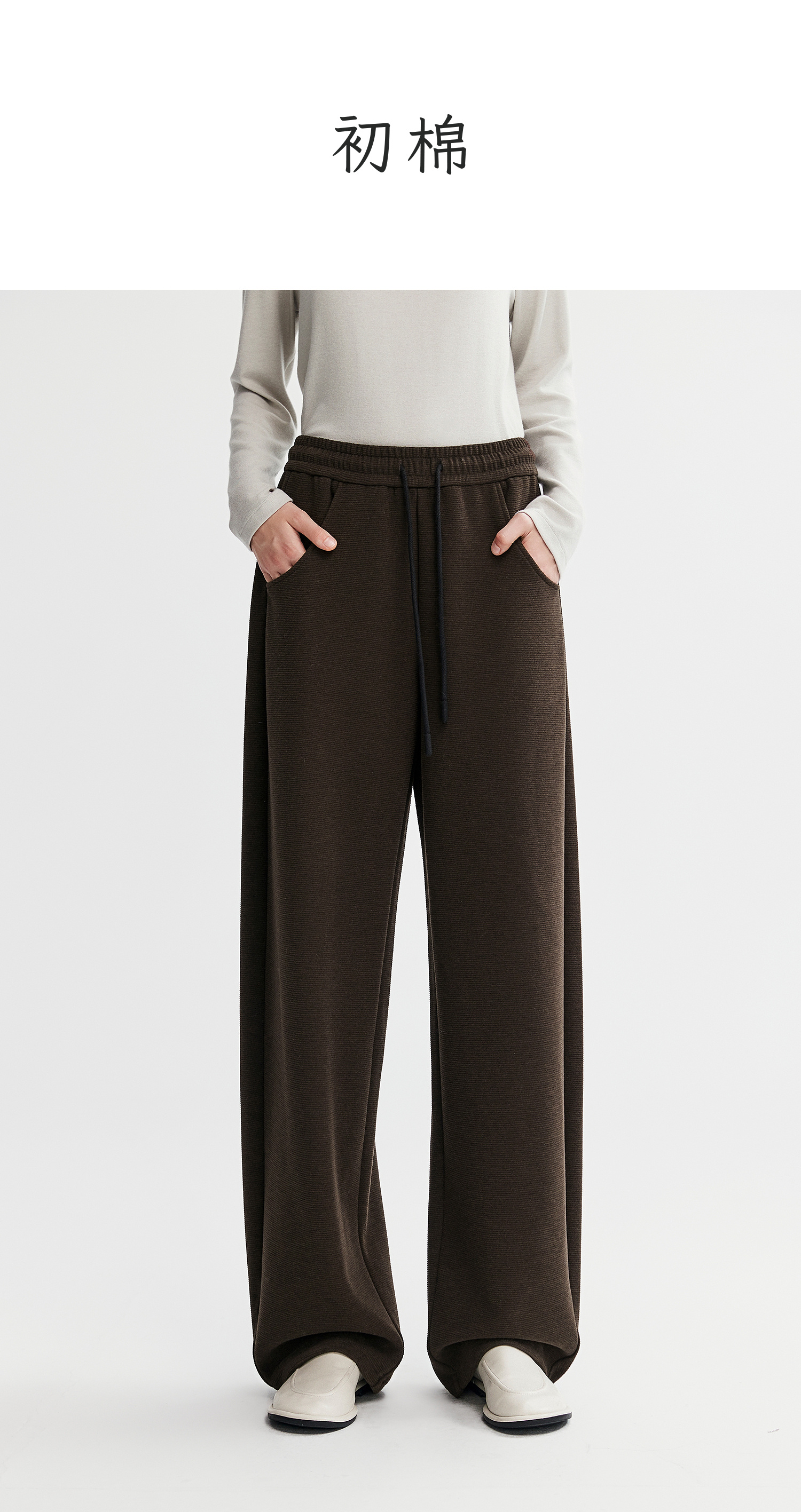 棉仓366618009-抽绳松紧腰直筒休闲裤女25秋新品含牦牛绒舒适微宽松及地长裤