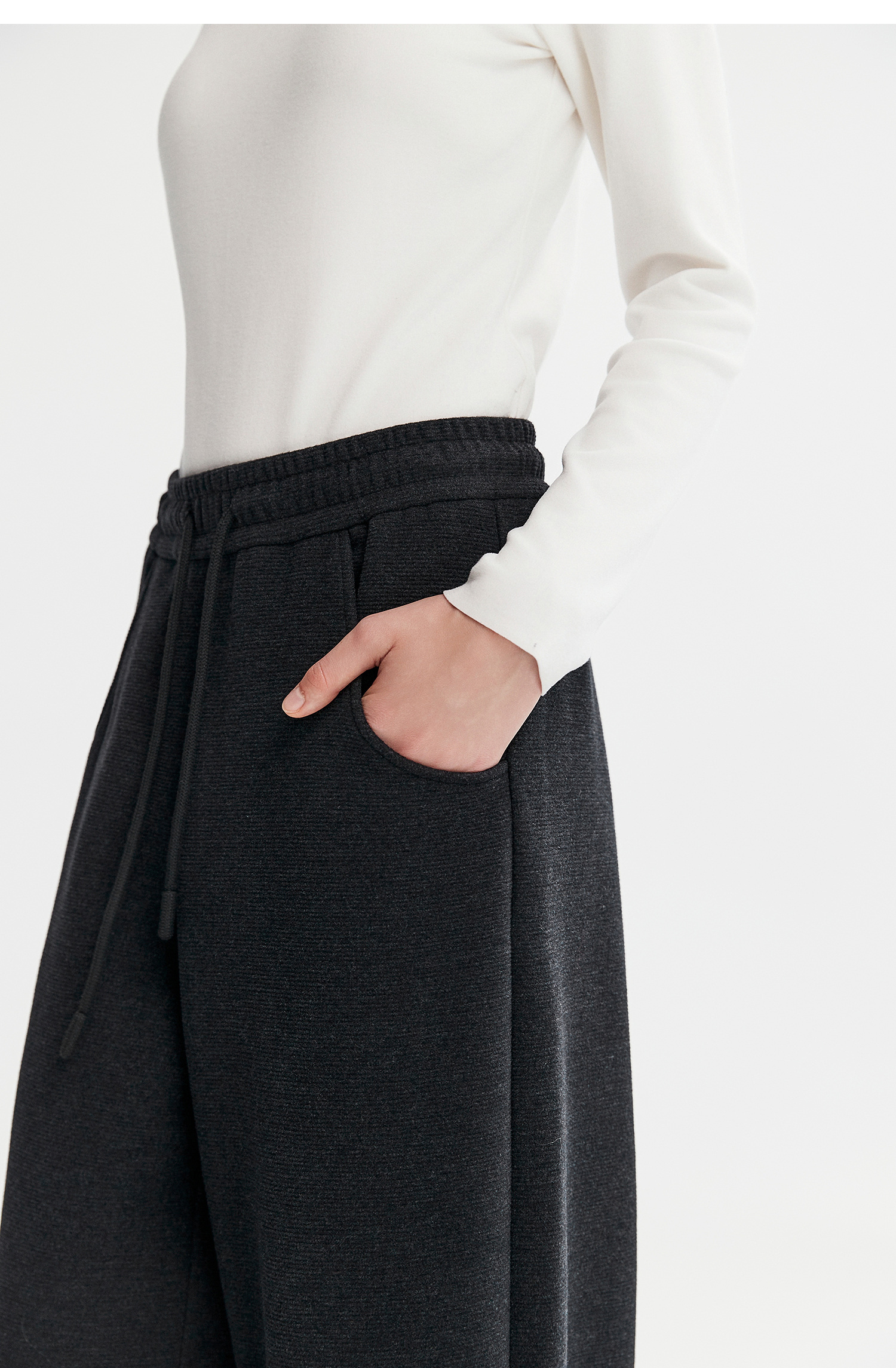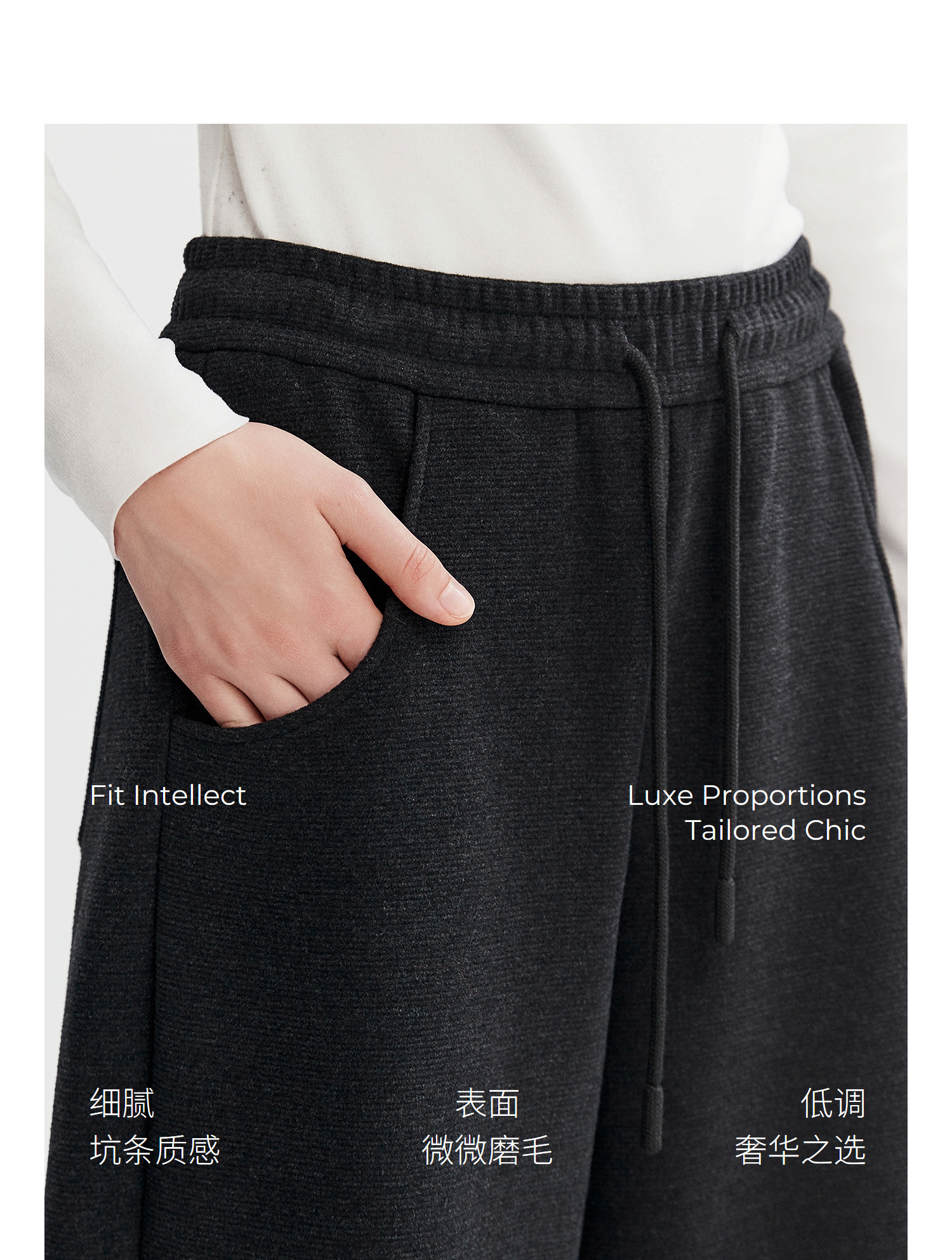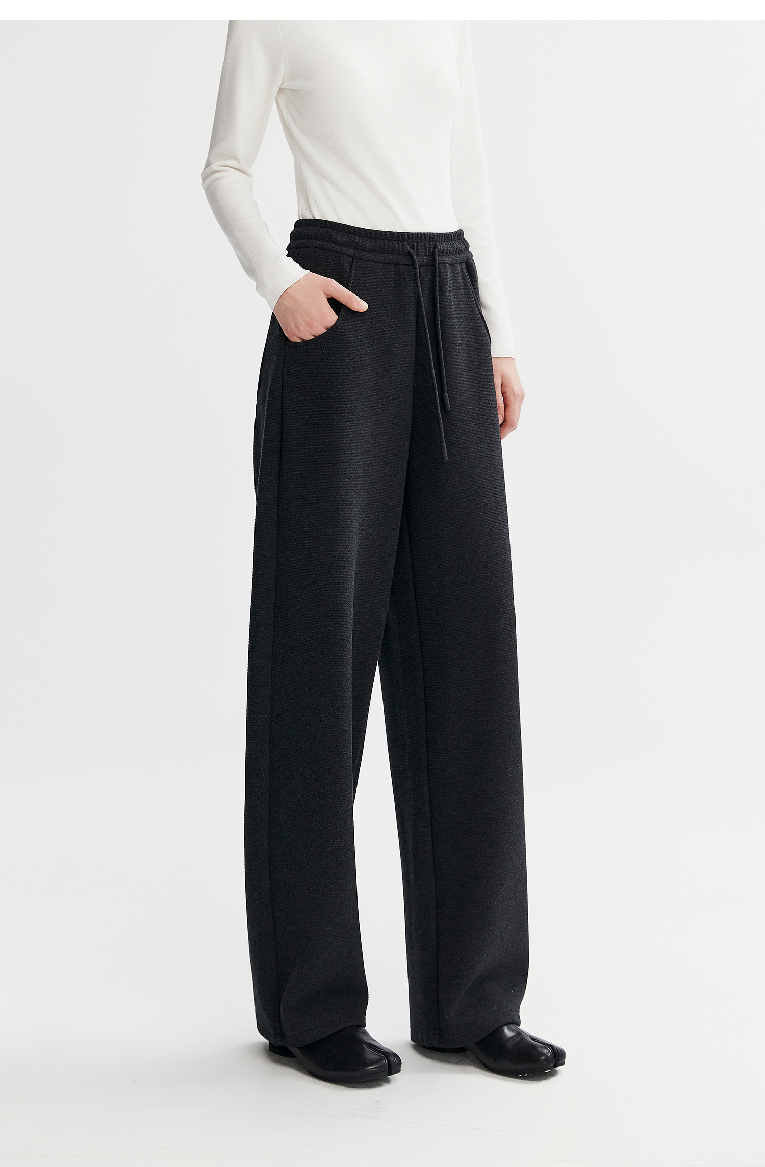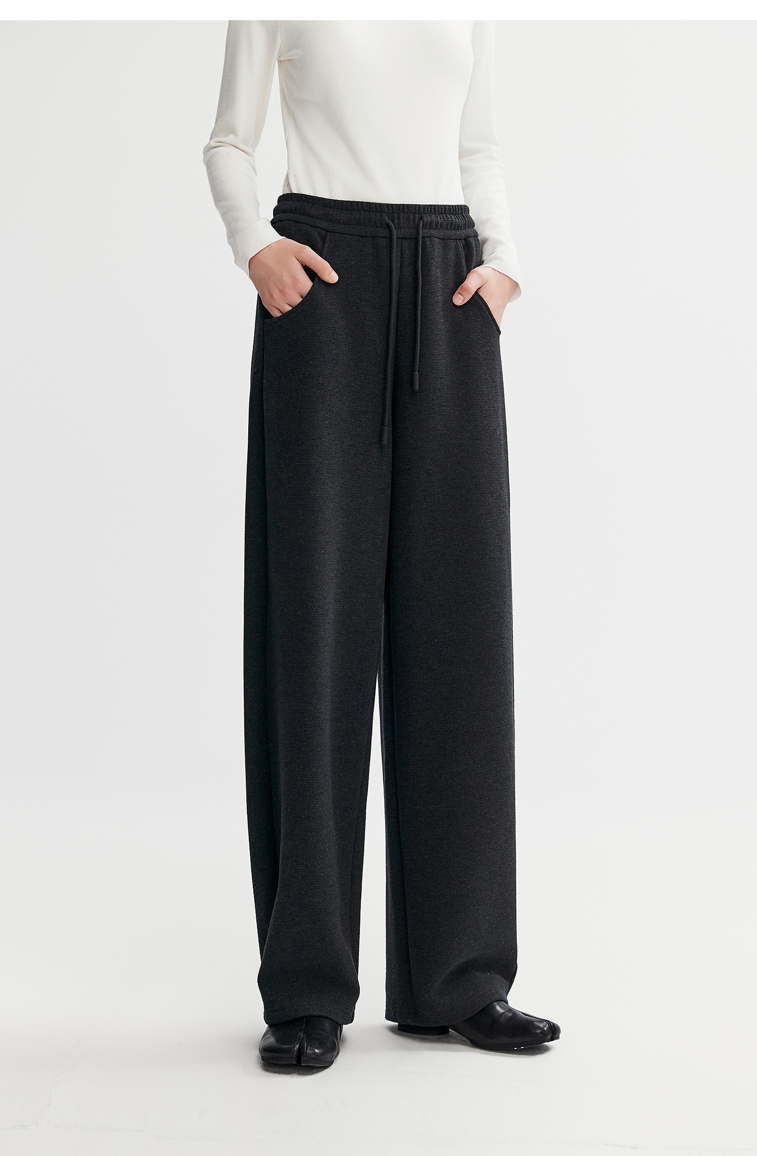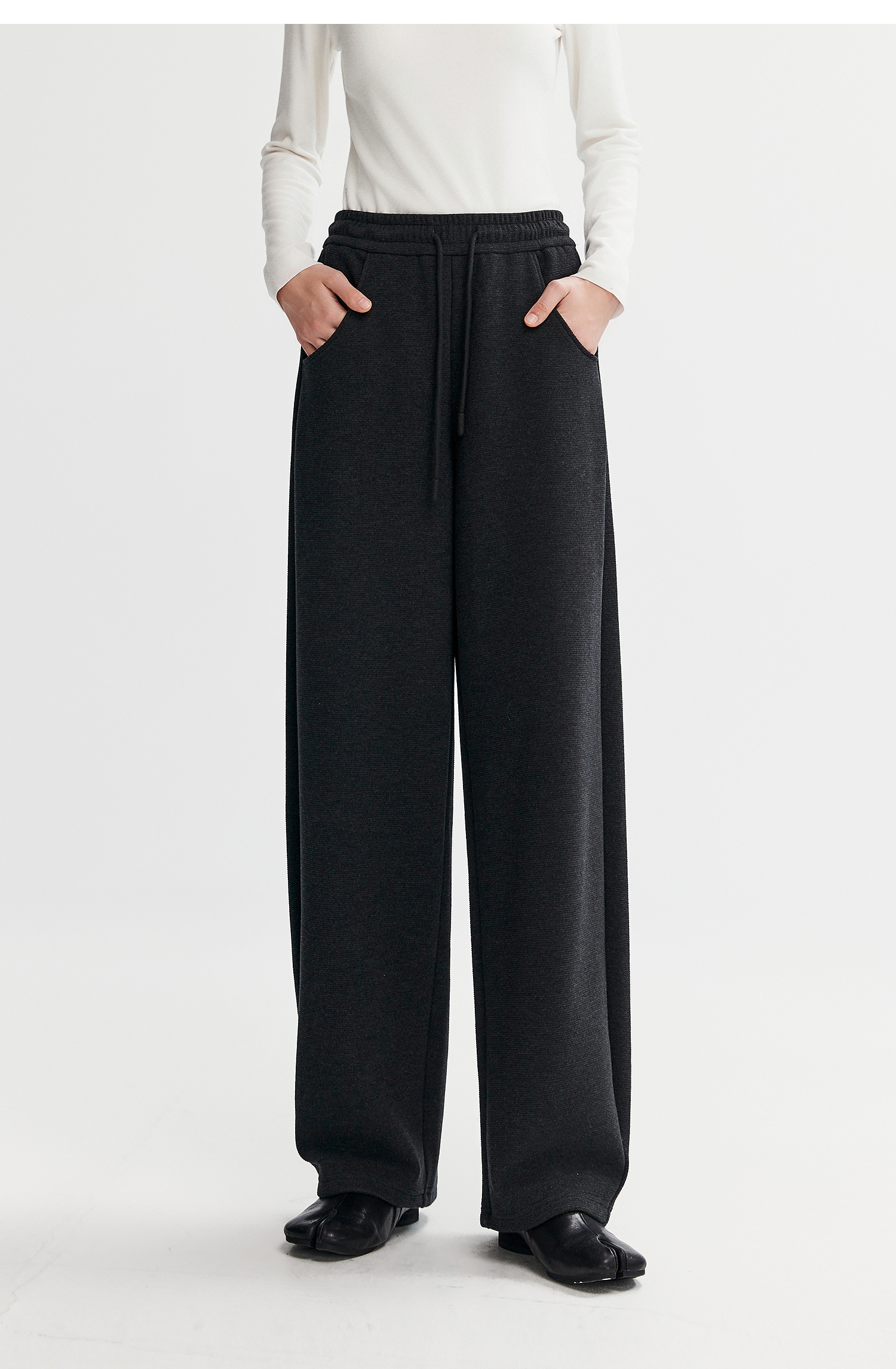 棉仓366618009-抽绳松紧腰直筒休闲裤女25秋新品含牦牛绒舒适微宽松及地长裤