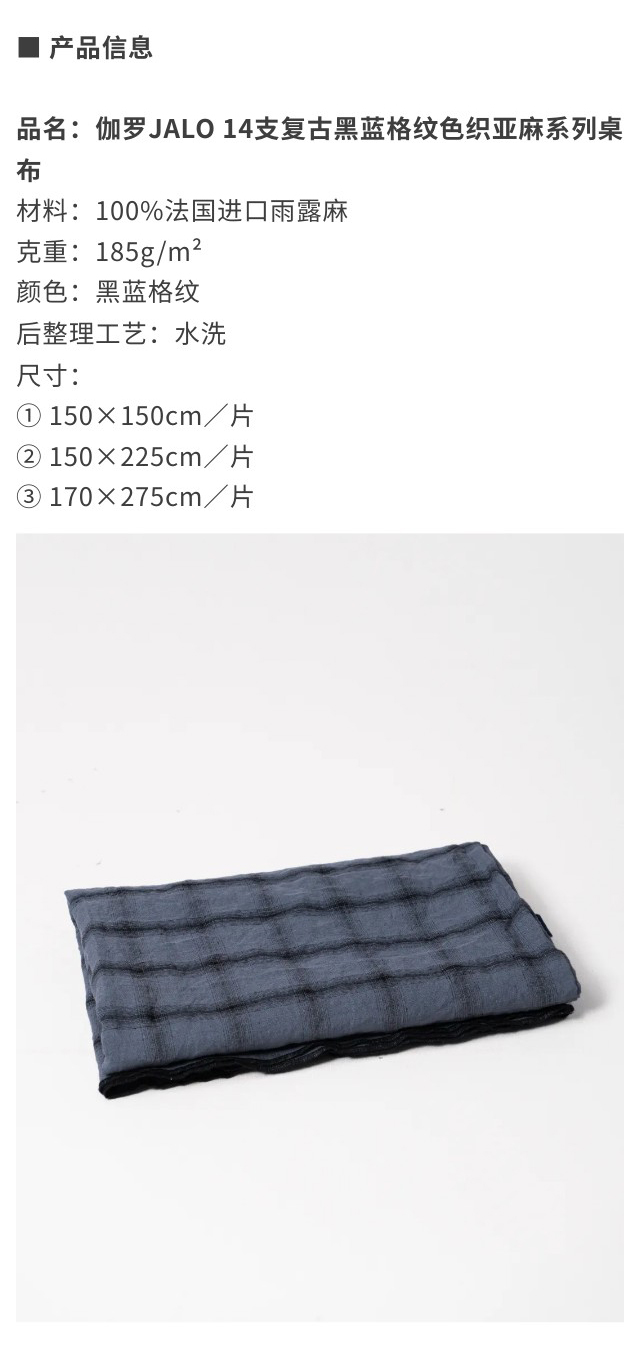 伽罗 JALO 14支复古黑蓝格纹色织亚麻系列桌布
