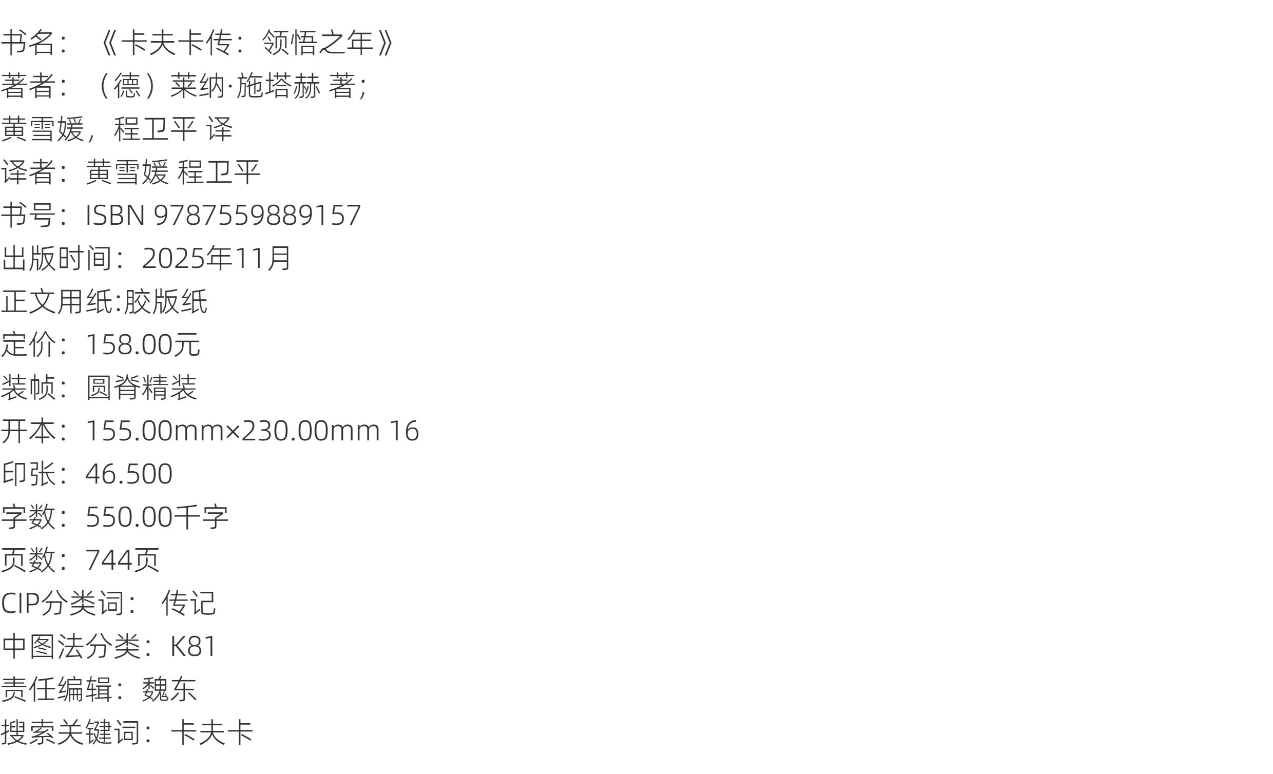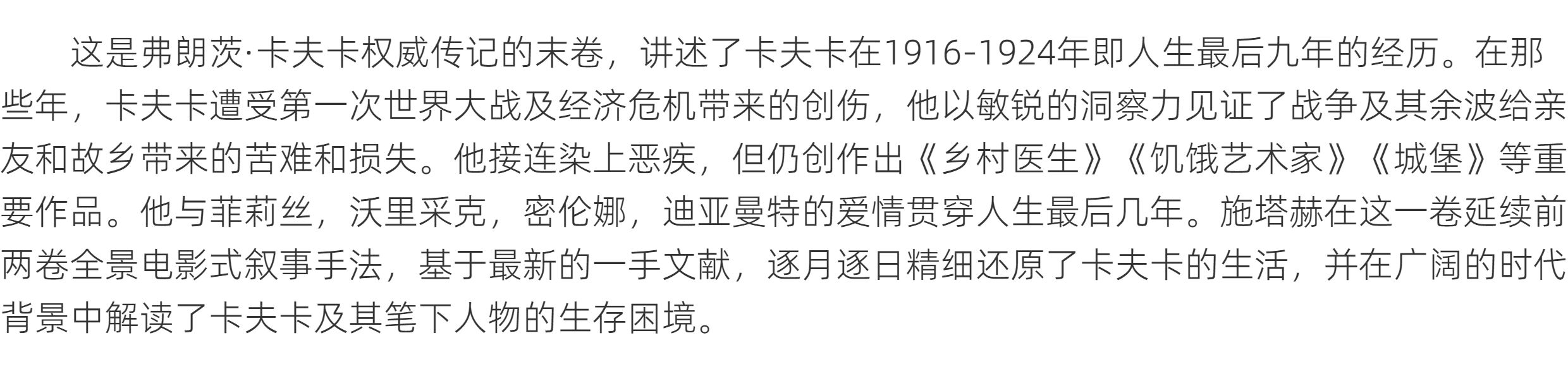 卡夫卡传:领悟之年 上贝 著/(德)莱纳·施塔赫 译/黄雪媛 程卫平 获奖“三部曲”终卷,追寻卡夫卡最后九年