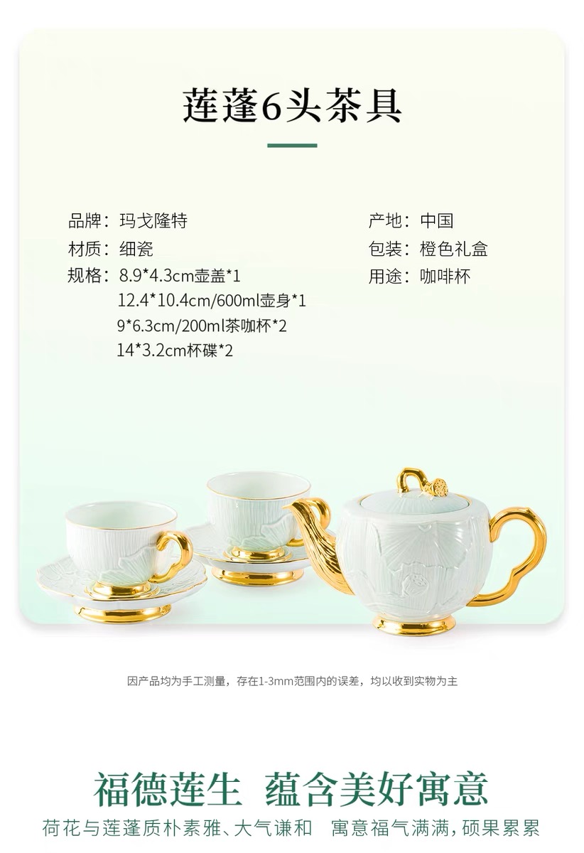 【春上新】10楼玛戈隆特 莲蓬6头茶咖具 -福德莲生 吊牌价2288元 活动价1999元