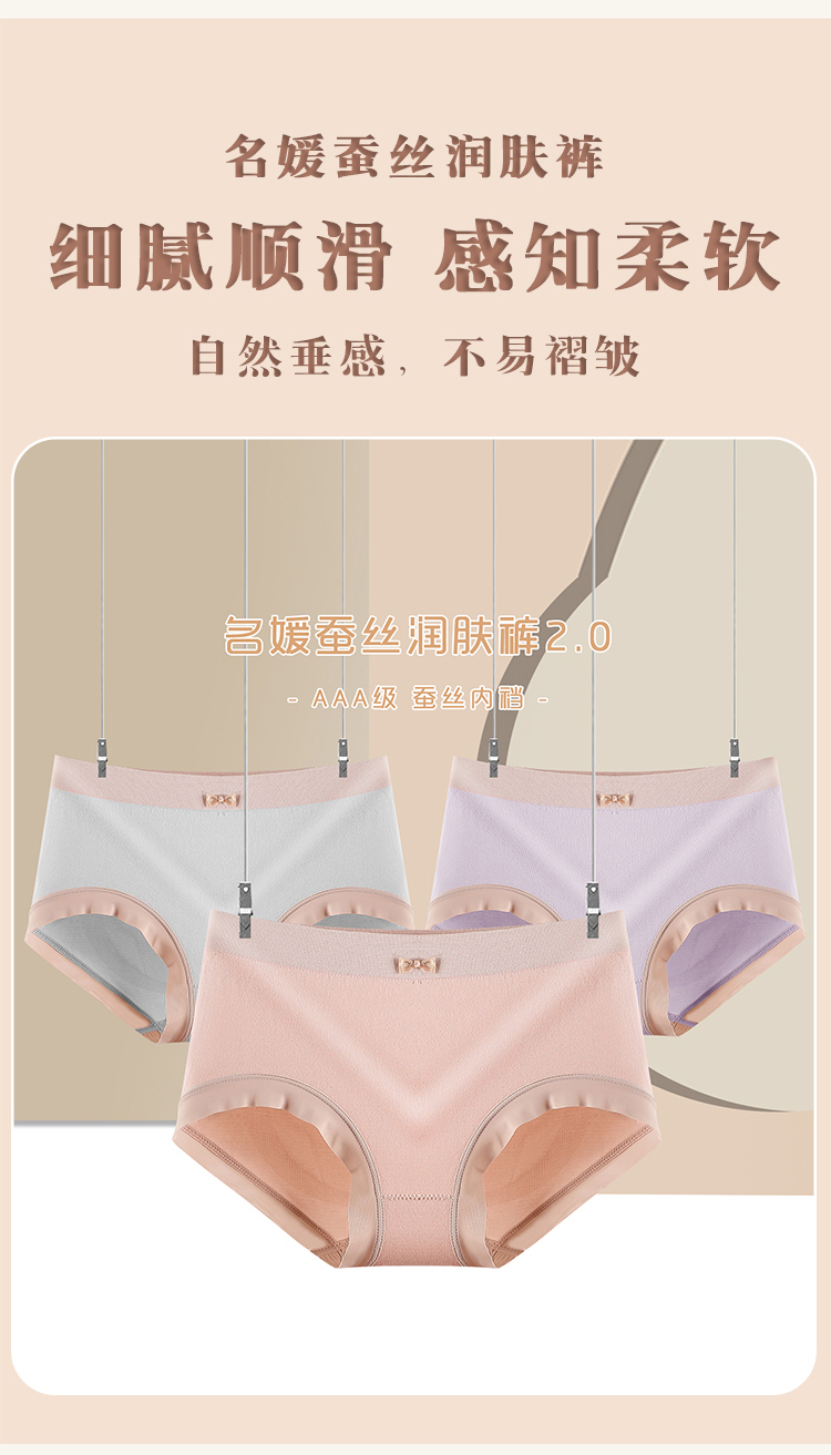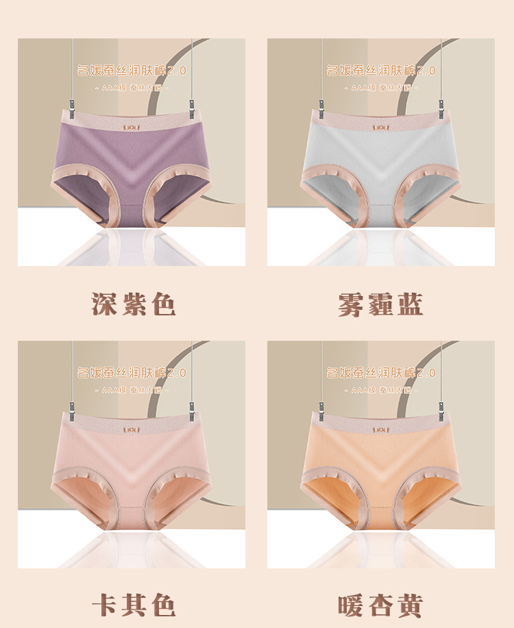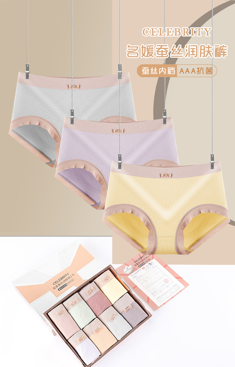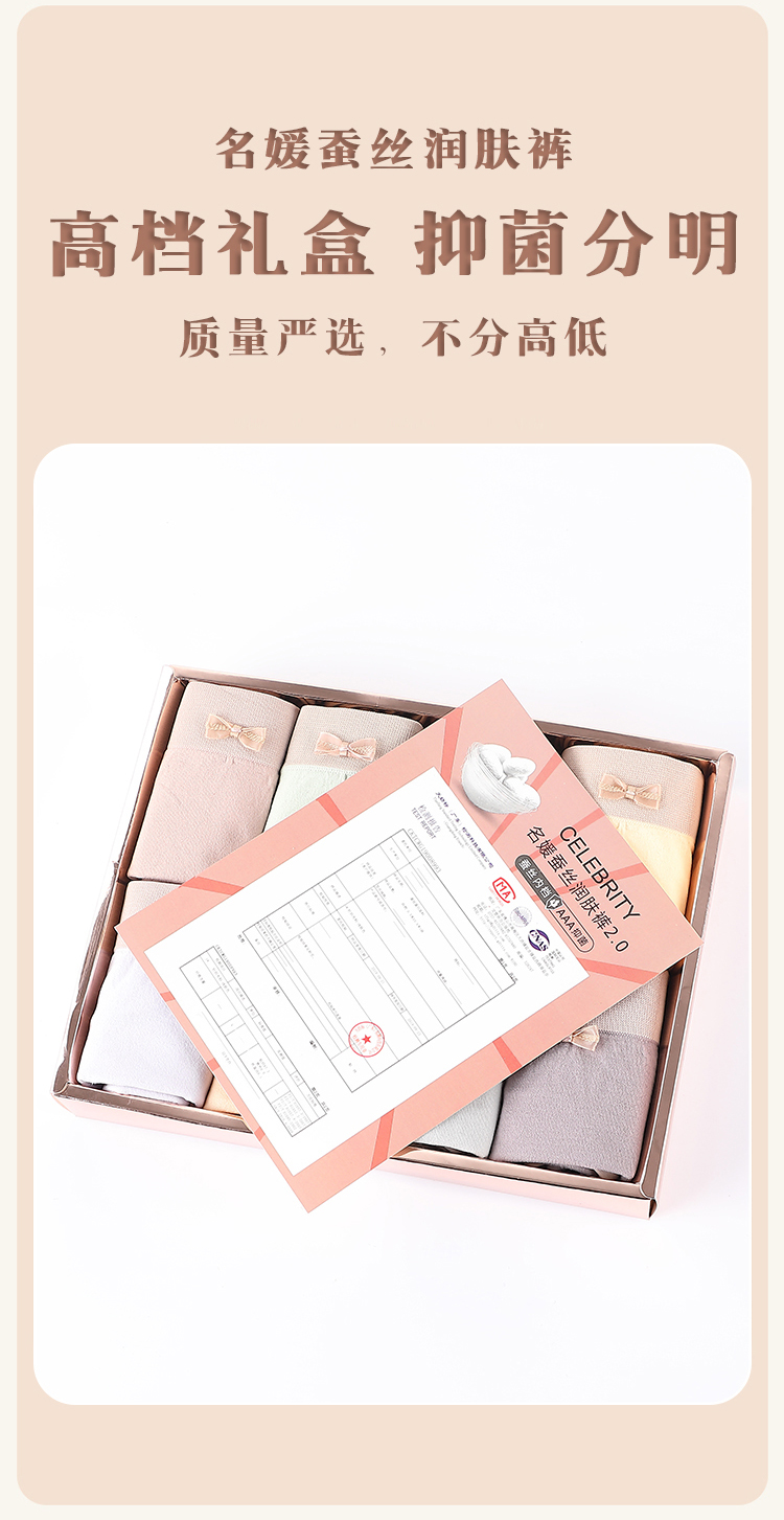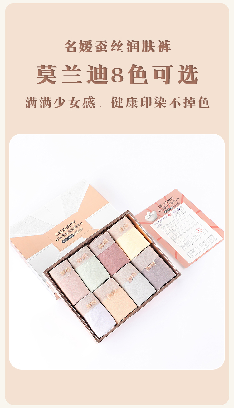 【8条装精美礼盒装】名媛蚕丝润肤内裤2.0 中腰大码 yi菌无痕 蚕丝底裆 礼盒装