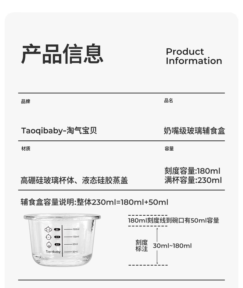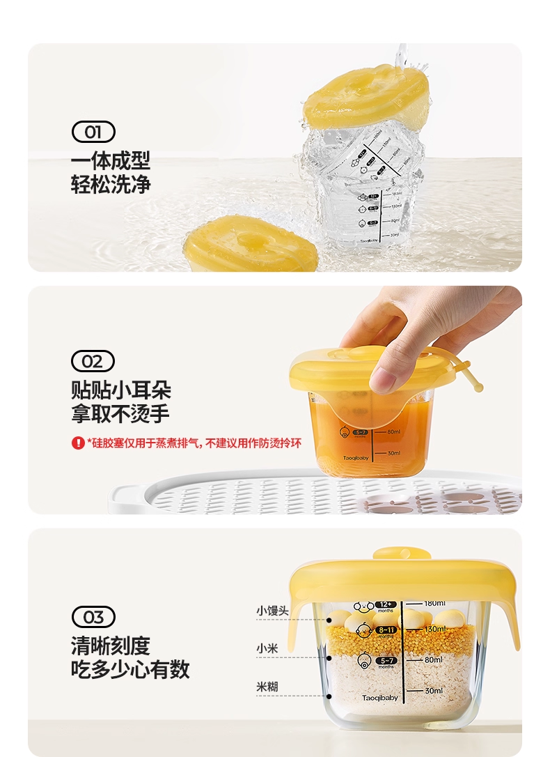 [屁侠推荐]taoqibaby/淘气宝贝辅食碗玻璃辅食盒可蒸煮蛋羹冷冻保鲜盒宝宝碗婴儿餐具