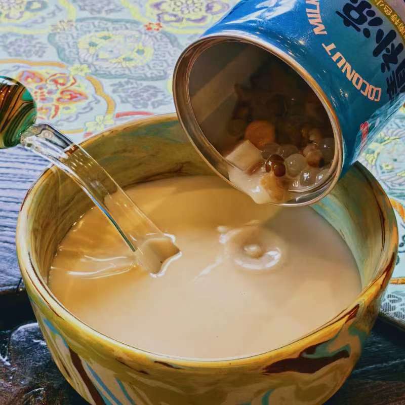 简简单单的罐装,开盖就是清甜椰子味,冰冰凉凉奶奶甜甜,混合多种配料的,非常满足!我还加了龟苓膏,更丰富好味,而且还能消暑降火哦!大家也可以按自己的口味加上芒果、奇异果等应季新鲜水果,芋头汤圆也行!