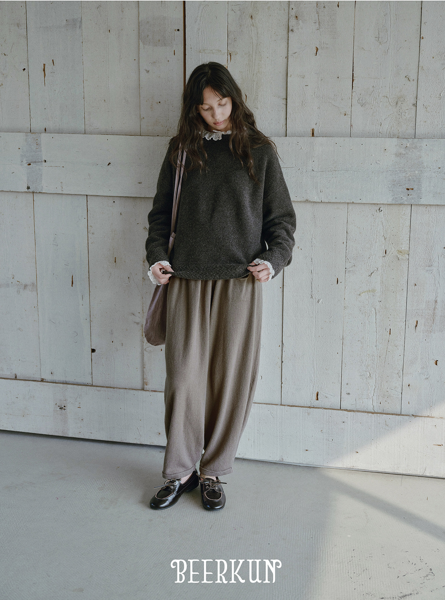 [特价]澳洲美丽奴绵羊毛懒人裤 可爱小口袋宽松气球裤 奶茶灰/碳灰