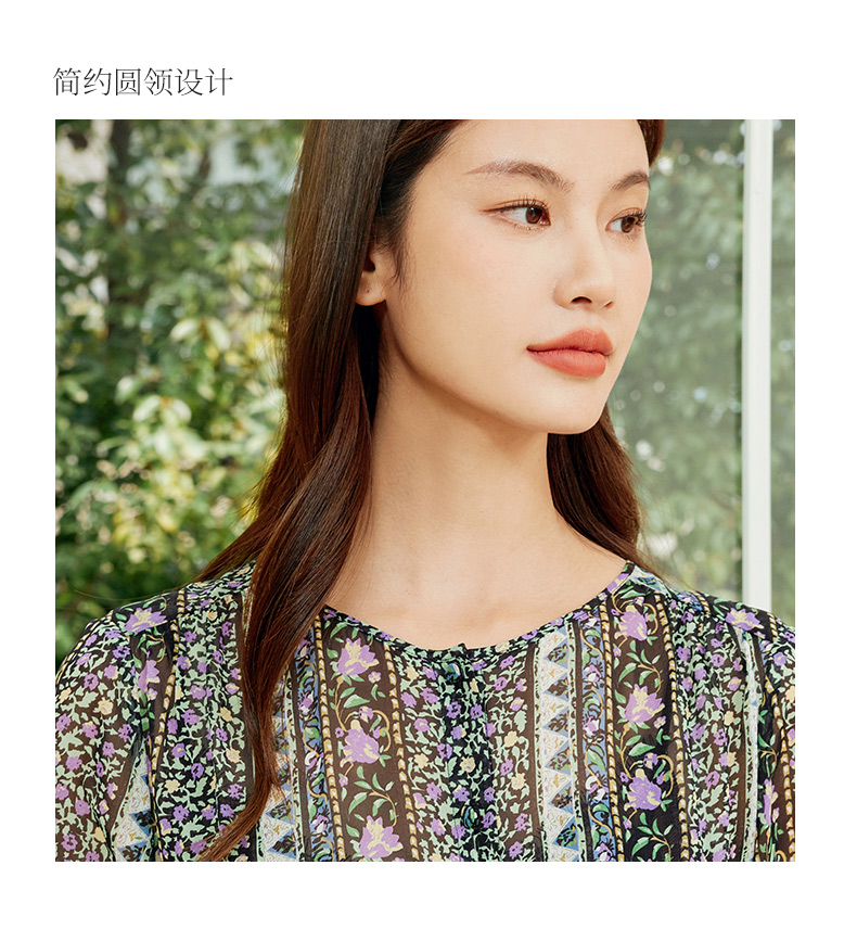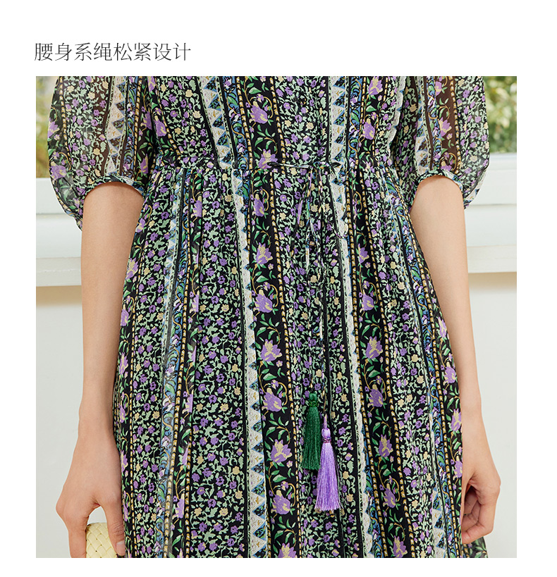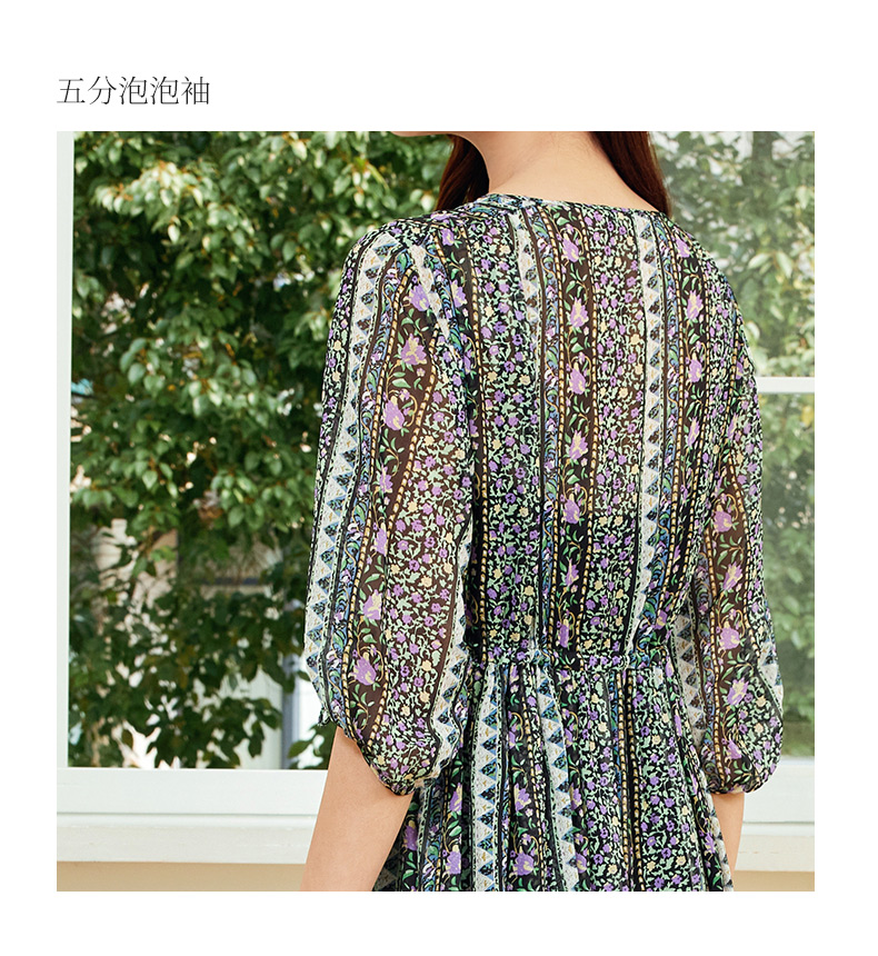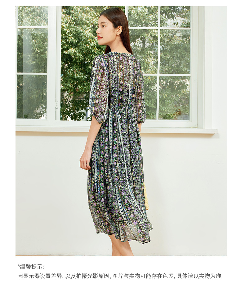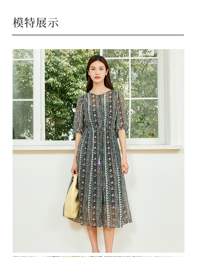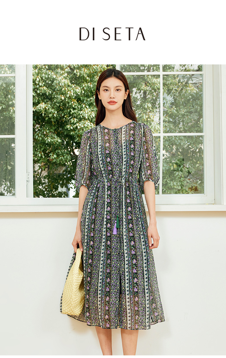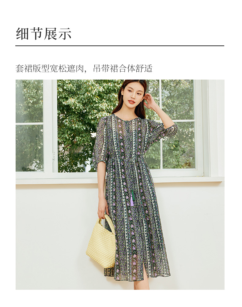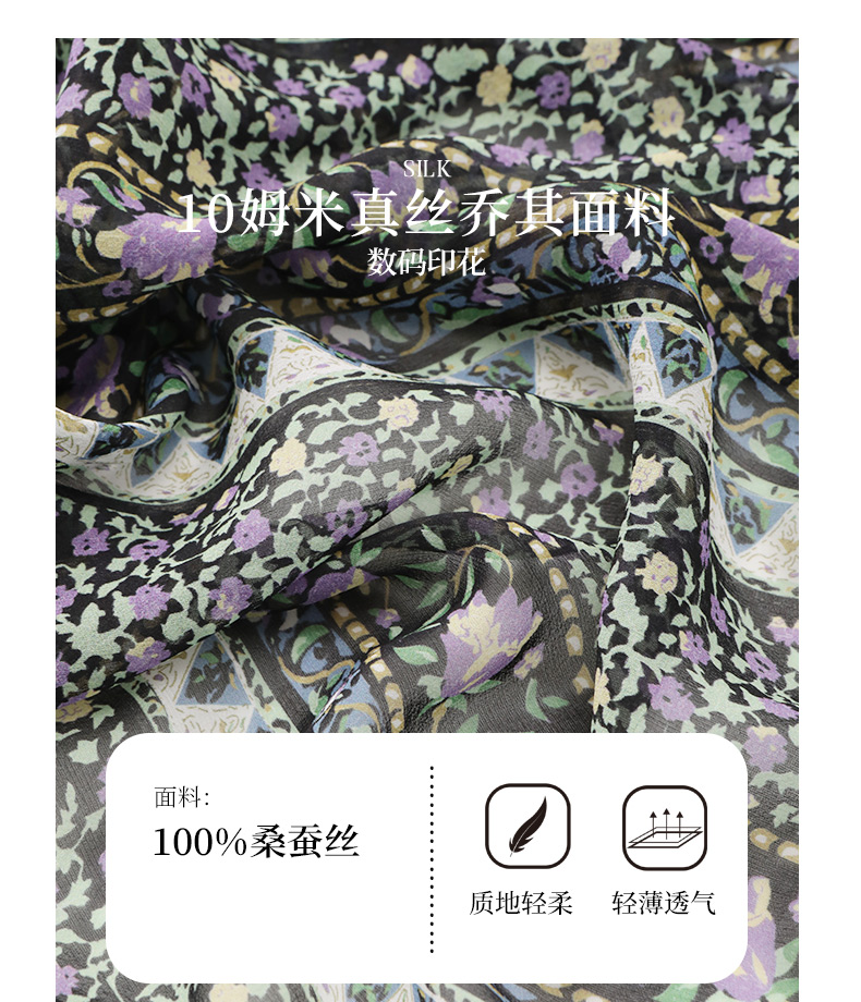 玳莎两件套真丝连衣裙2024新款夏季乔其桑蚕丝印花中长款裙 EB35106