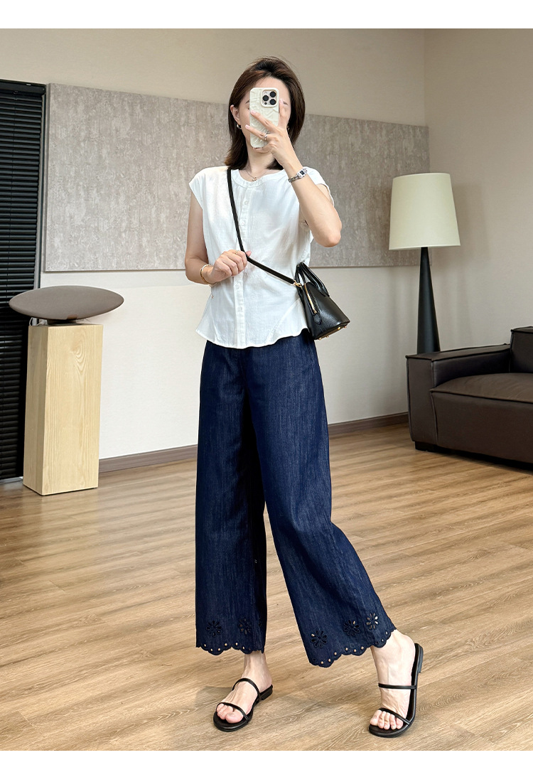1.白色牛仔裤是“天丝汉麻材质”,深蓝色属于“天丝亚麻材质”