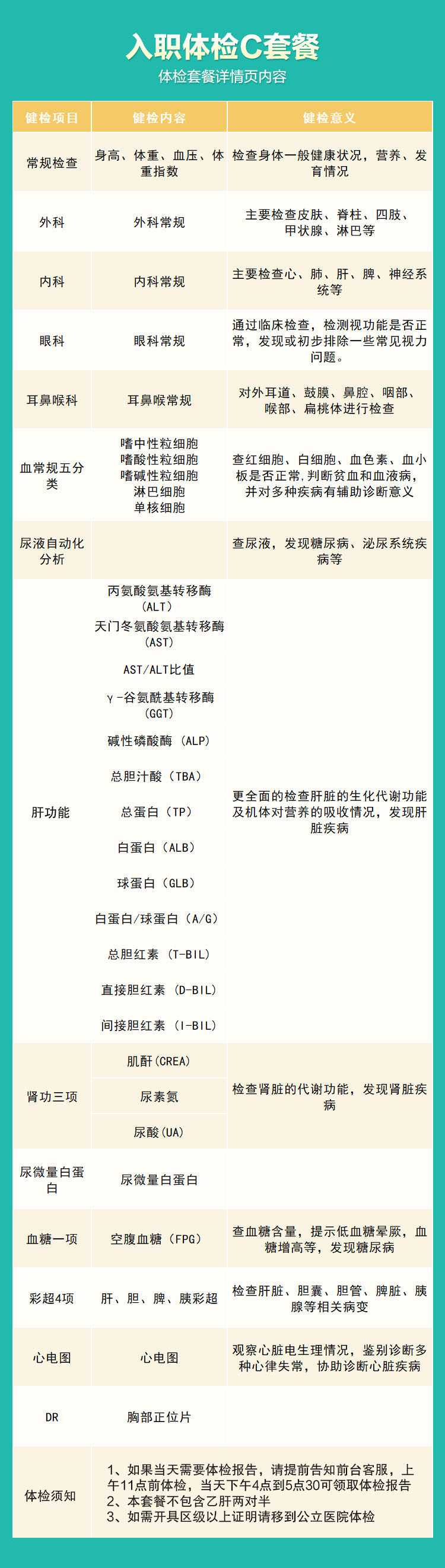 【特惠】入职体检C套餐(加彩超、肾功能,当天领取报告)-远东罗湖院区-体检科