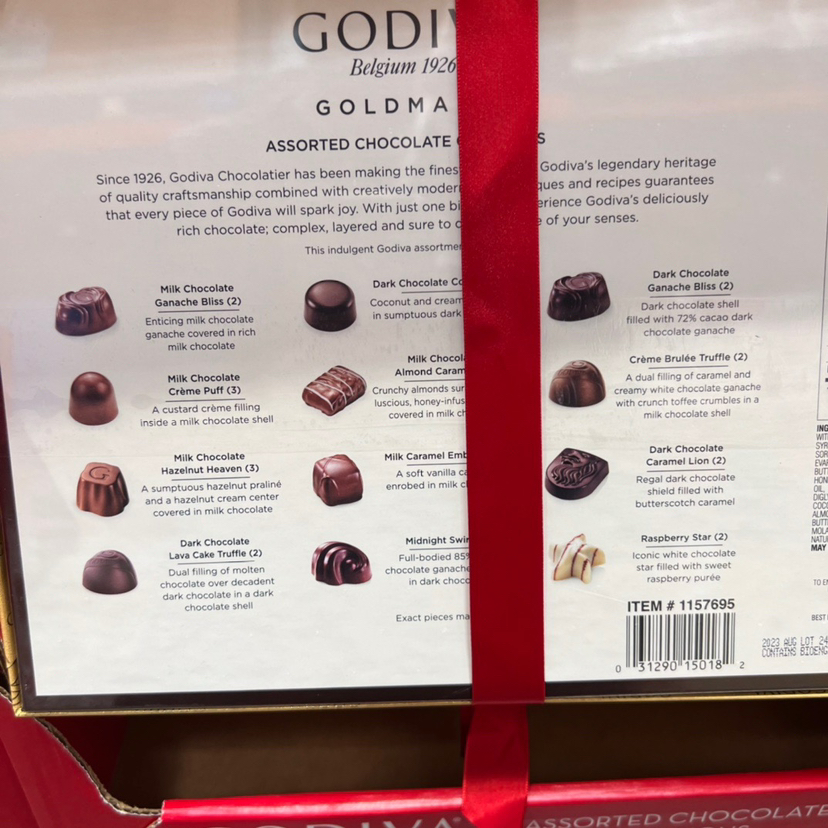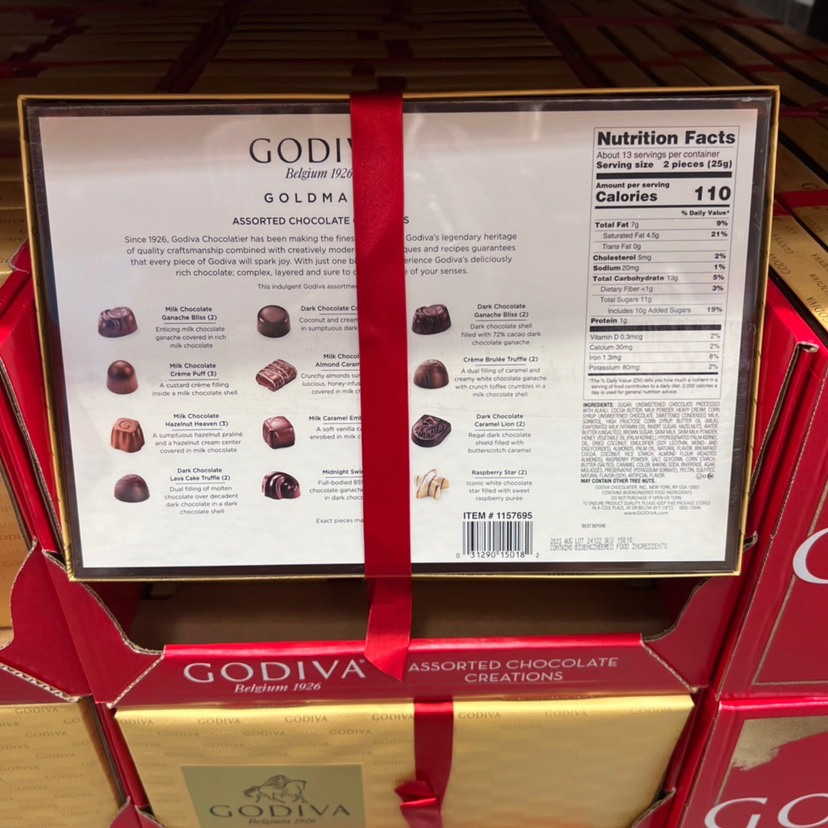 GODIVA巧克力中的爱马仕被称为巧克力中的 大 极 品,好吃的停不下来~节日特别礼盒装~巧克力雕花有档次,浓郁朱古力一口难忘,咬下去里面软心,浓浓的巧克力香滑~多种经典口味混合包装,送朋友👬送客户的不二选择!国内16颗就要四五百!