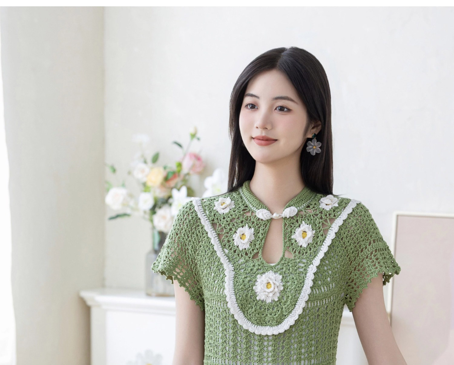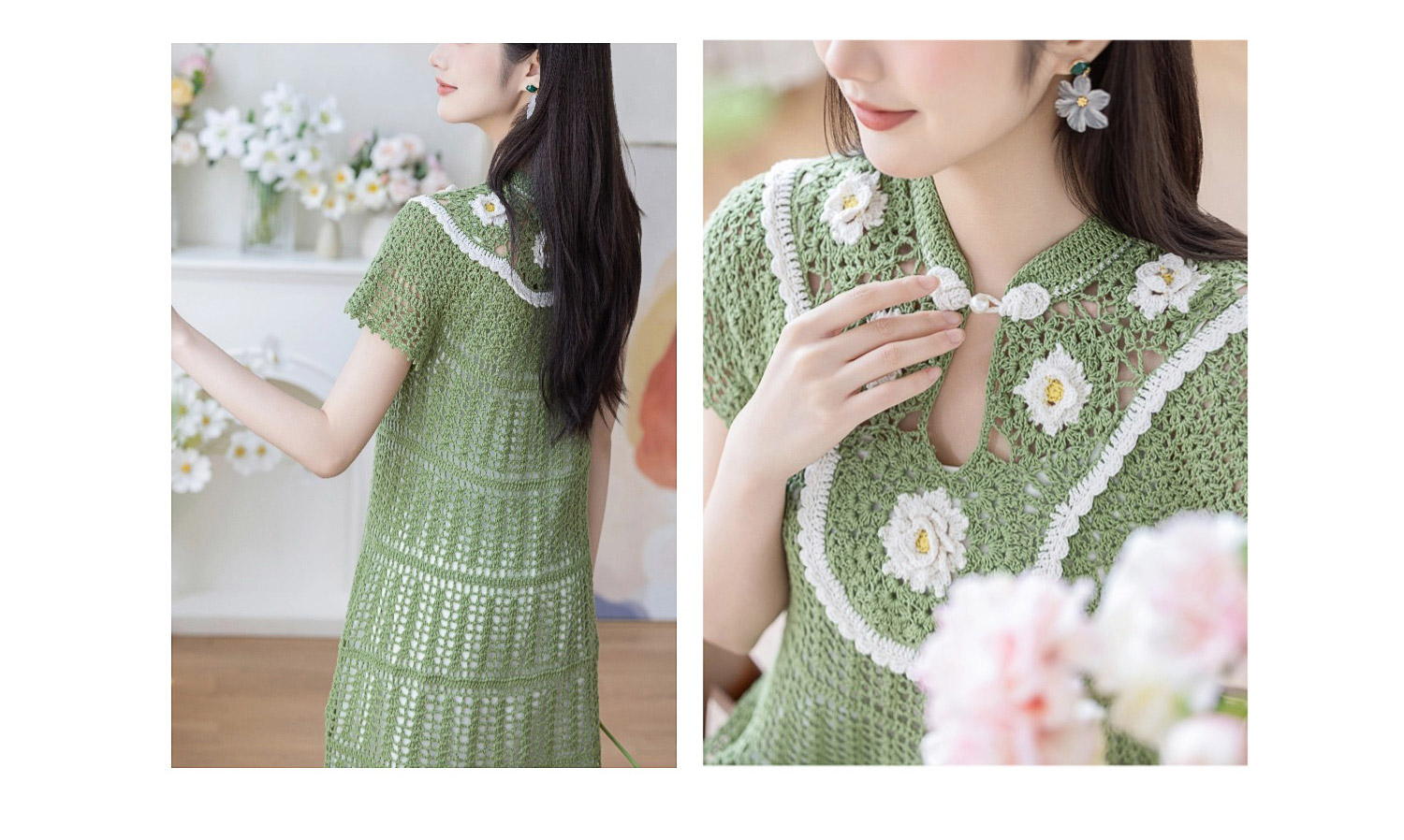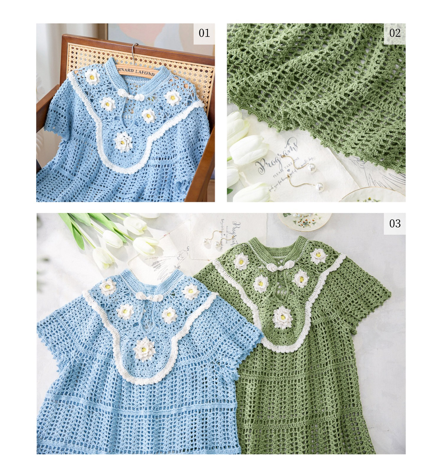苏苏姐家云肩花短袖连衣裙手工diy钩针编织棉麻上毛线团材料包