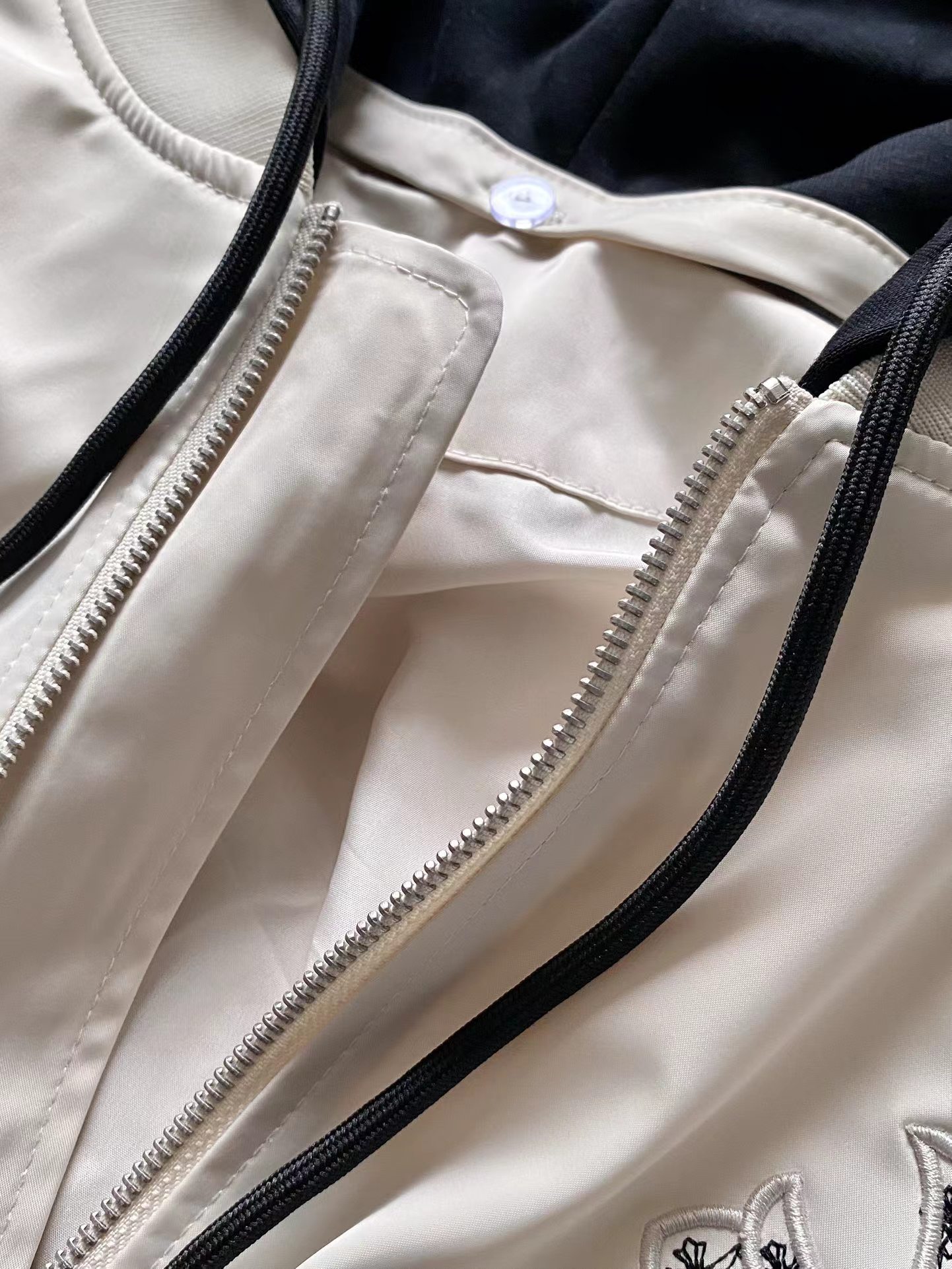 帽子可拆卸款!复古夹克外套夹克!男女同款!秋冬一款非常好看的一件棉服 出门b备神器 又防风 颜值超高!使这件棉服显的更加时尚! 后背以及前胸Logo全是刺绣!深浅搭配显得更加抢眼 整件衣服做工复杂!螺纹也是定制的双面螺纹 比较厚实!薄厚适中复古的时髦 永远都不褪流行!原版面料一致 面布 里布开模图案logo,定织绗棉用料!
