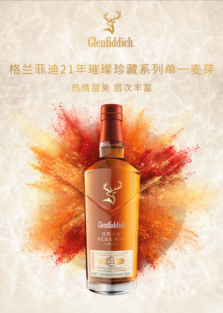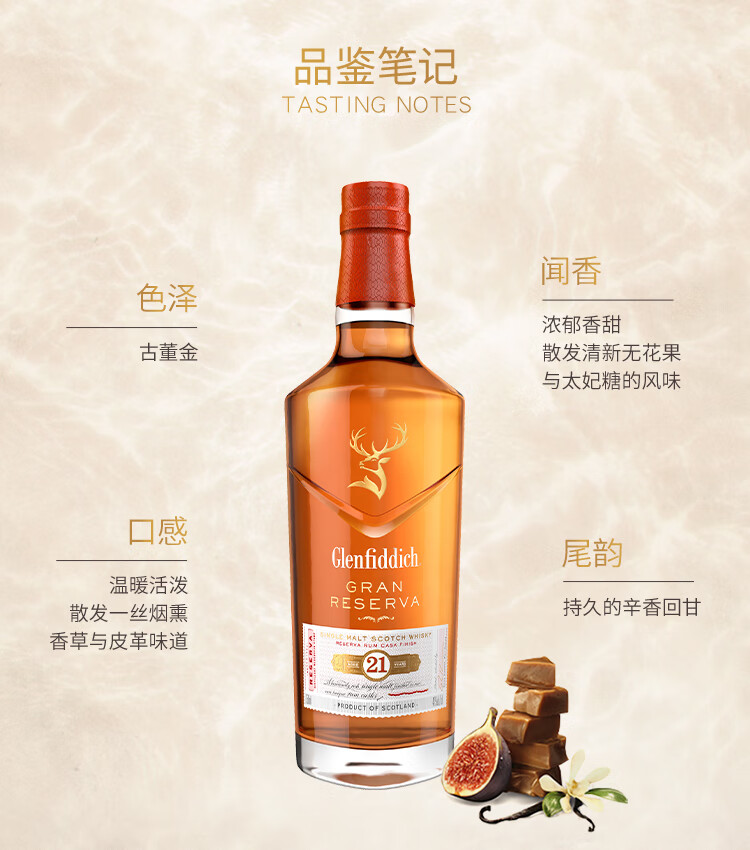 【行货】苏格兰格兰菲迪21年单一麦威士忌 700ml*1瓶