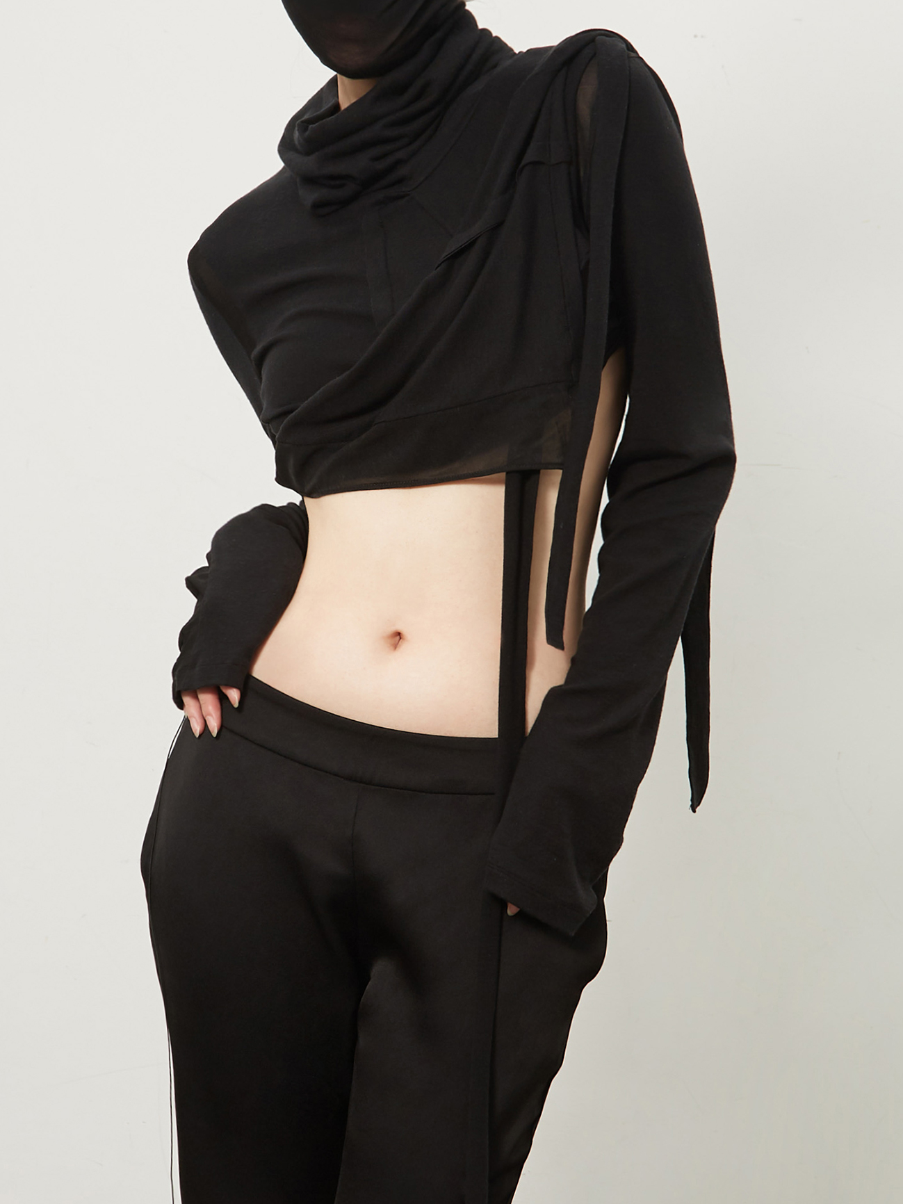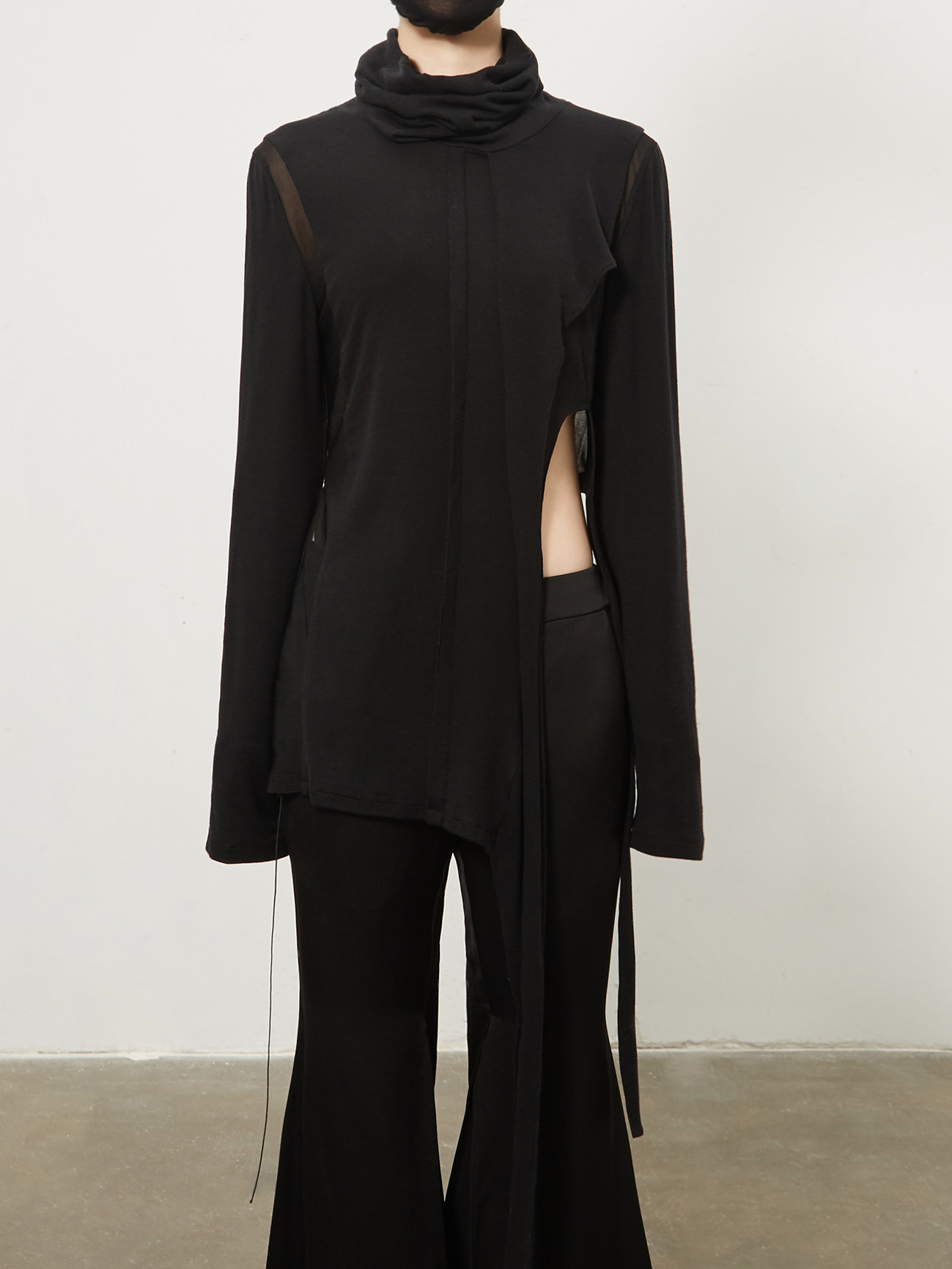 ranyepersonal|top 绑带多种系法堆领羊毛打底衫 [ 黑BODY23TO03 ]