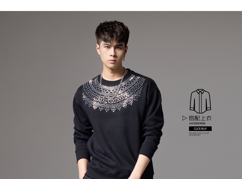 PINLI品立秋季新款男士圆领烫钻笑脸休闲套头卫衣BG223309036