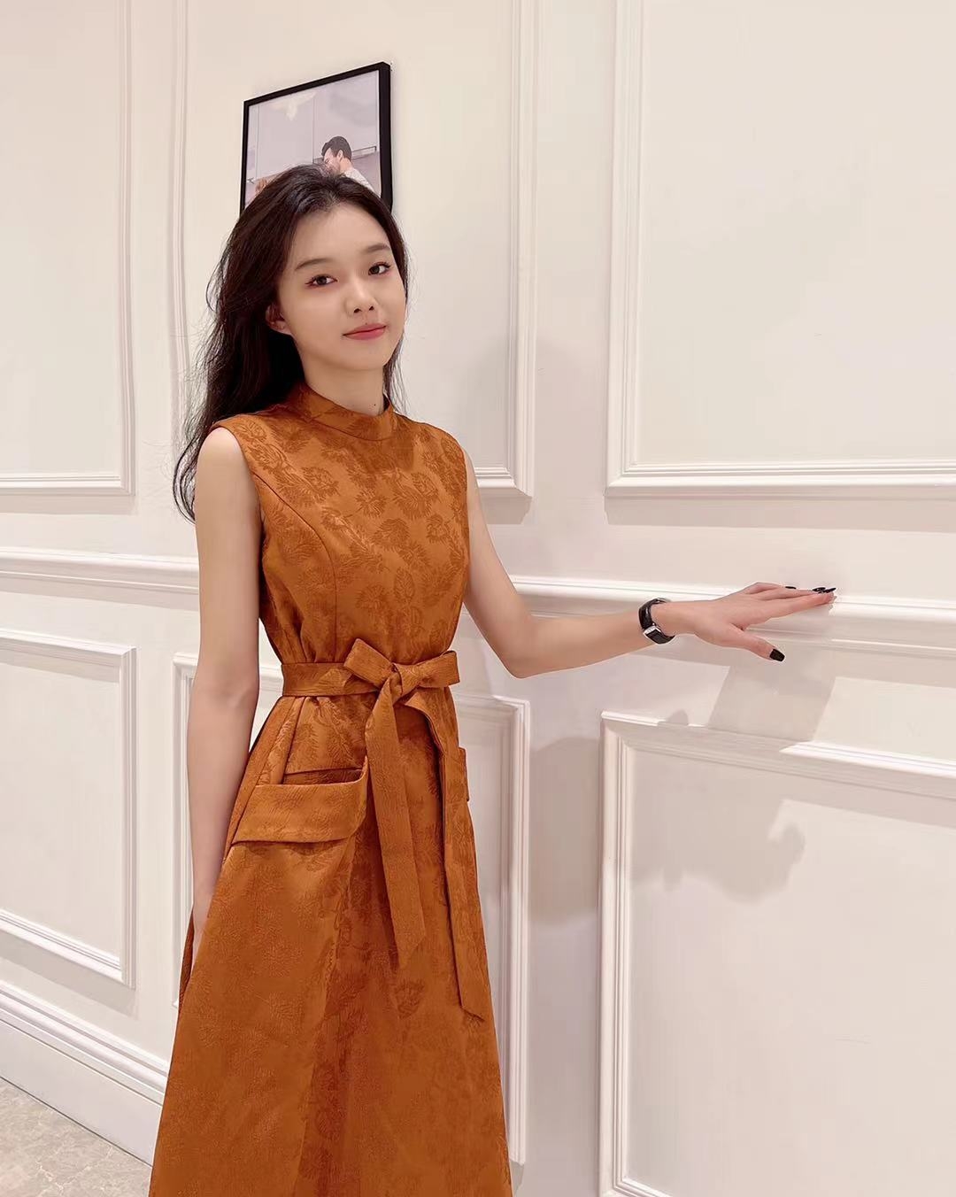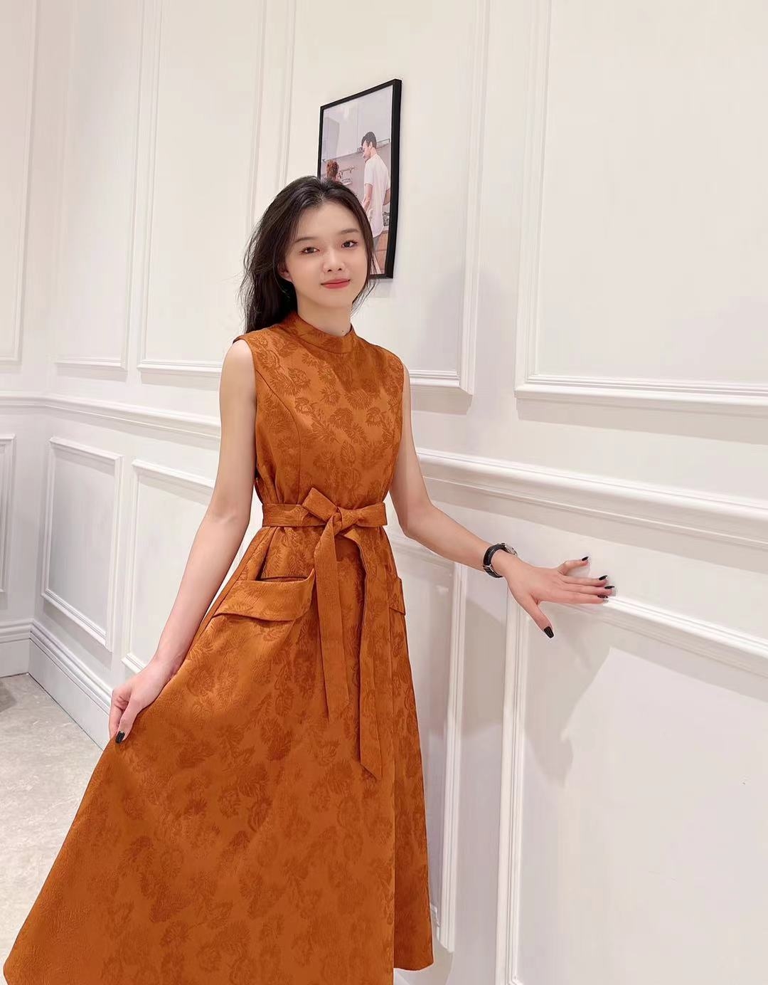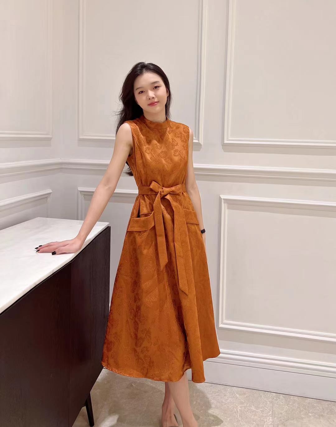 朱柿色连衣裙HJ3S87