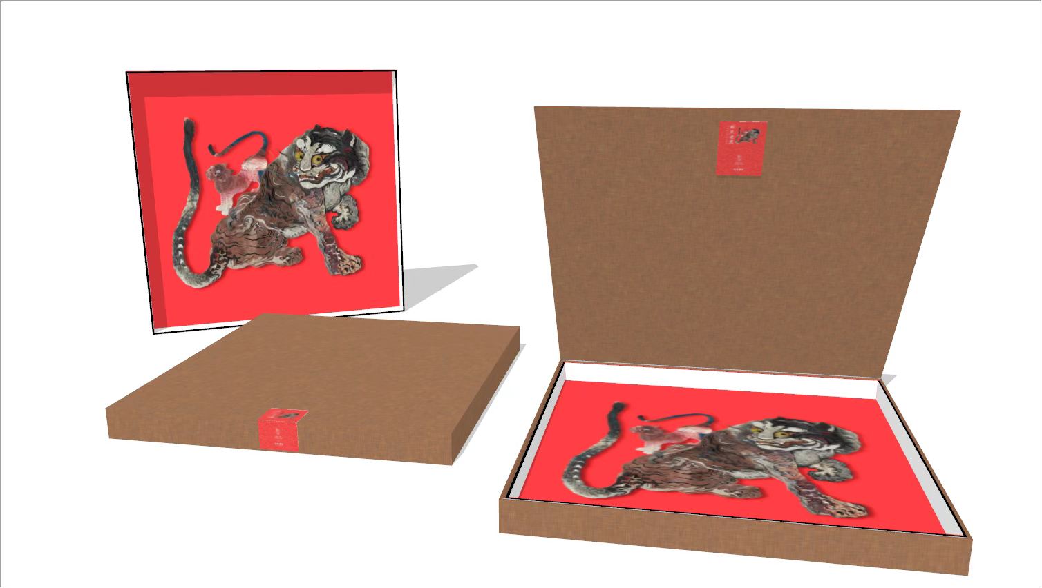 大幅(70x70cm,限量88版)的《两只老虎》生肖版画产品包装图: