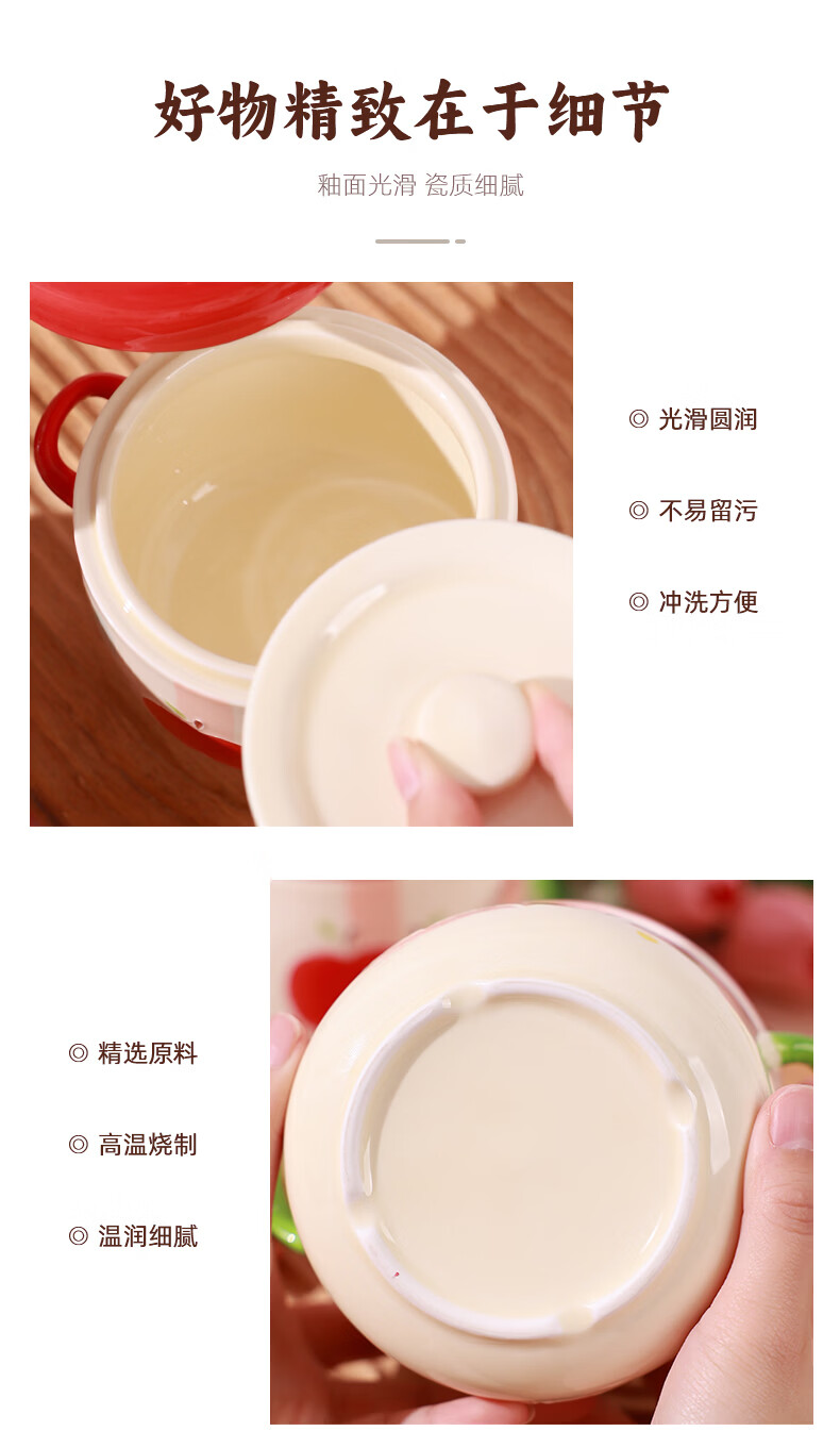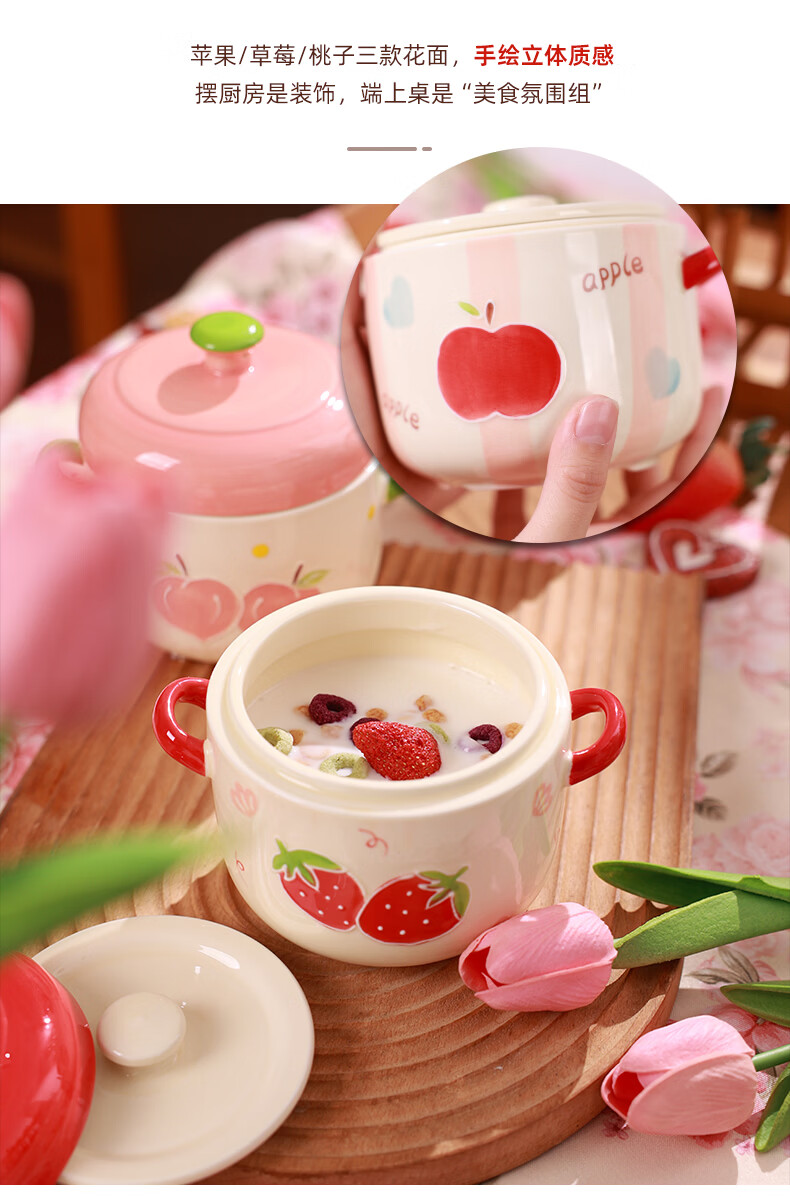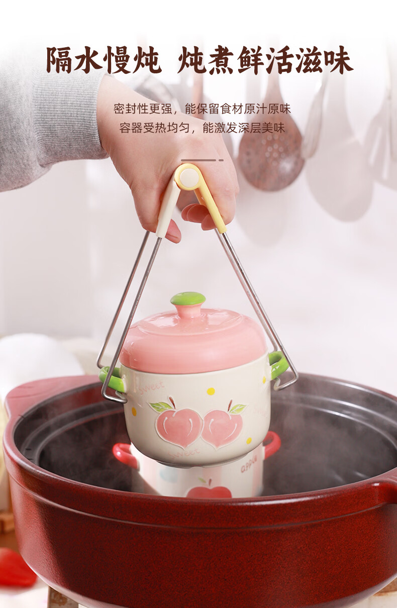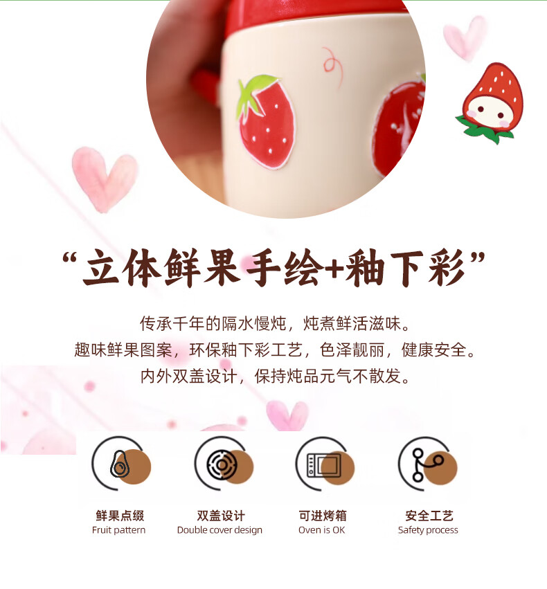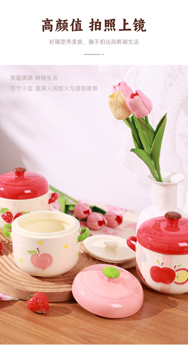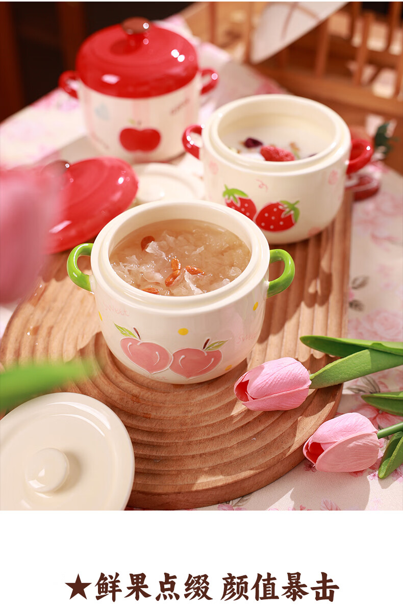 【手绘果趣双盖炖盅】蒸蛋羹燕窝专用陶瓷双盖炖盅隔水炖家用一人份婴儿小汤盅瓦罐