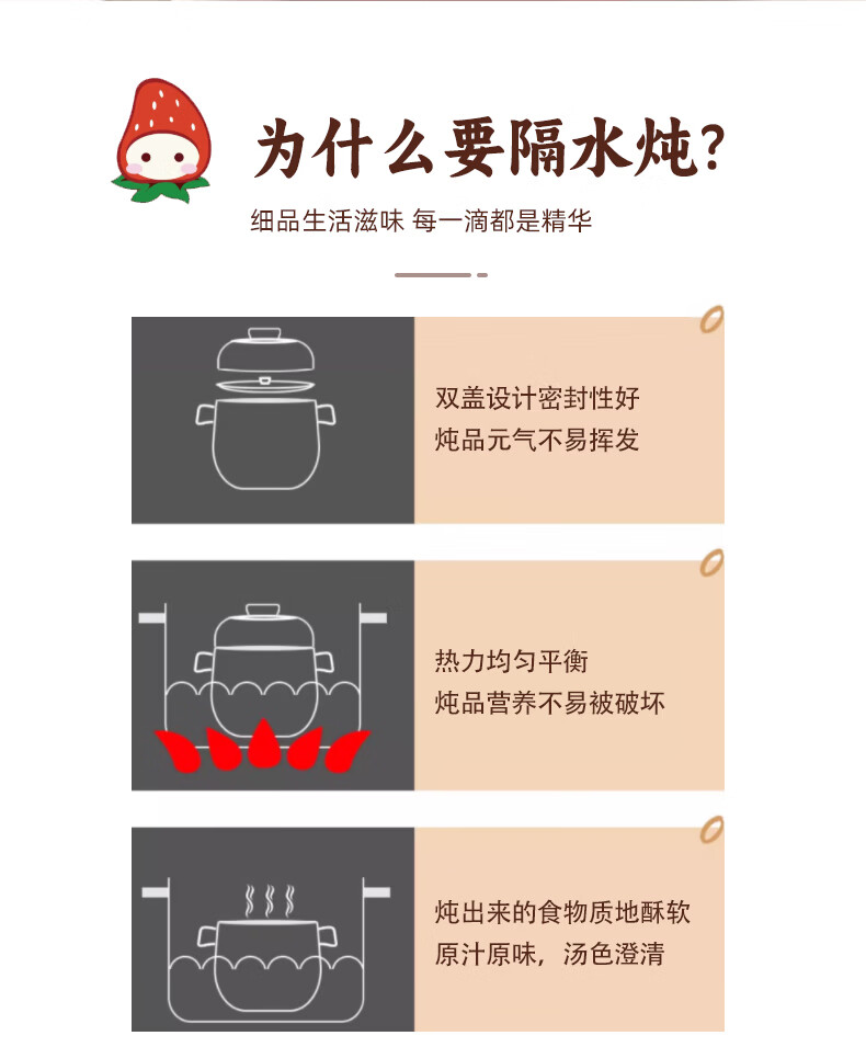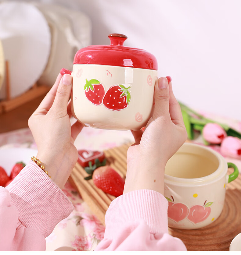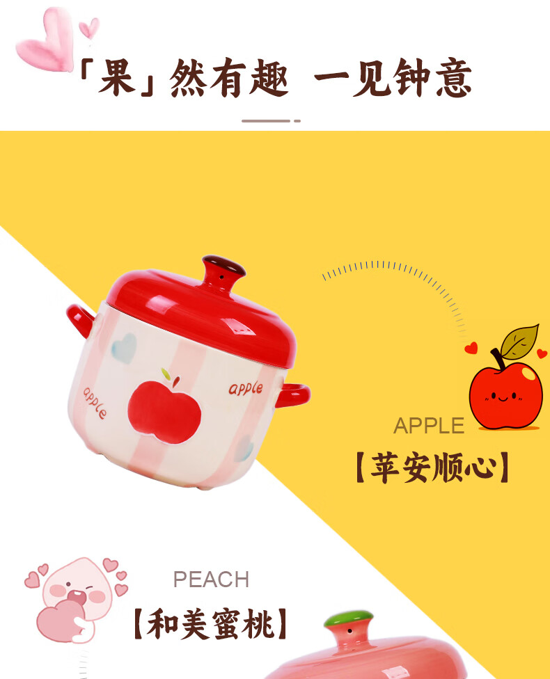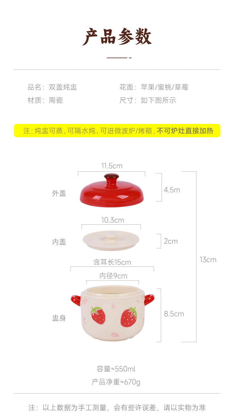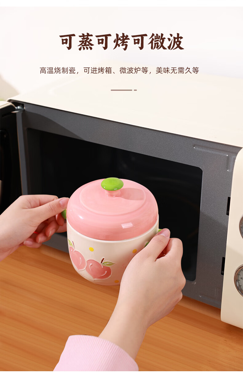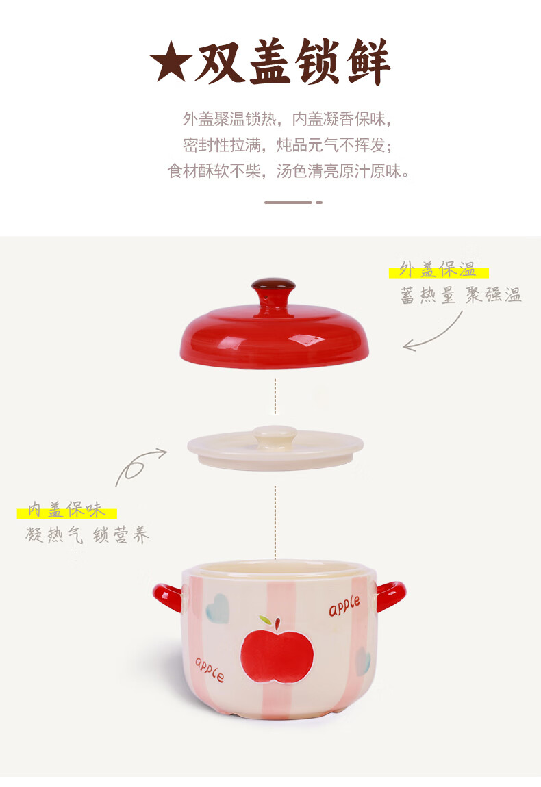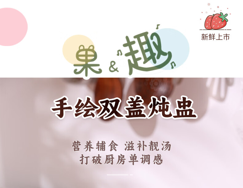 【手绘果趣双盖炖盅】蒸蛋羹燕窝专用陶瓷双盖炖盅隔水炖家用一人份婴儿小汤盅瓦罐