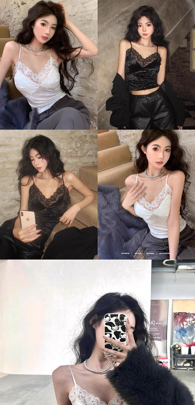 【买一送一 】金丝绒蕾丝小吊带 超美精美蕾丝花边 高弹舒适缝内搭吊带 透气润肤