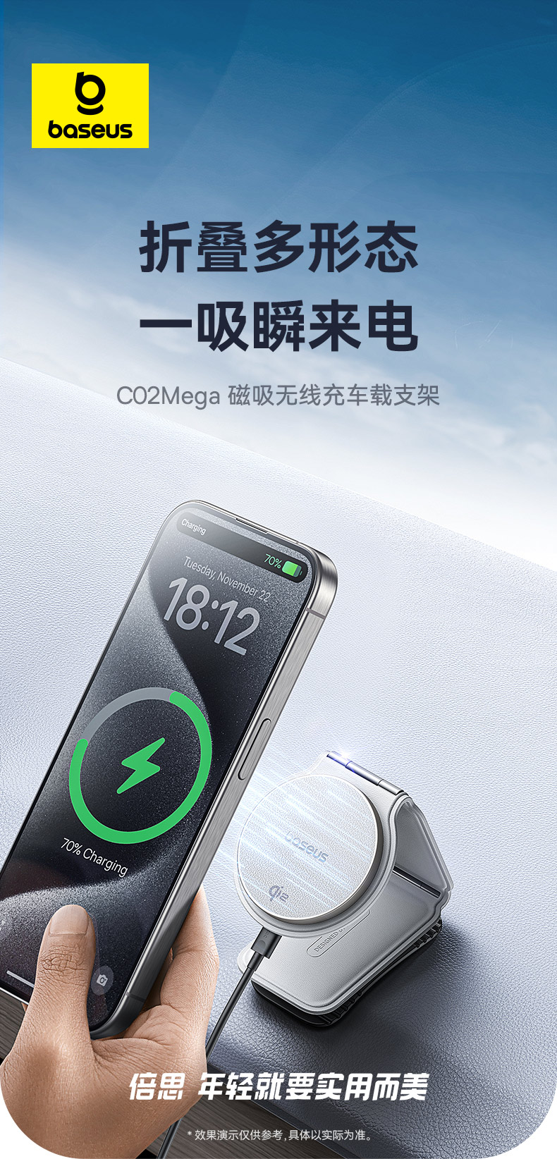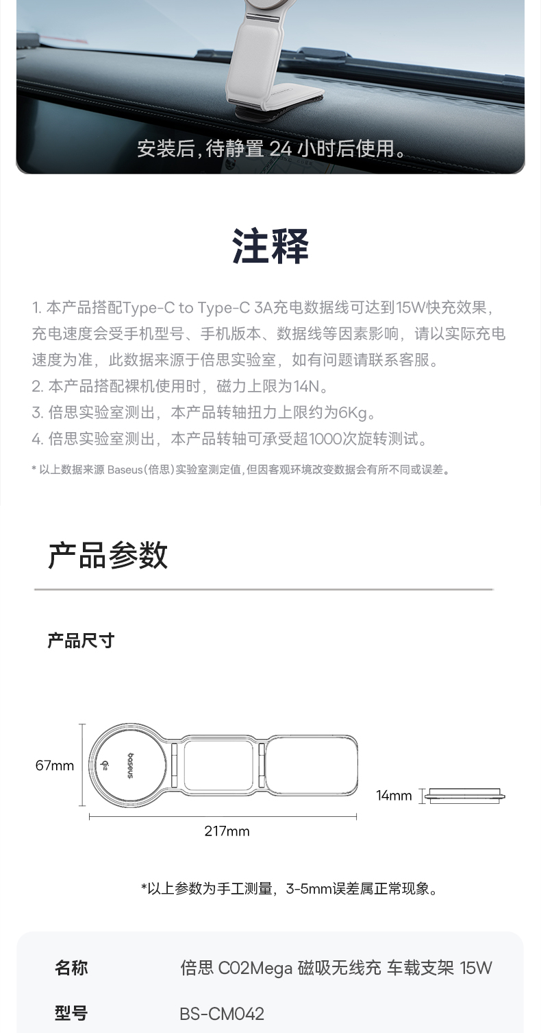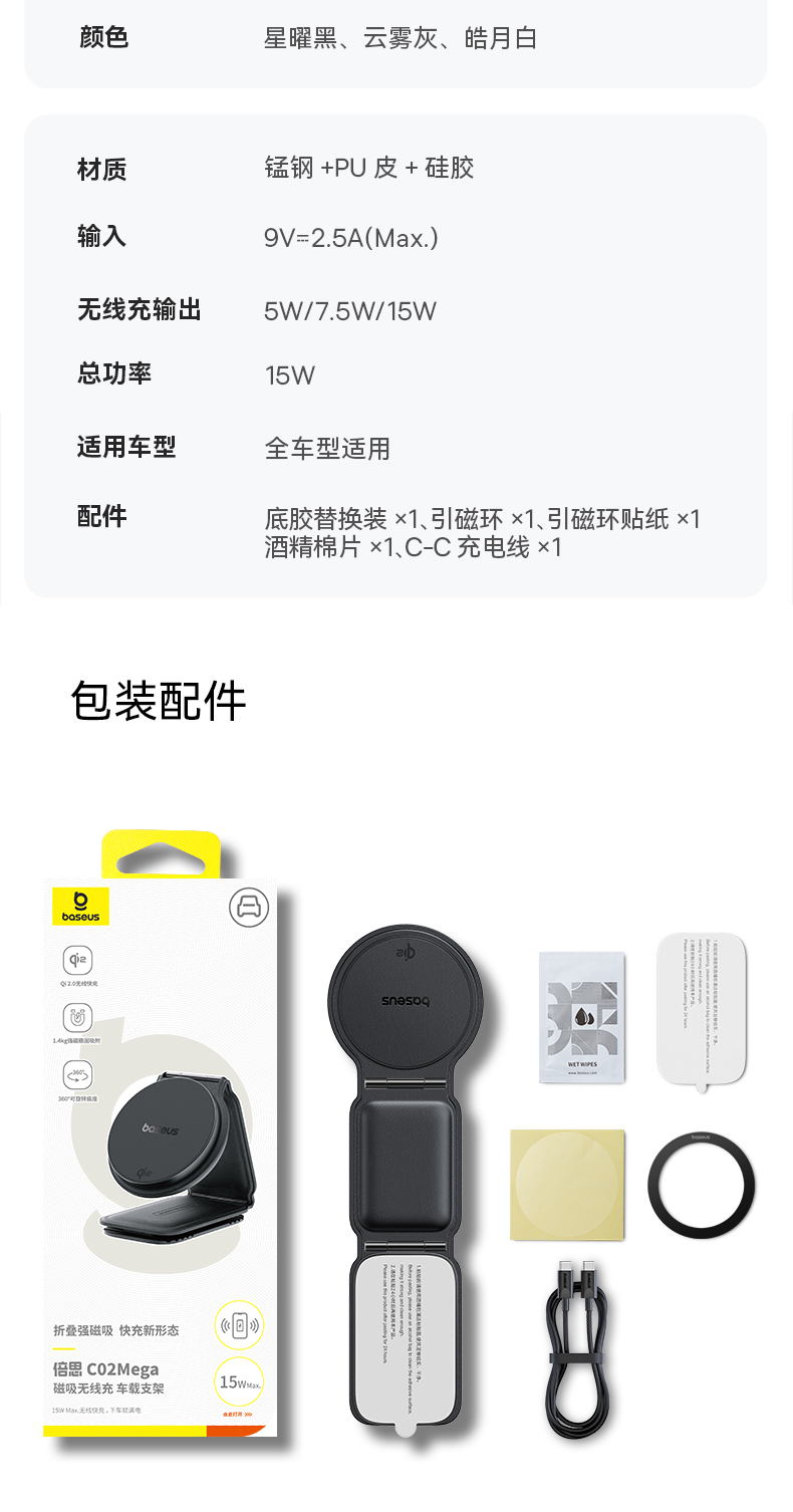 【十一专享】倍思 C02 Mega 磁吸无线充 车载支架 粘贴版