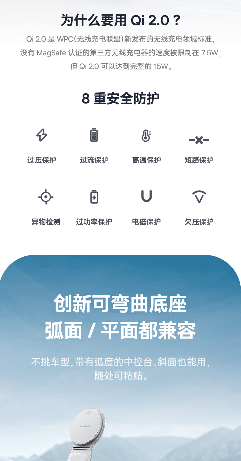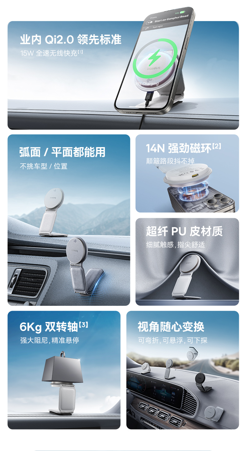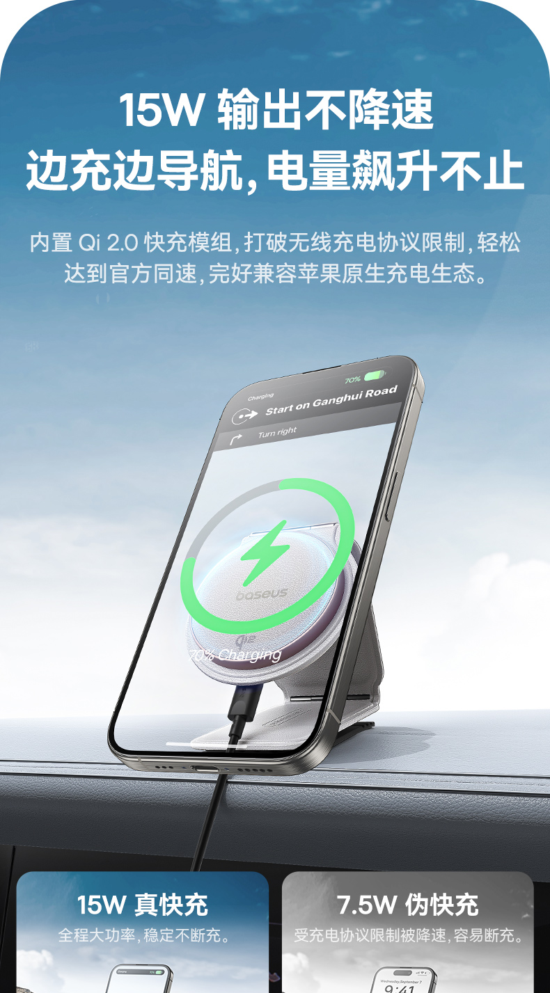 【十一专享】倍思 C02 Mega 磁吸无线充 车载支架 粘贴版