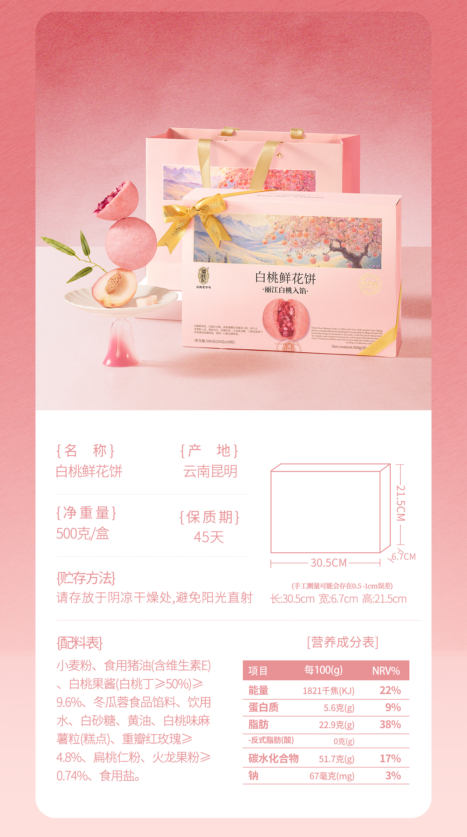 【2025年头水花新品】潘祥记白桃鲜花饼礼盒