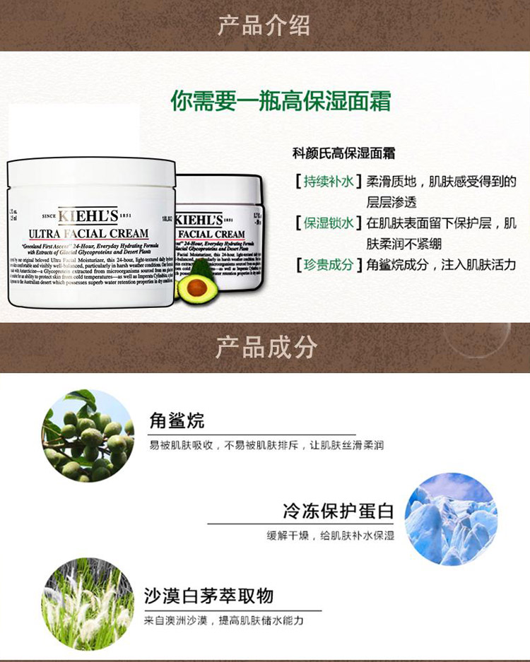 【香港直邮】美国科颜氏 Kiehl's高保湿面霜125ml(新老版本随机发货)