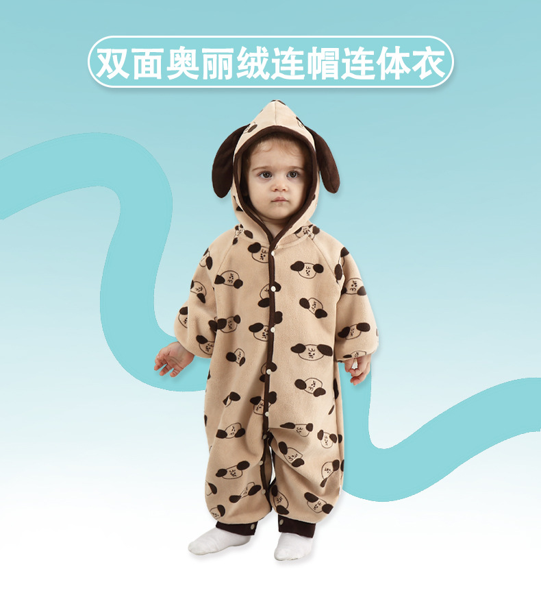 【双面抱抱绒~轻盈保暖不臃肿】婴儿连体衣服秋冬款双面奥利绒外出连体衣立体连帽哈衣居家爬服