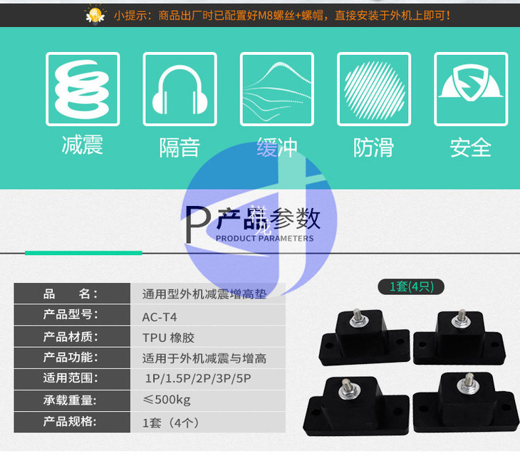 商品描述:空调减震胶垫 4只/付 商品代码92082