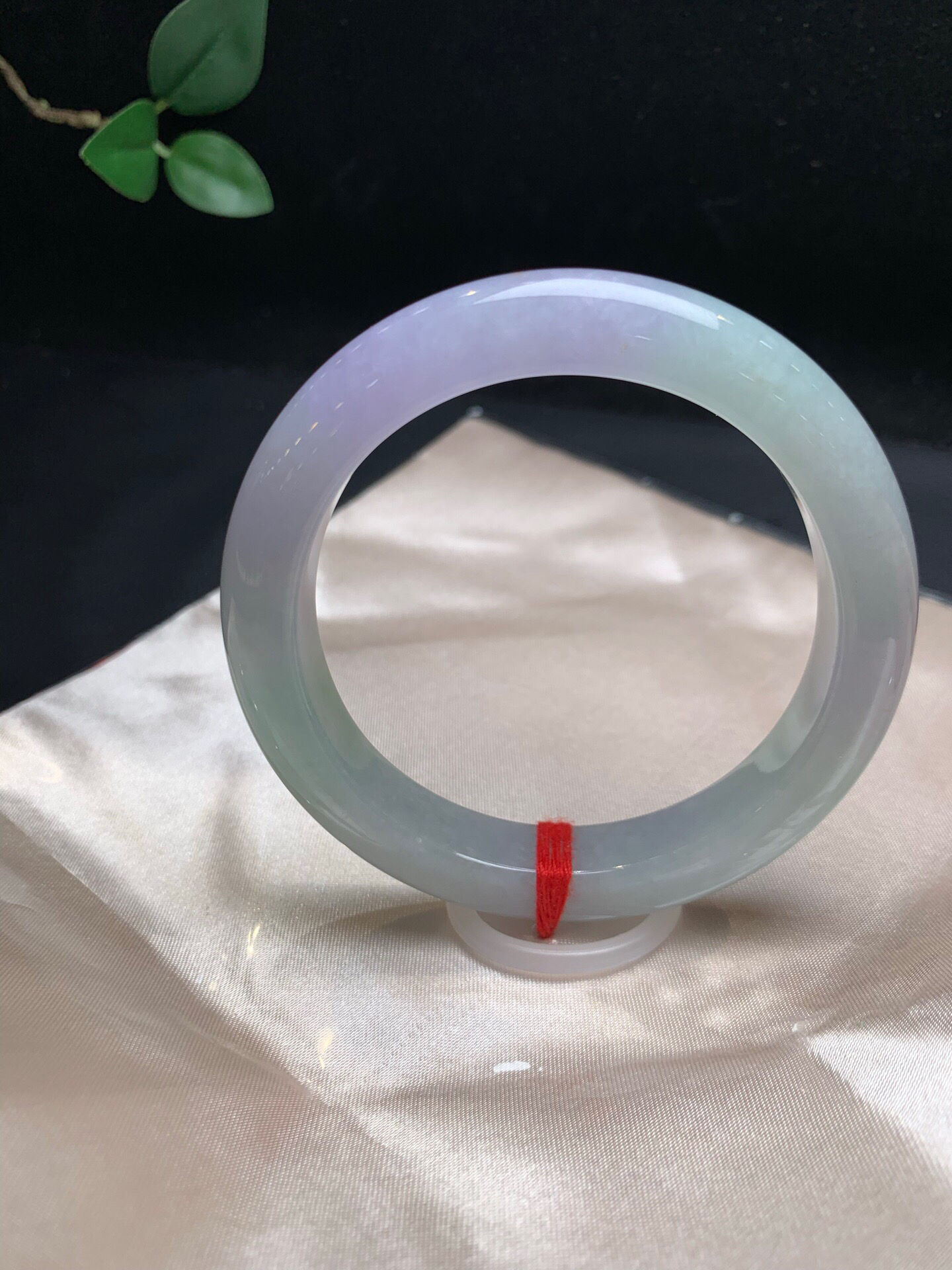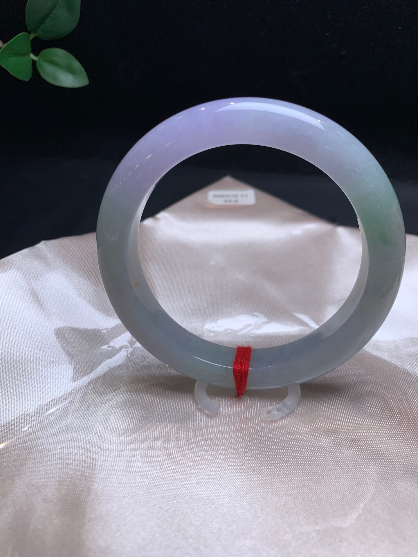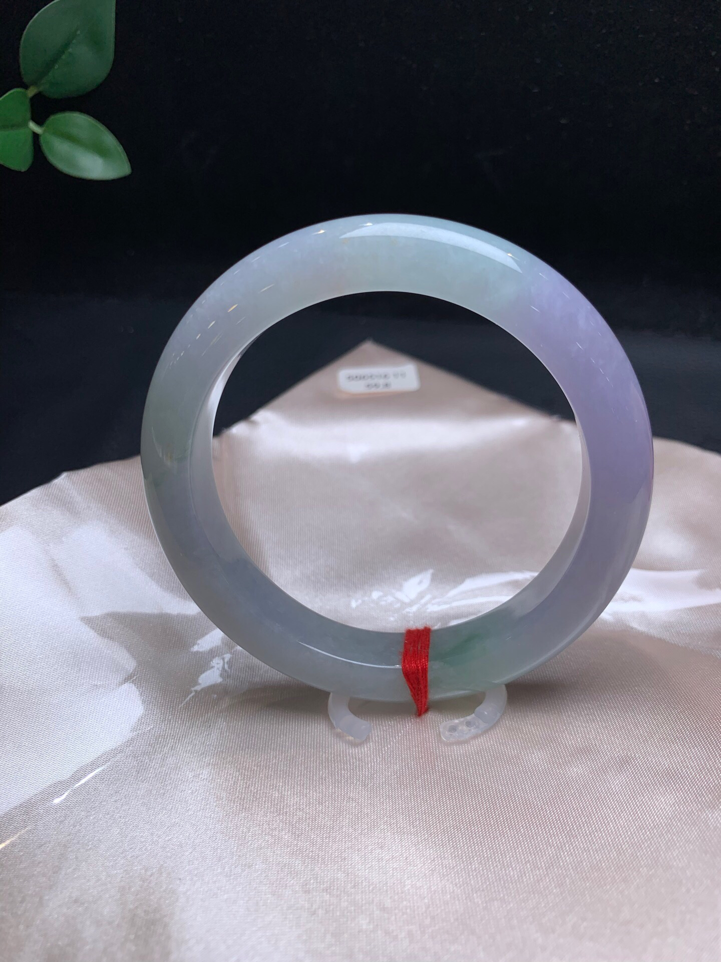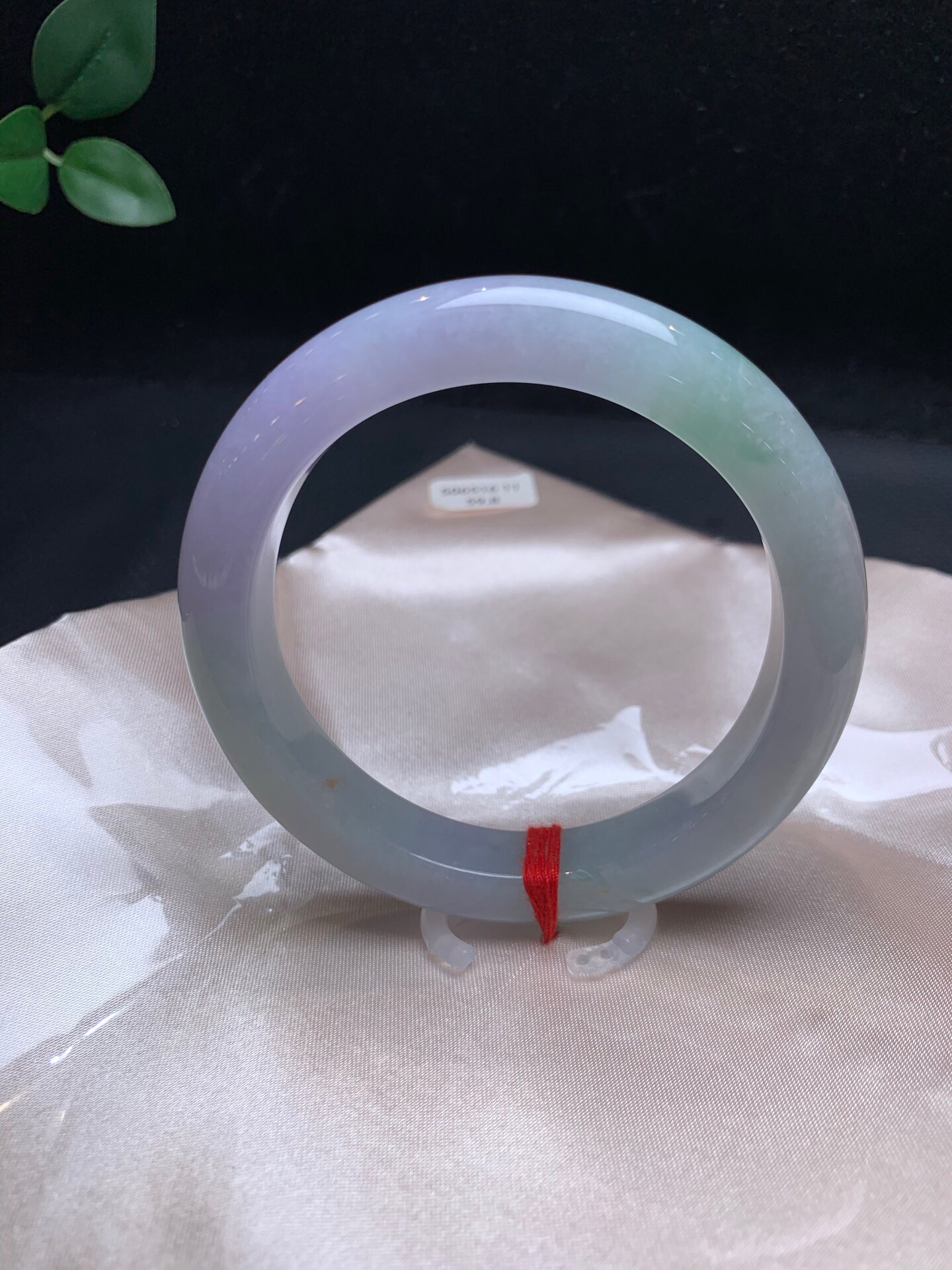 620707,57.8圈口,冰春彩圆条美人条,粉紫飘一抹甜绿,种水好,底子细润