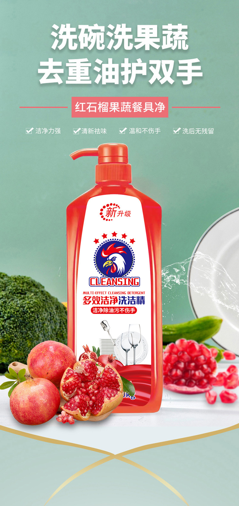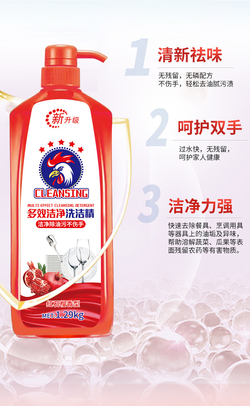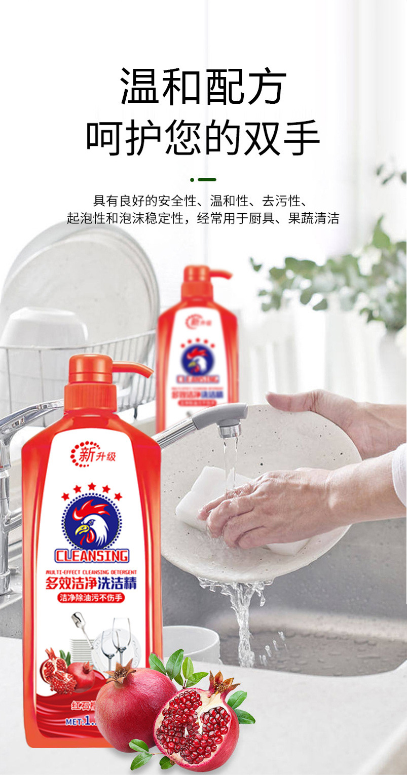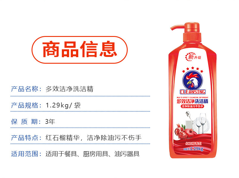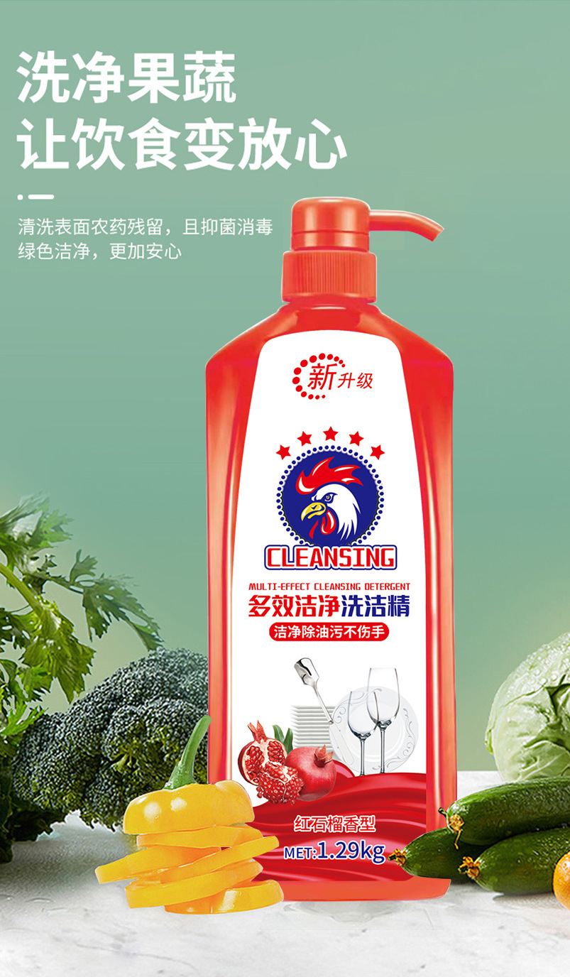 【高效多用途,1瓶顶多瓶】大公鸡食品级洗洁精,一按一抹轻松洗净餐具,快速洗净表面污垢,安全呵护多效洁净去油1.29kg清洁厨房餐果QQ