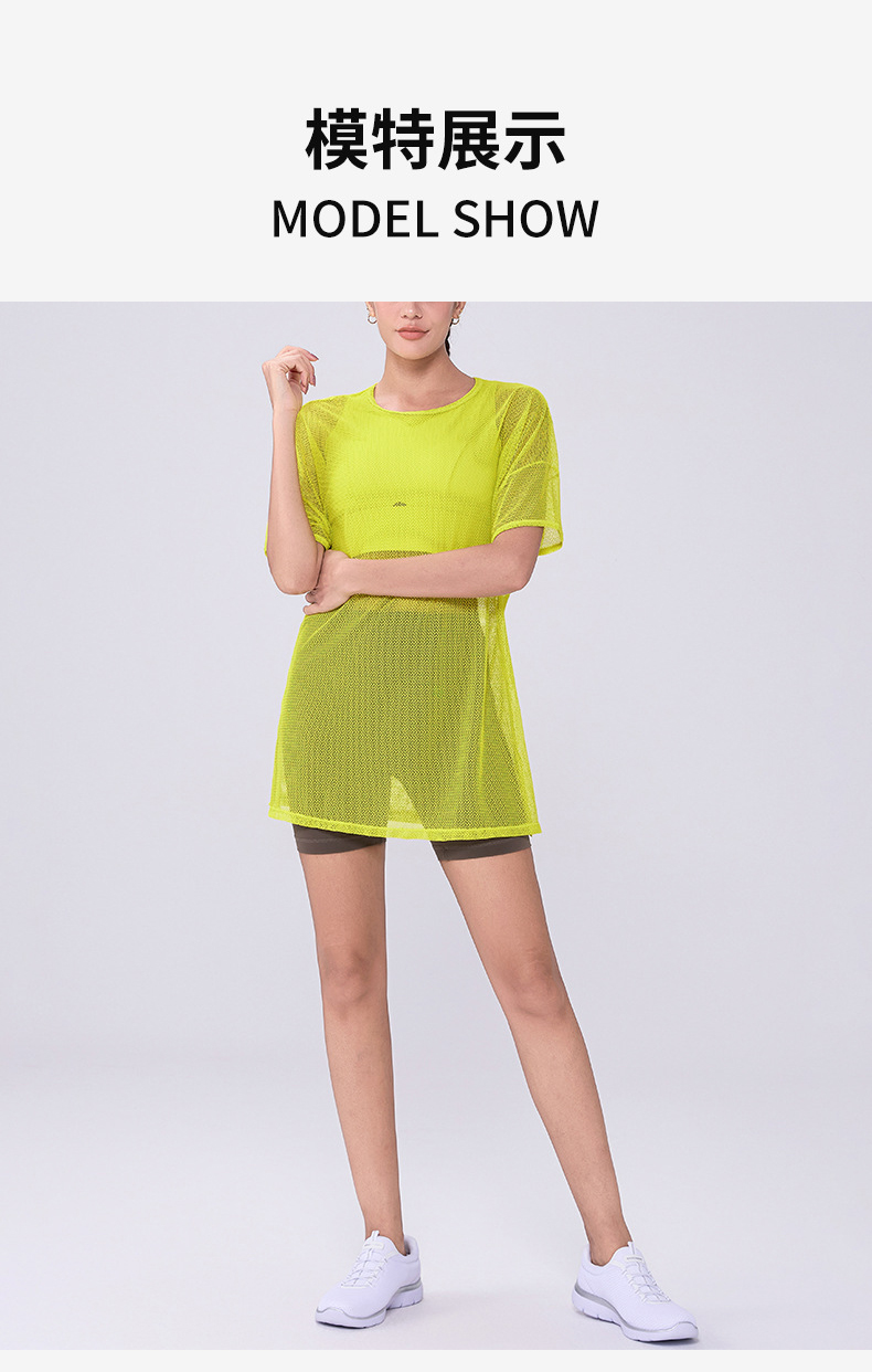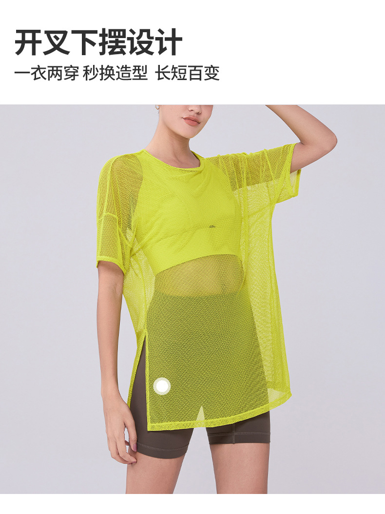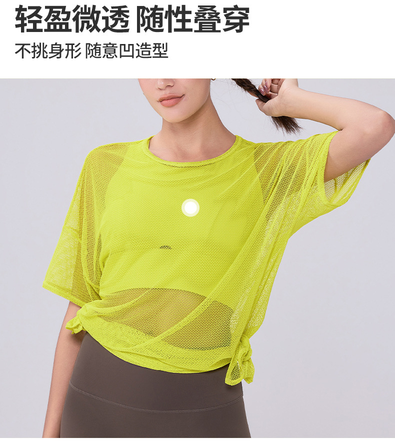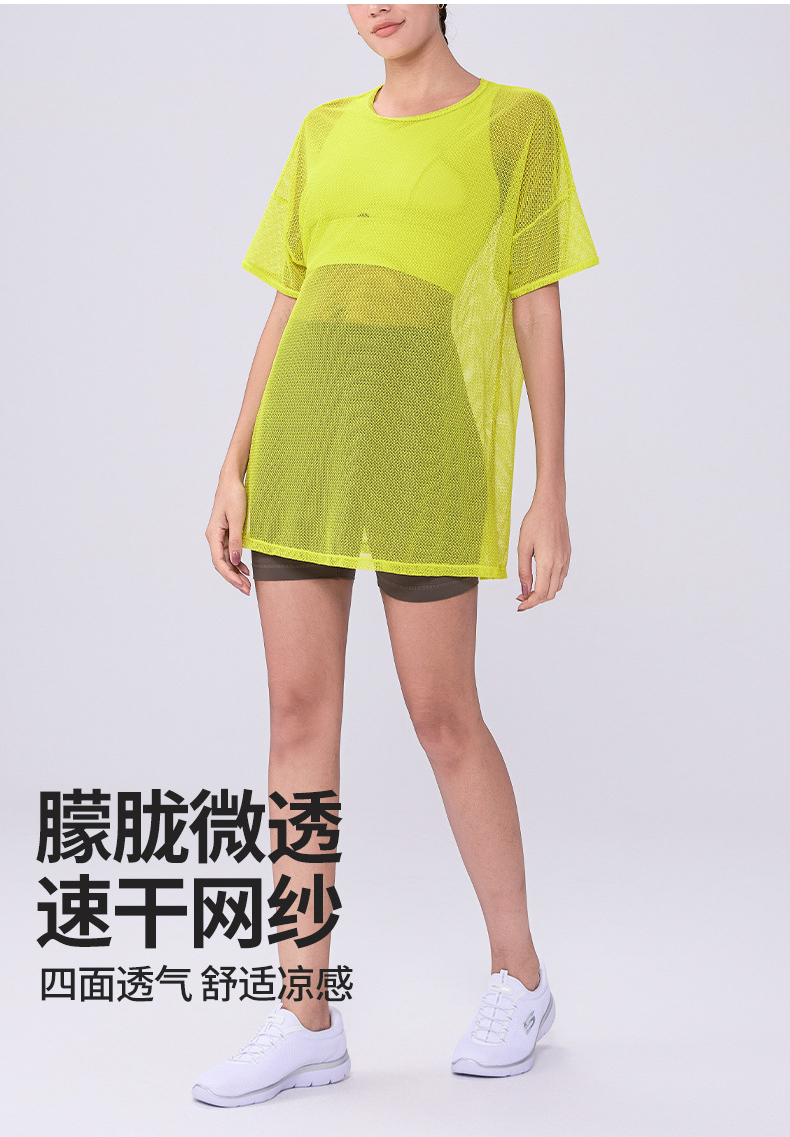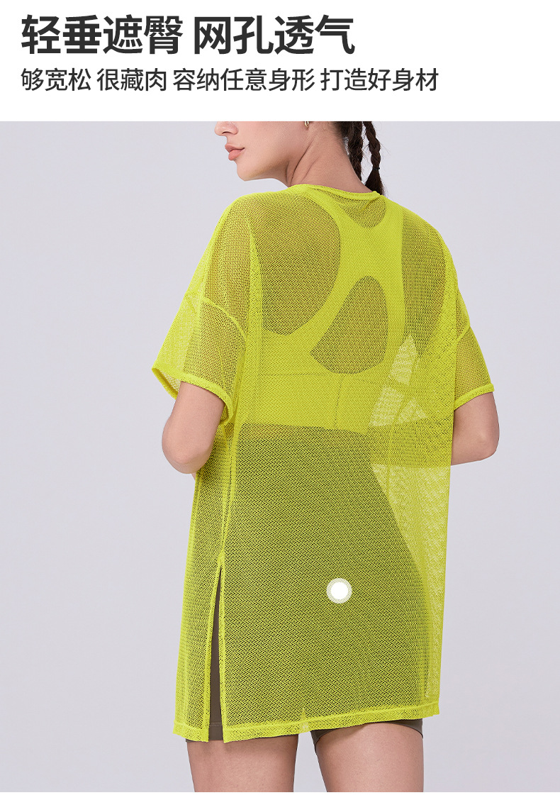 跃牌(呗咪纷纷系列)夏季亲肤运动轻薄宽松户外透气瑜伽休闲遮臀凉感罩衫短袖上衣女DX3307