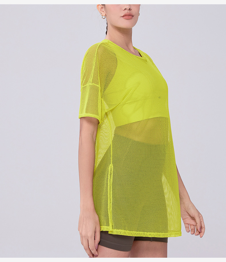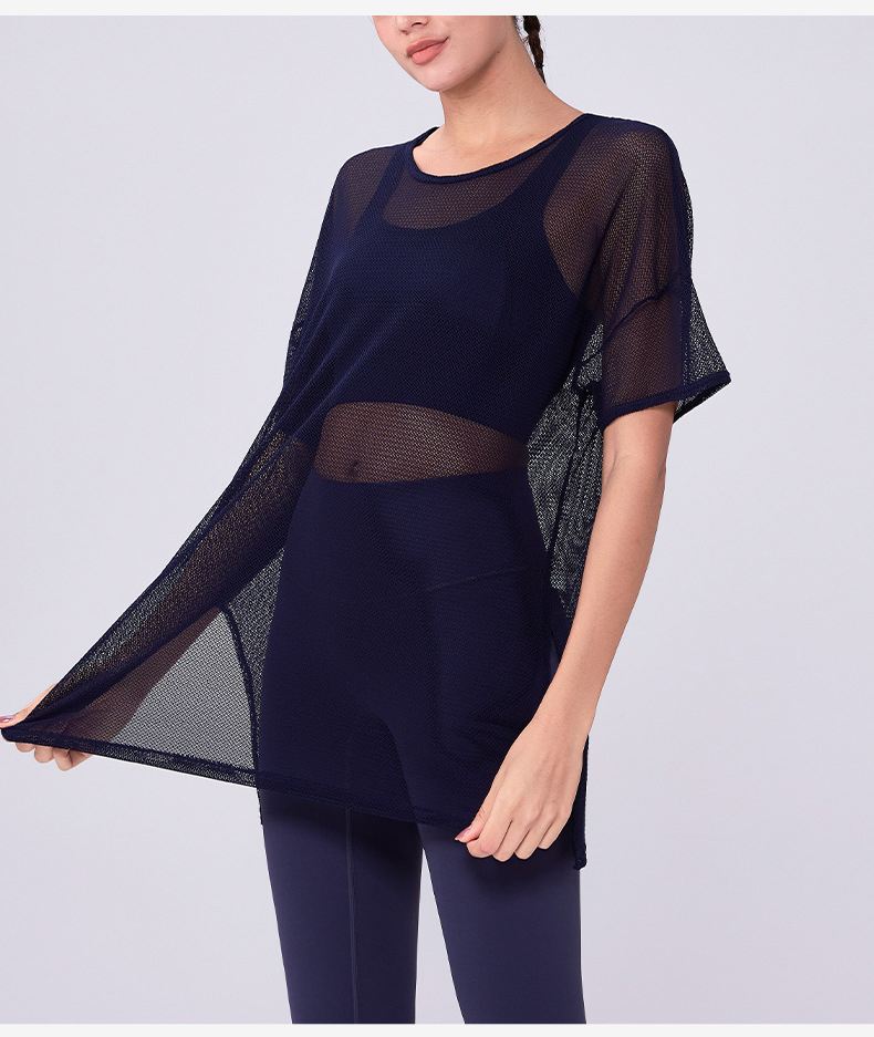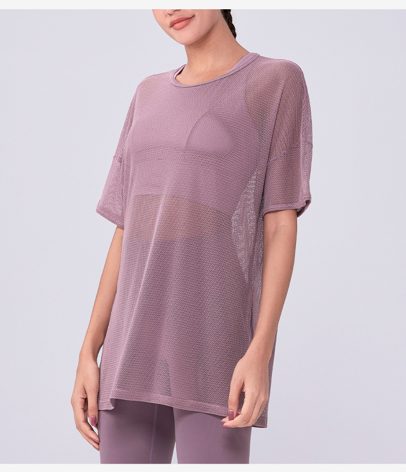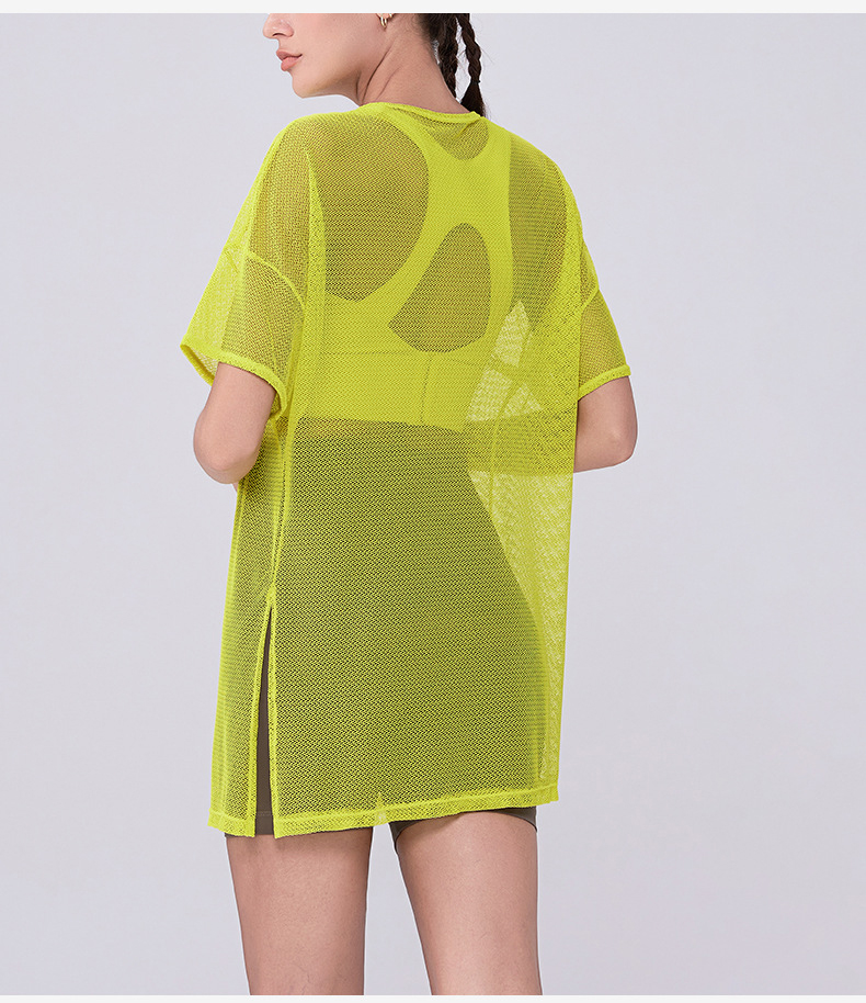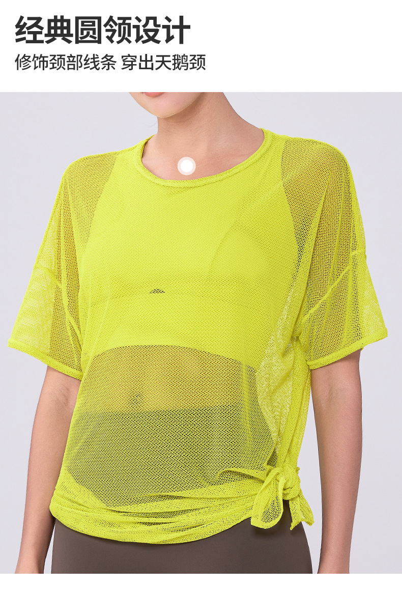 跃牌(呗咪纷纷系列)夏季亲肤运动轻薄宽松户外透气瑜伽休闲遮臀凉感罩衫短袖上衣女DX3307