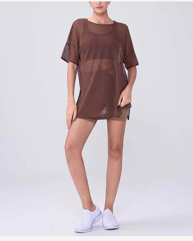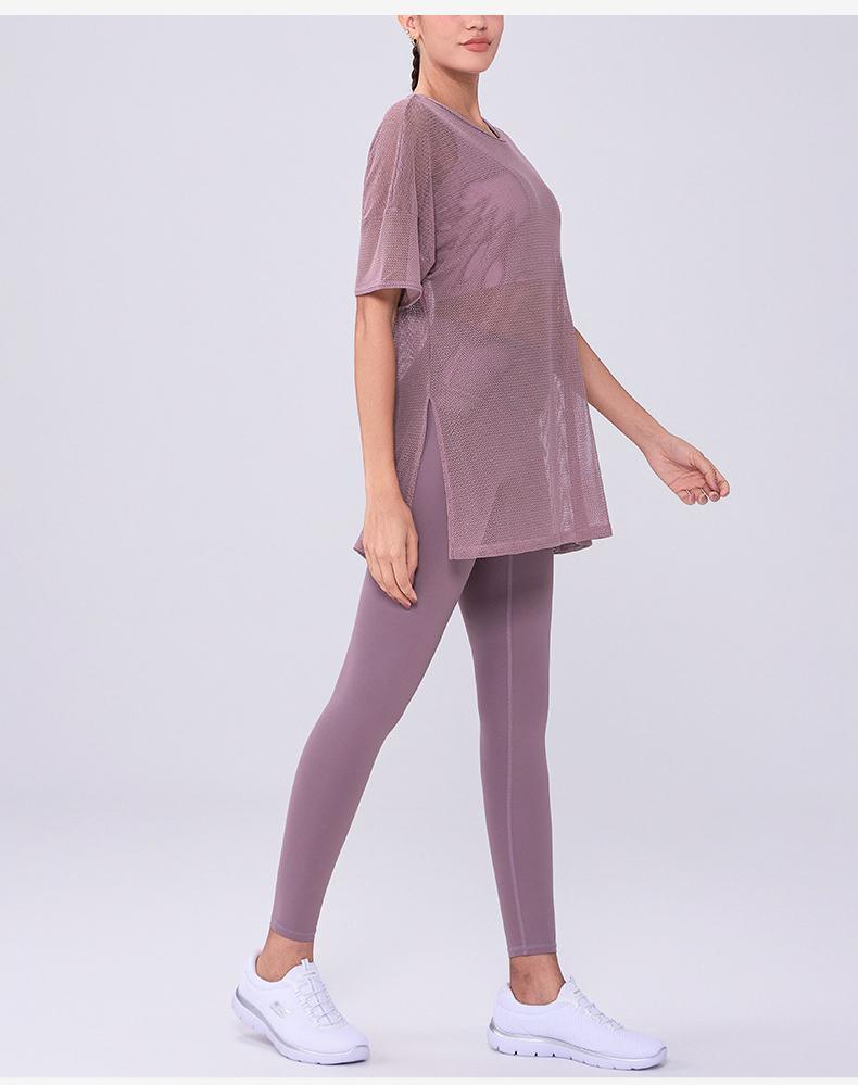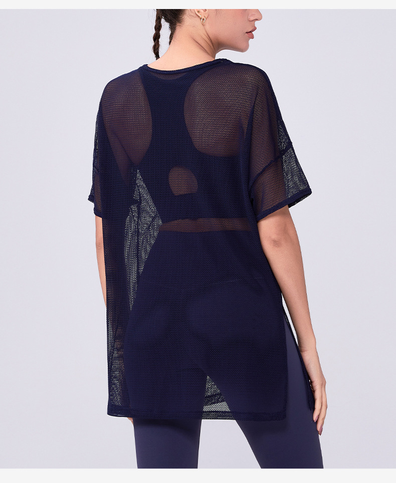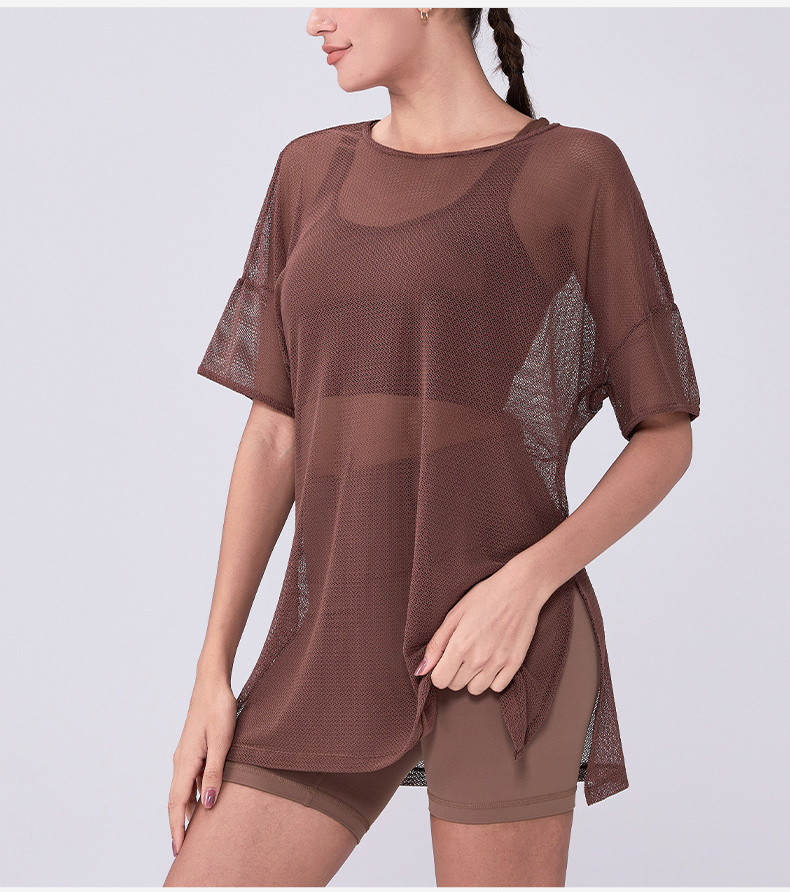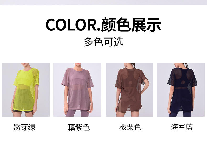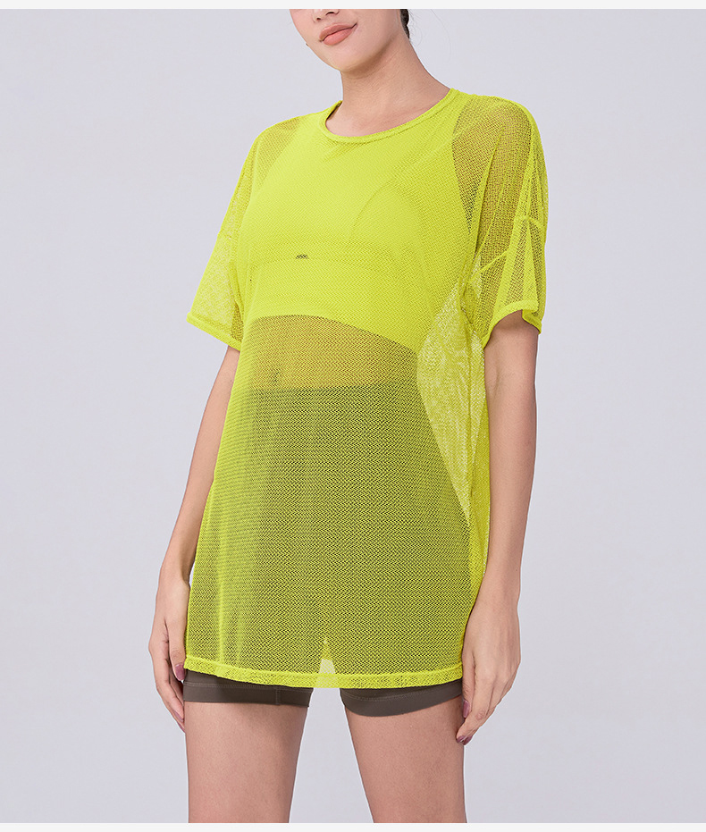 跃牌(呗咪纷纷系列)夏季亲肤运动轻薄宽松户外透气瑜伽休闲遮臀凉感罩衫短袖上衣女DX3307