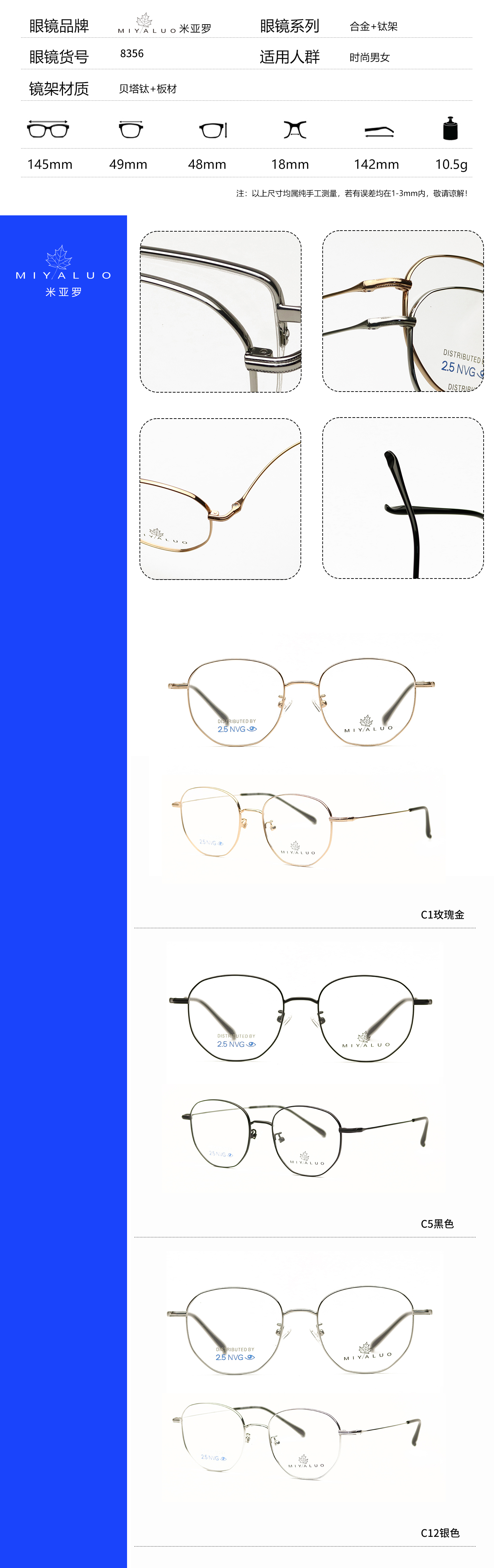 DSG08356 米亚罗MIYALUO 新款光学镜架 全钛合金钛架 DSG08356
