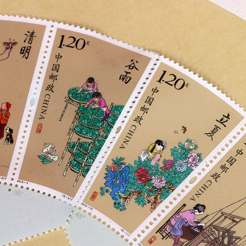 二十四节气系列邮票拟依据四季分四组发行,在发行最后一组时,拟推出小全张1枚,将组成一个圆形,寓意“地球公转、自转”产生节气,并作为新中国成立70周年的特殊品种。
