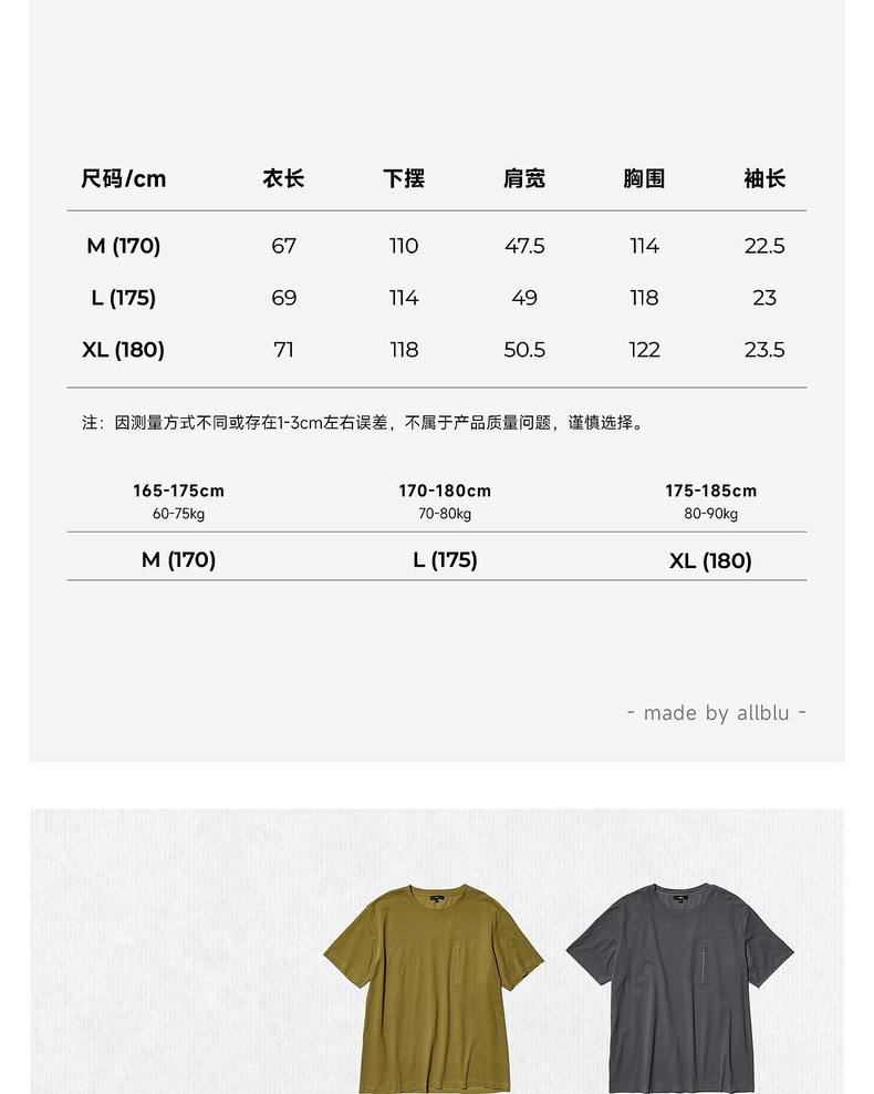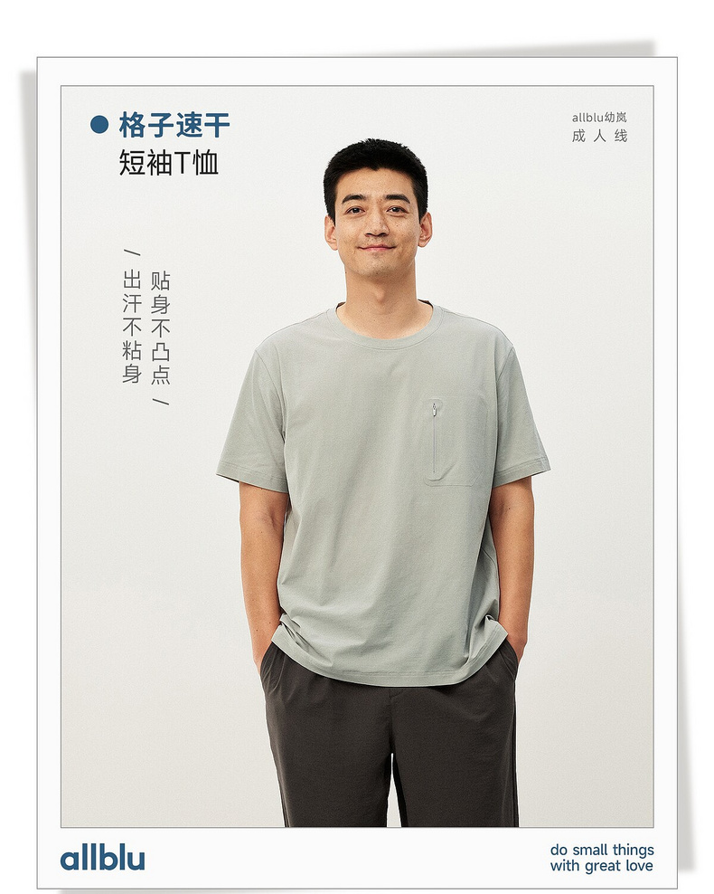 【夏Vol.1】allblu男装“出汗不粘身”26春夏【格子速干】男士短袖T恤带口袋