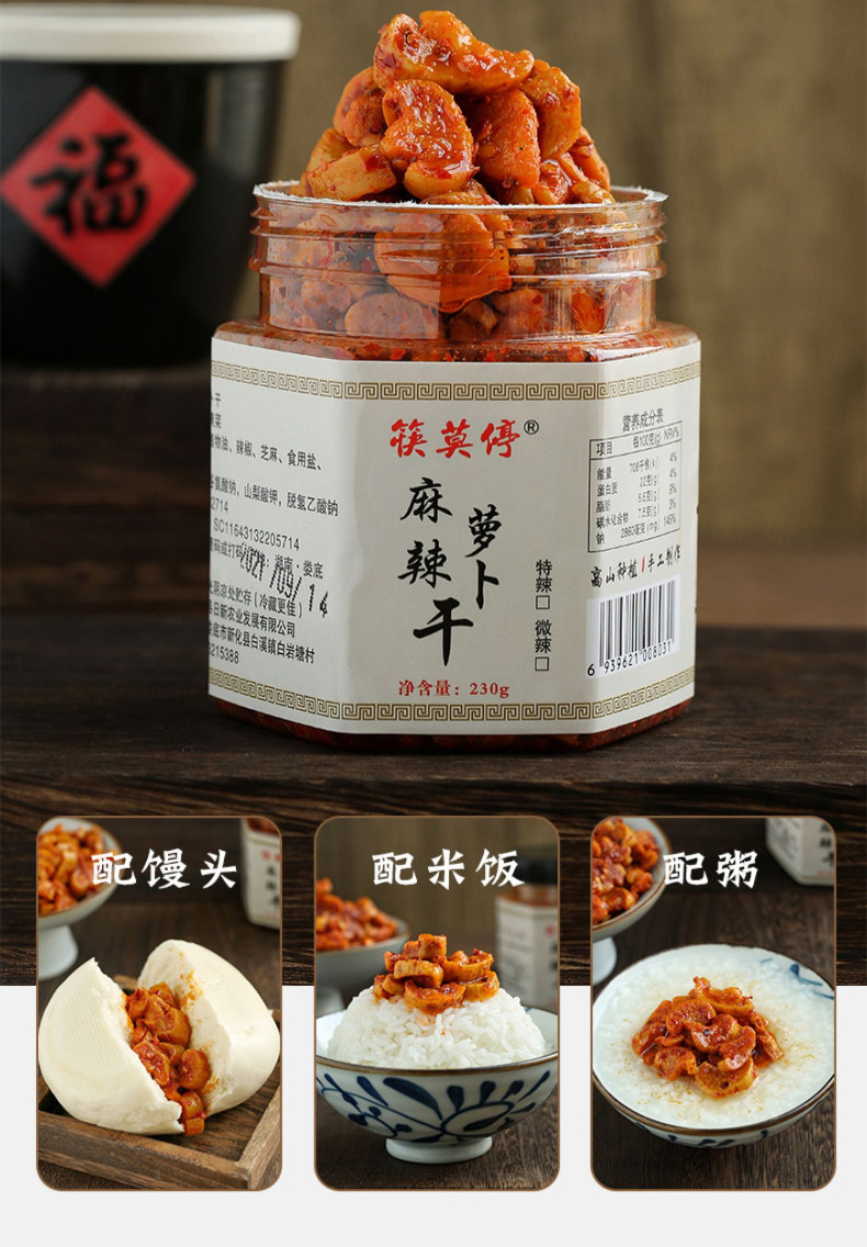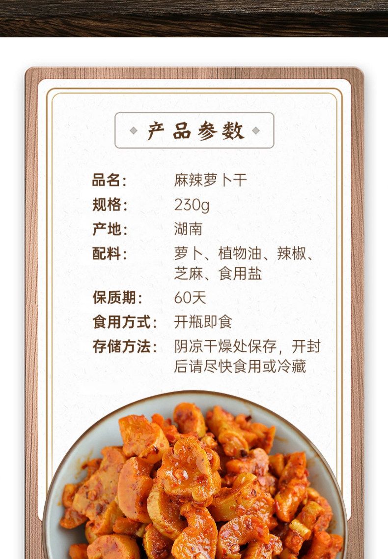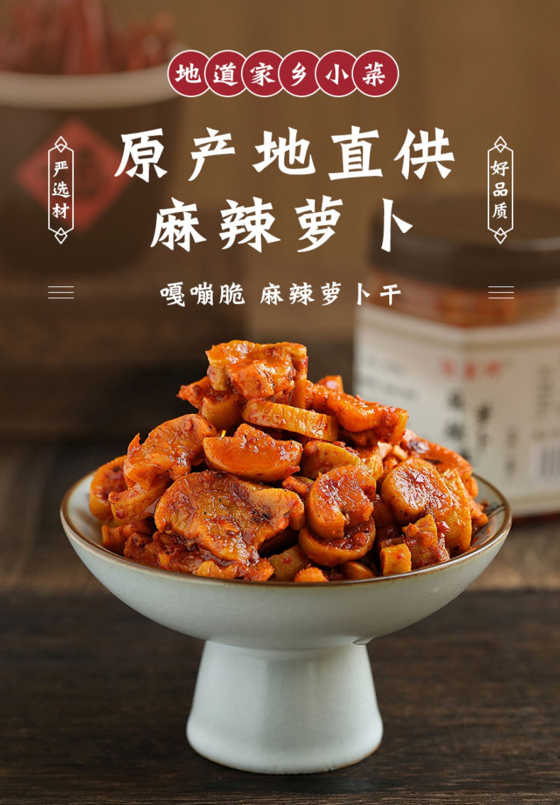 麻辣萝卜干即食下饭菜湖南特产香辣脆萝卜瓶装开味咸菜萝卜丁酱菜