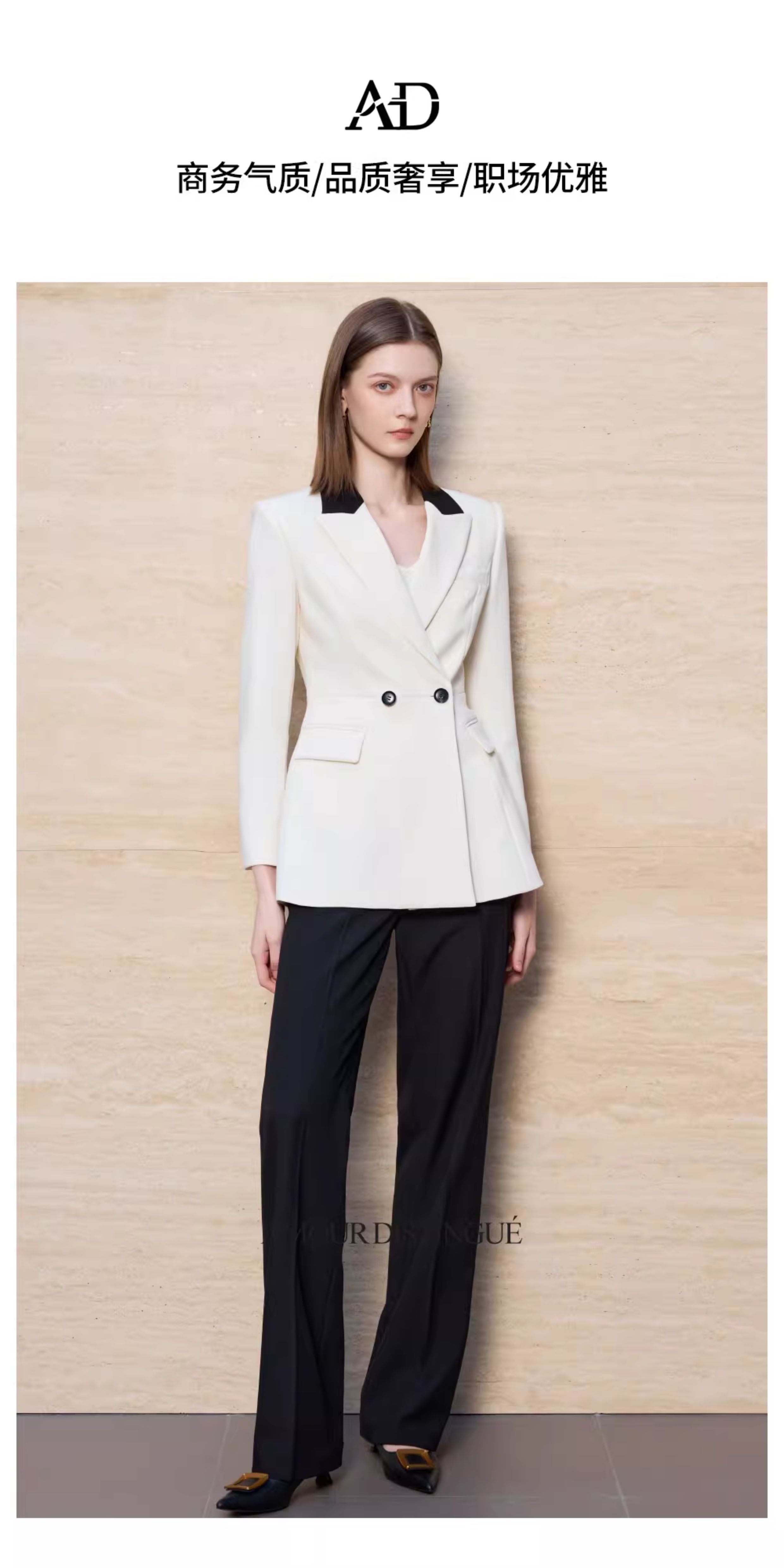 AD高级感白色西装套装女2025新款春秋气质女神范职业装阔腿裤正装