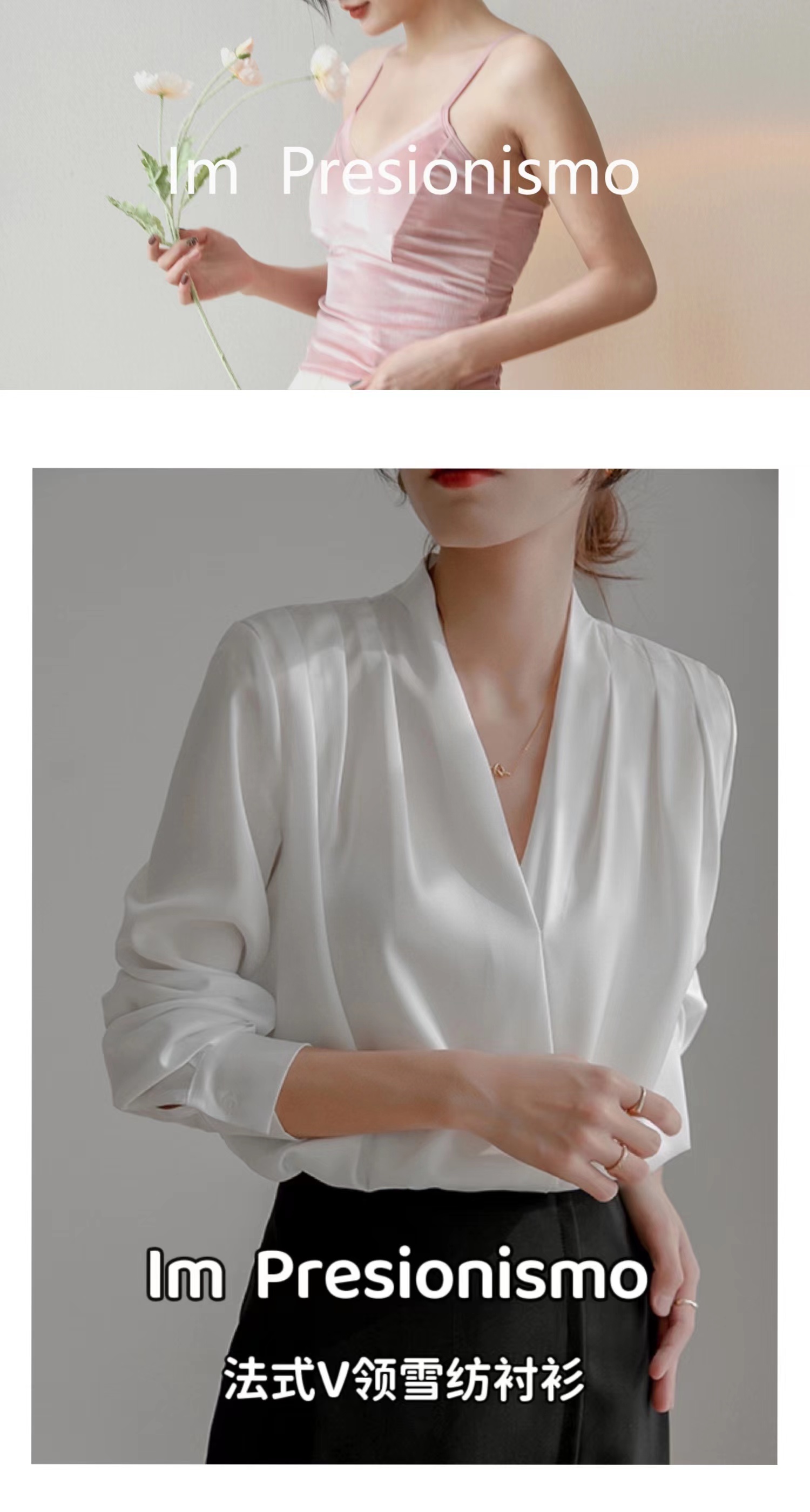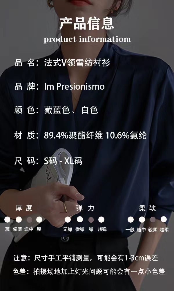 【受疫情影响,时效不保】Im Presionismo 法式V领雪纺衬衫(预售)