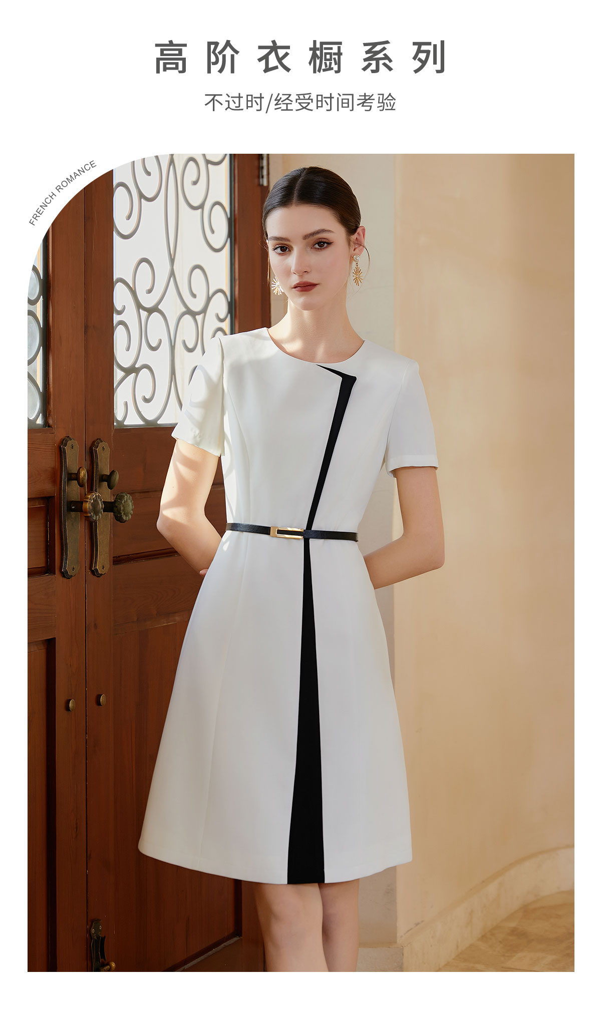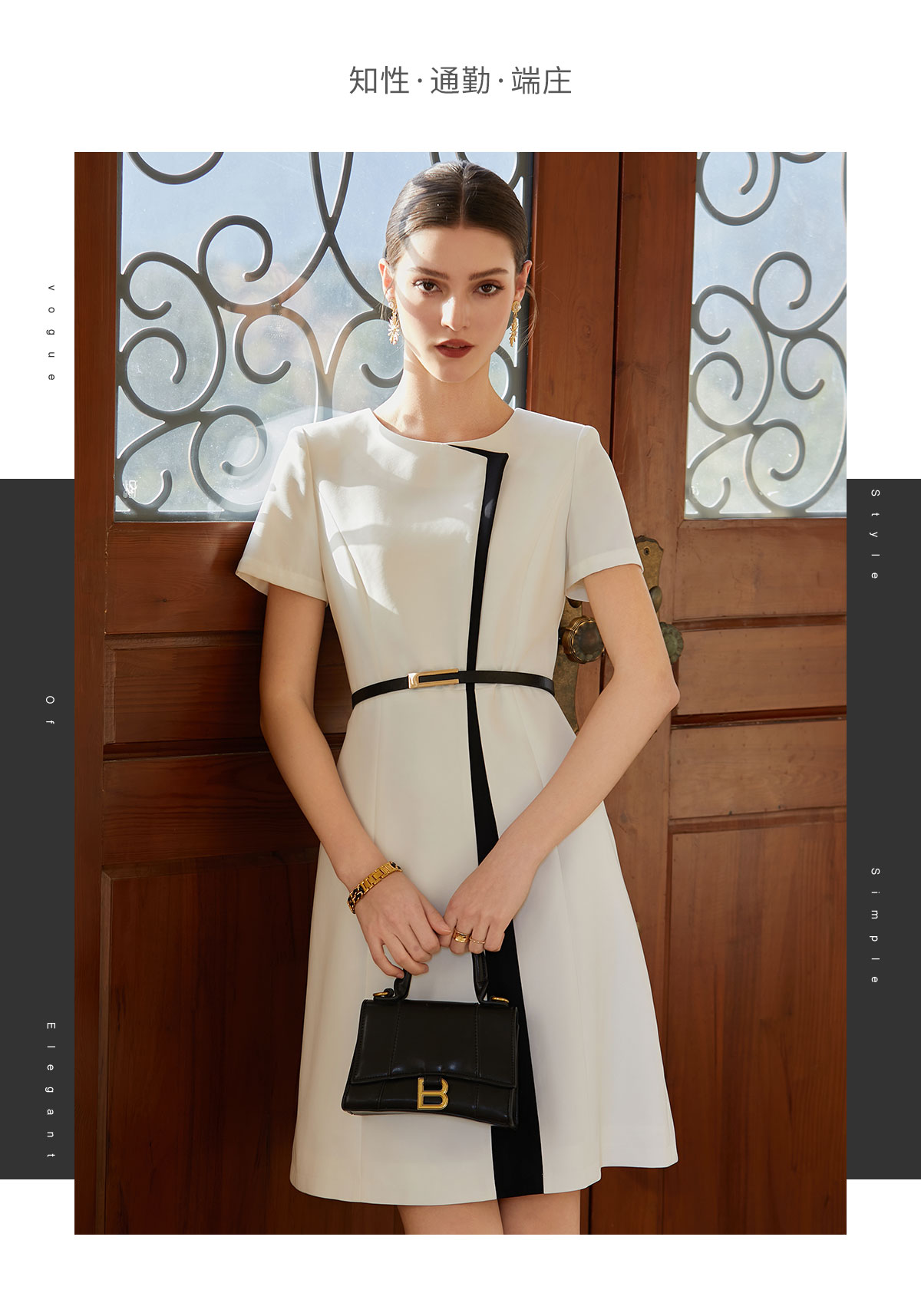 AD高级设计感西装连衣裙女黑白接拼西服裙大学生面试教师工作服