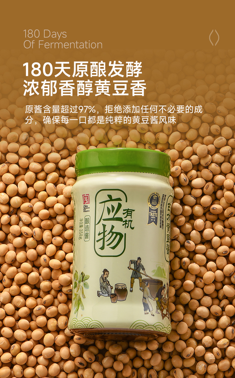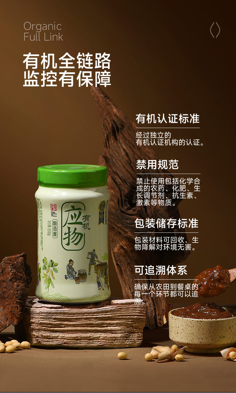 包邮 有机黄豆酱358g*2瓶装 有机调味品调味料古方酿造蘸酱生食