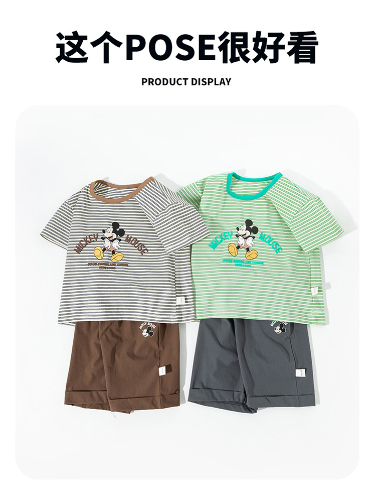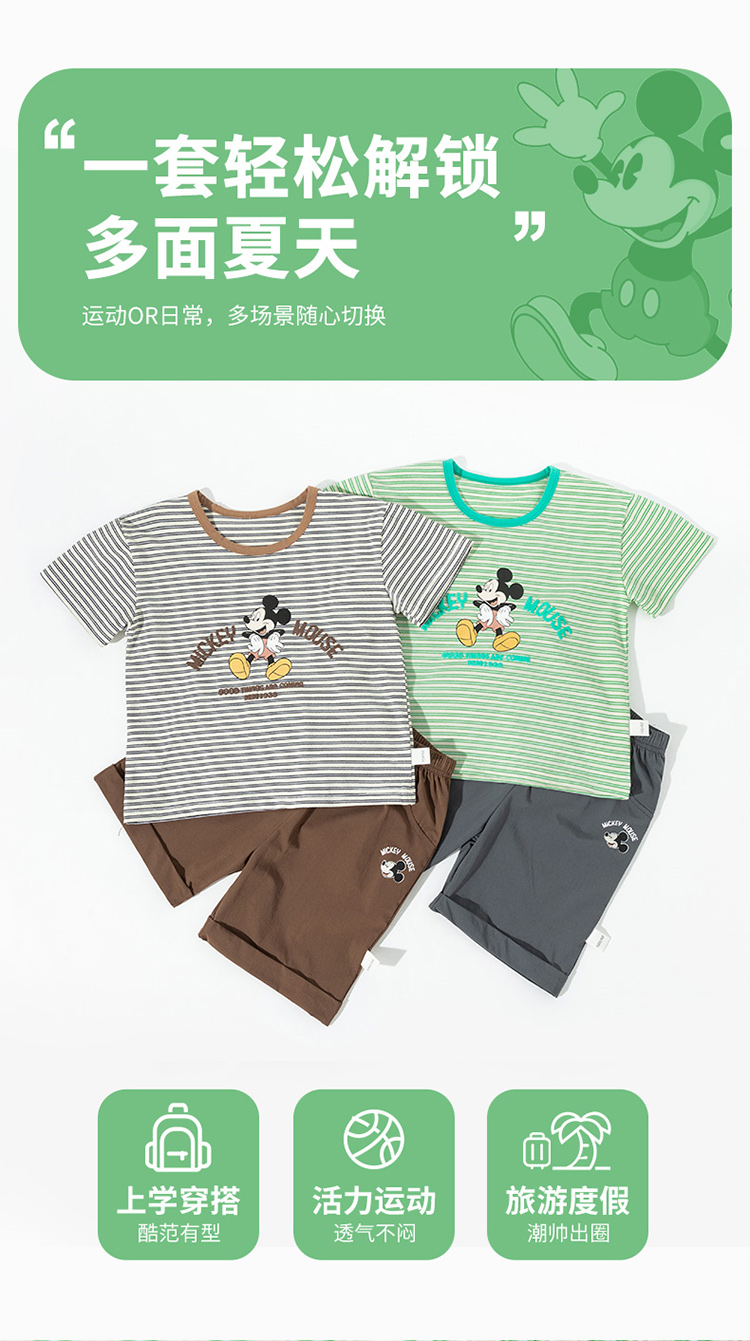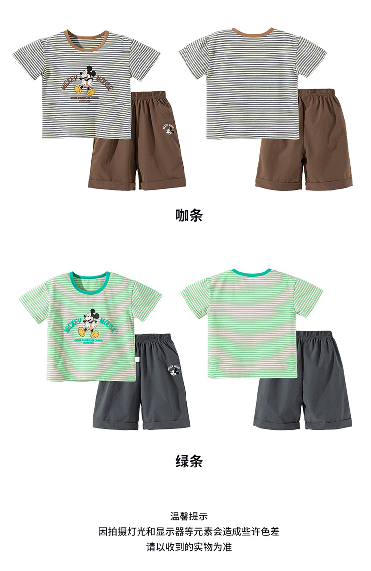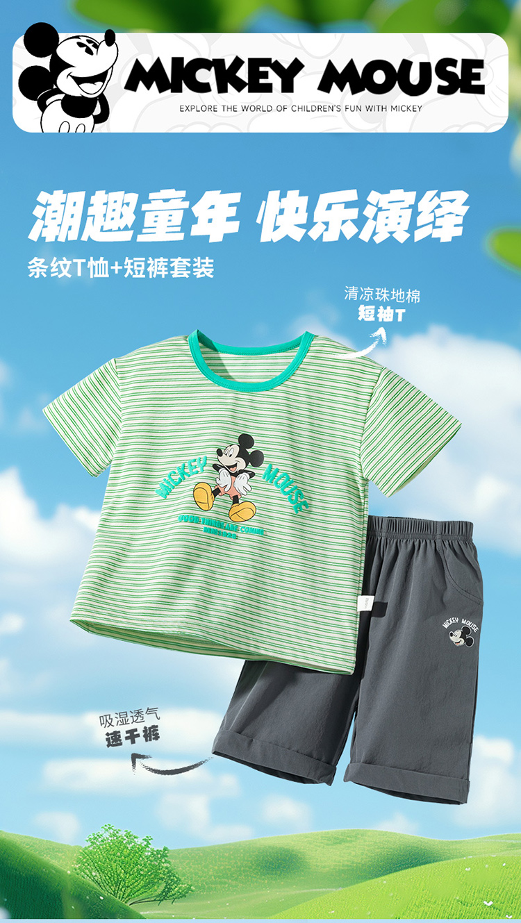 迪士尼【米奇冰感条纹套装】25夏季男童新款凉感T恤短袖透气短裤套装ZD2ET025