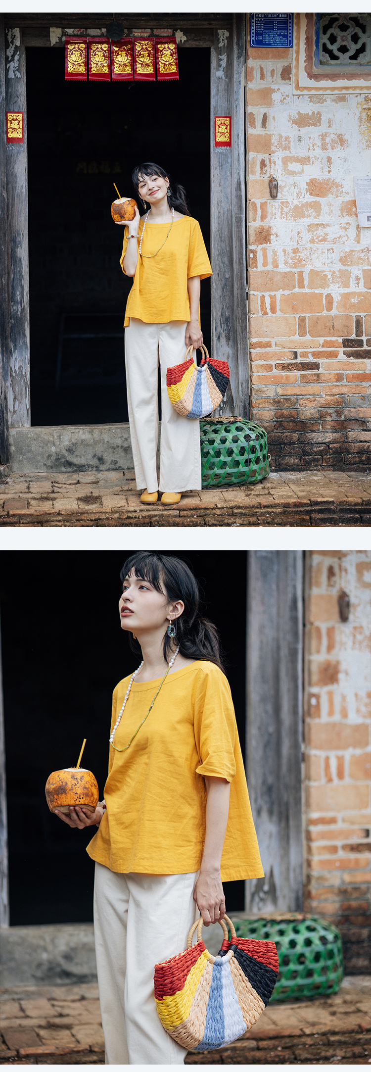 以天然亚麻为载体,融合热烈色彩与自在剪裁为身在城市、心怀远方的女性提供兼具美学与舒适的旅行着装