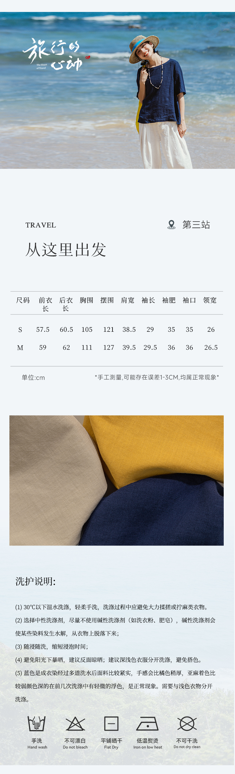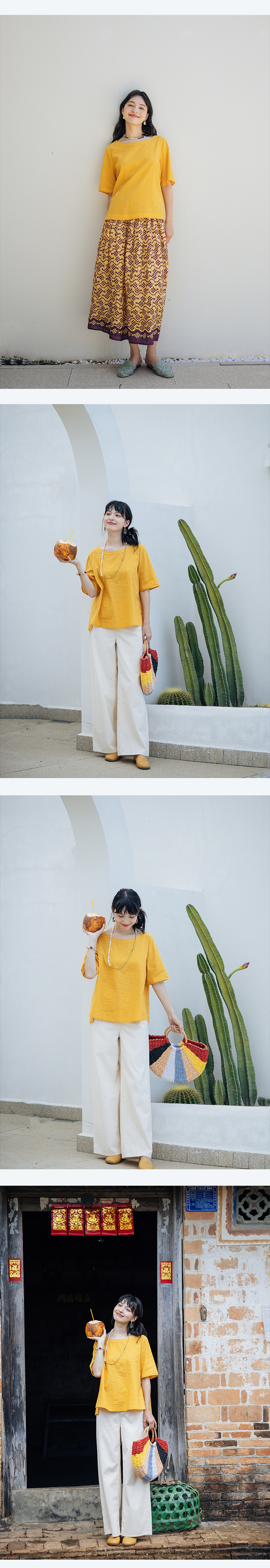绽放旅行女装341朵/苎麻天丝圆领宽松文艺棉麻T恤上衣