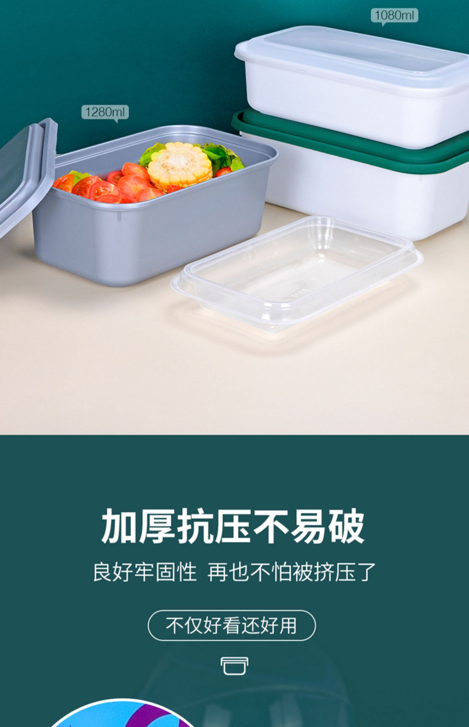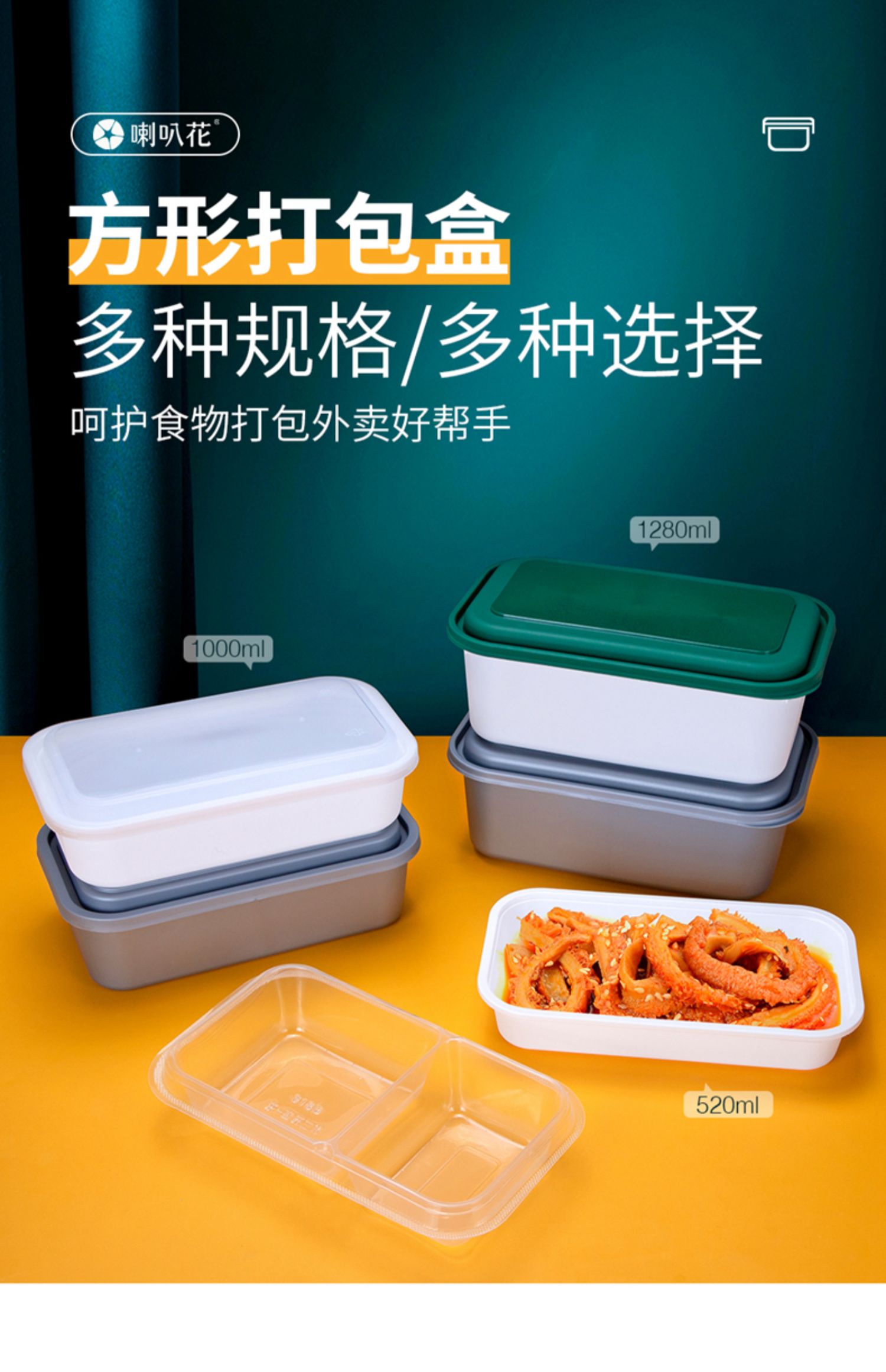 喇叭花一次性餐盒饭盒打包盒塑料长方形带盖便当盒双层美式150套