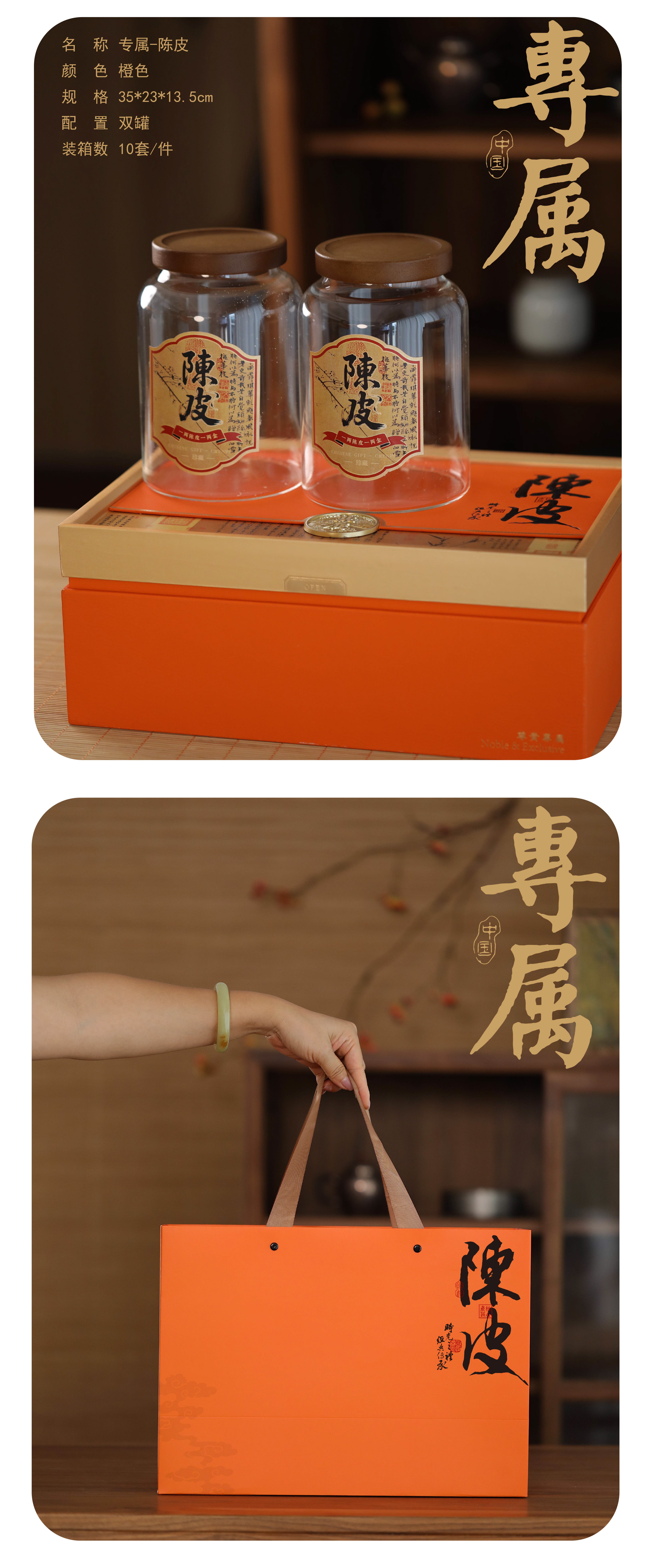 专属【陈皮 双玻璃罐 红色】58元一套/一件10套