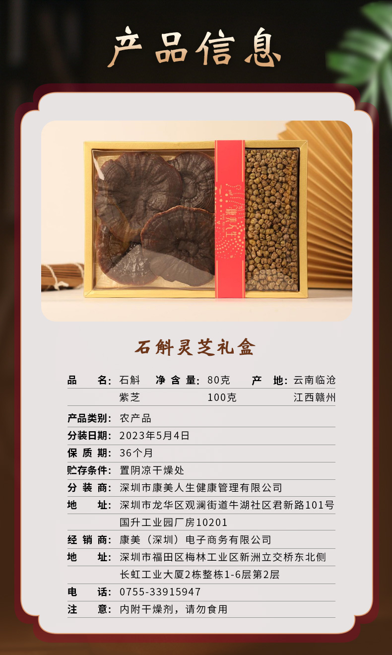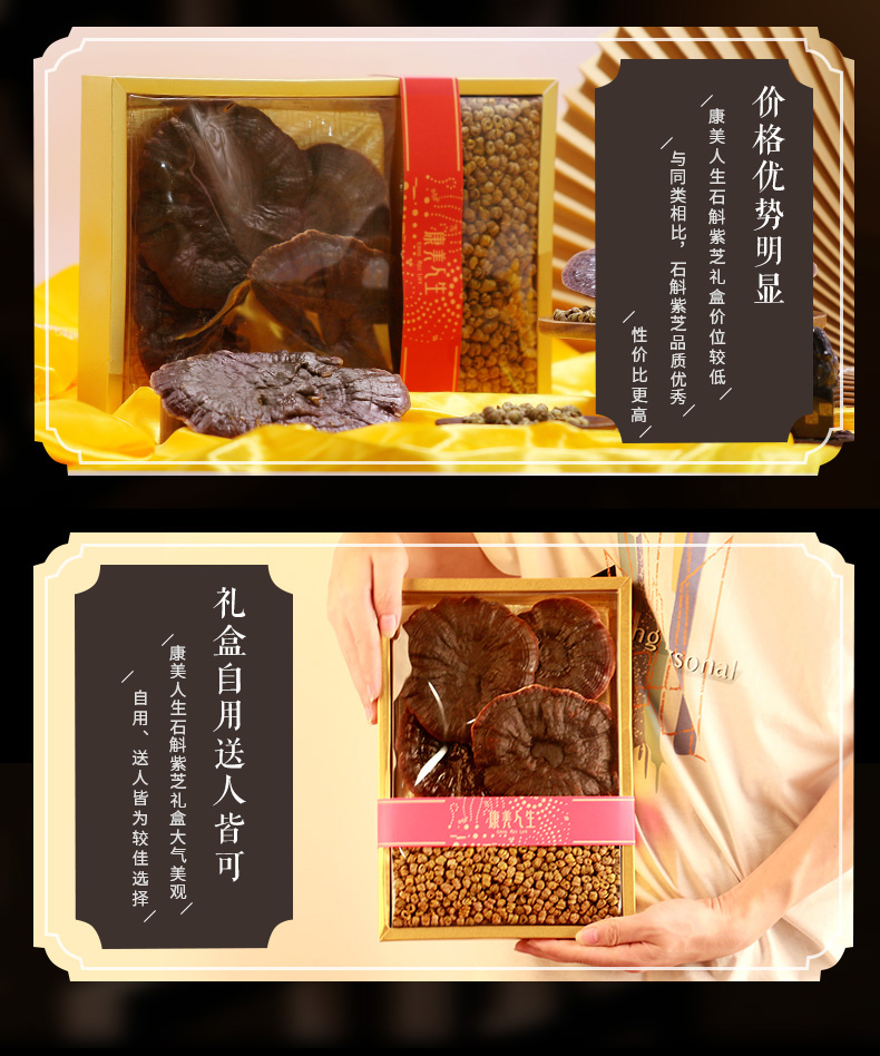 康美人生石斛紫芝礼盒180g/盒 云南临沧石斛3号80g江西赣州紫芝100g泡水养生滋补煲汤送礼